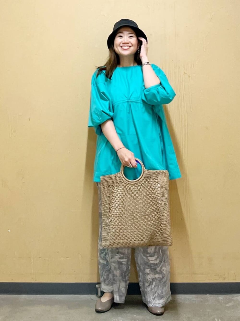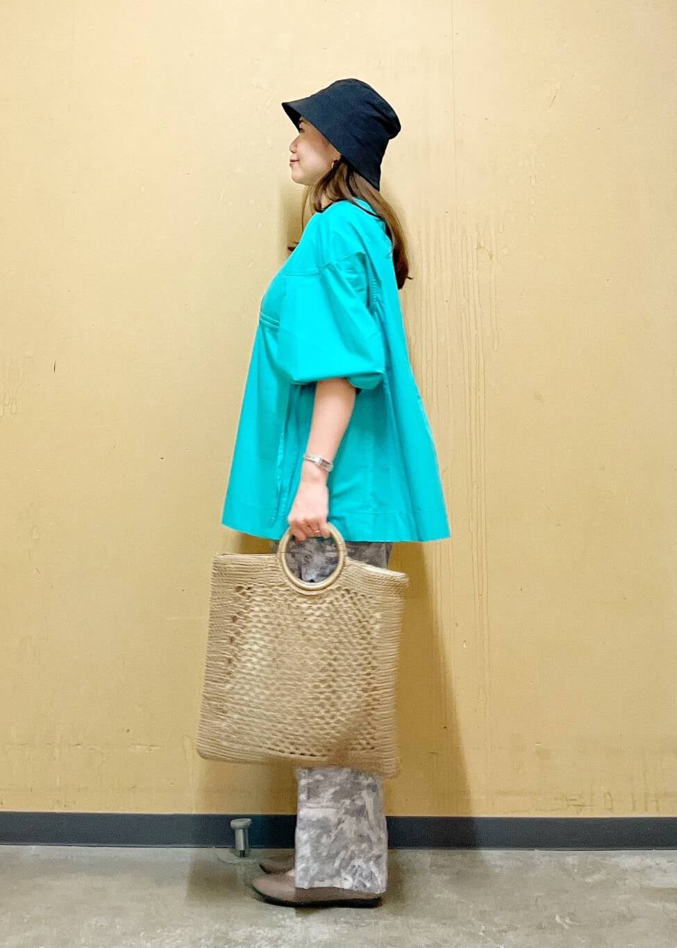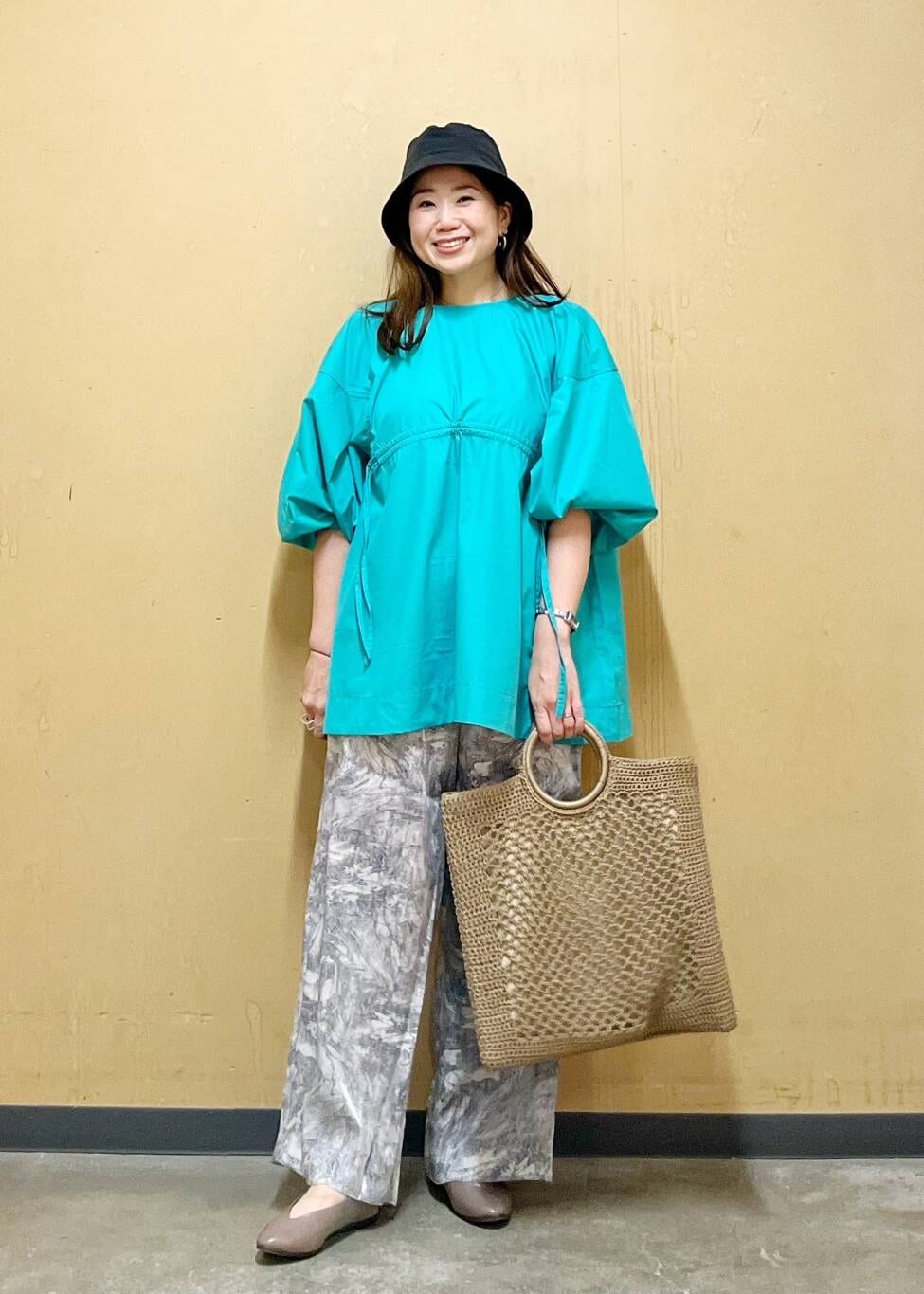エメラルドのカラーがとてと目を惹くブラウスを主役にしました☆