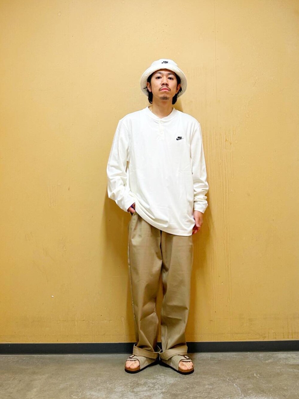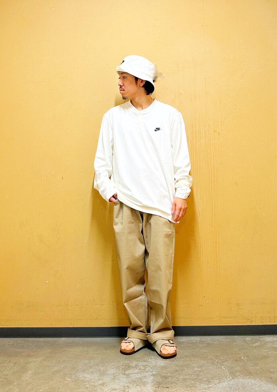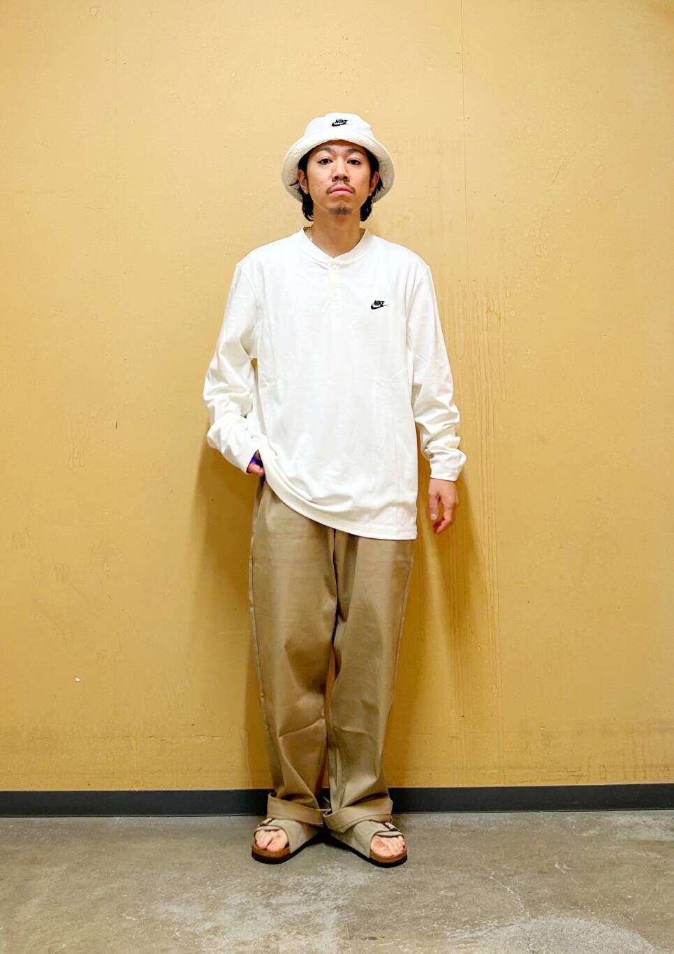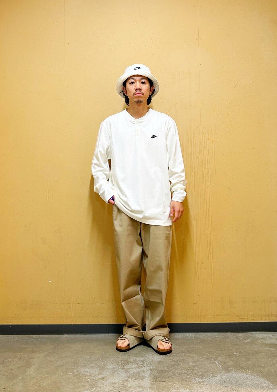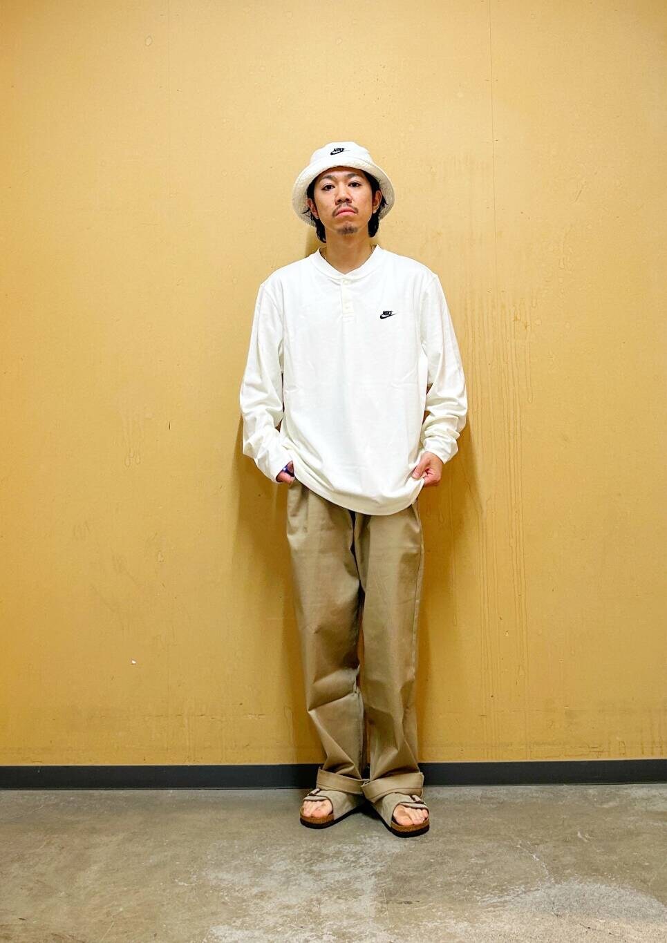 今回はNIKE HENLEY ロングスリーブ トップとイージートラウザーを使用したコーディネート。