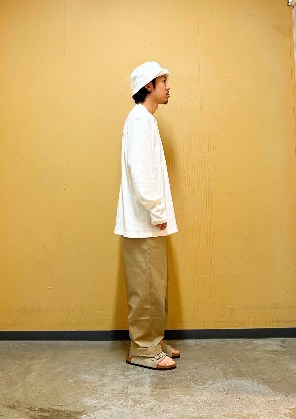 ヘンリーネックロンTにチノパン合わせのストリートライクスタイル!