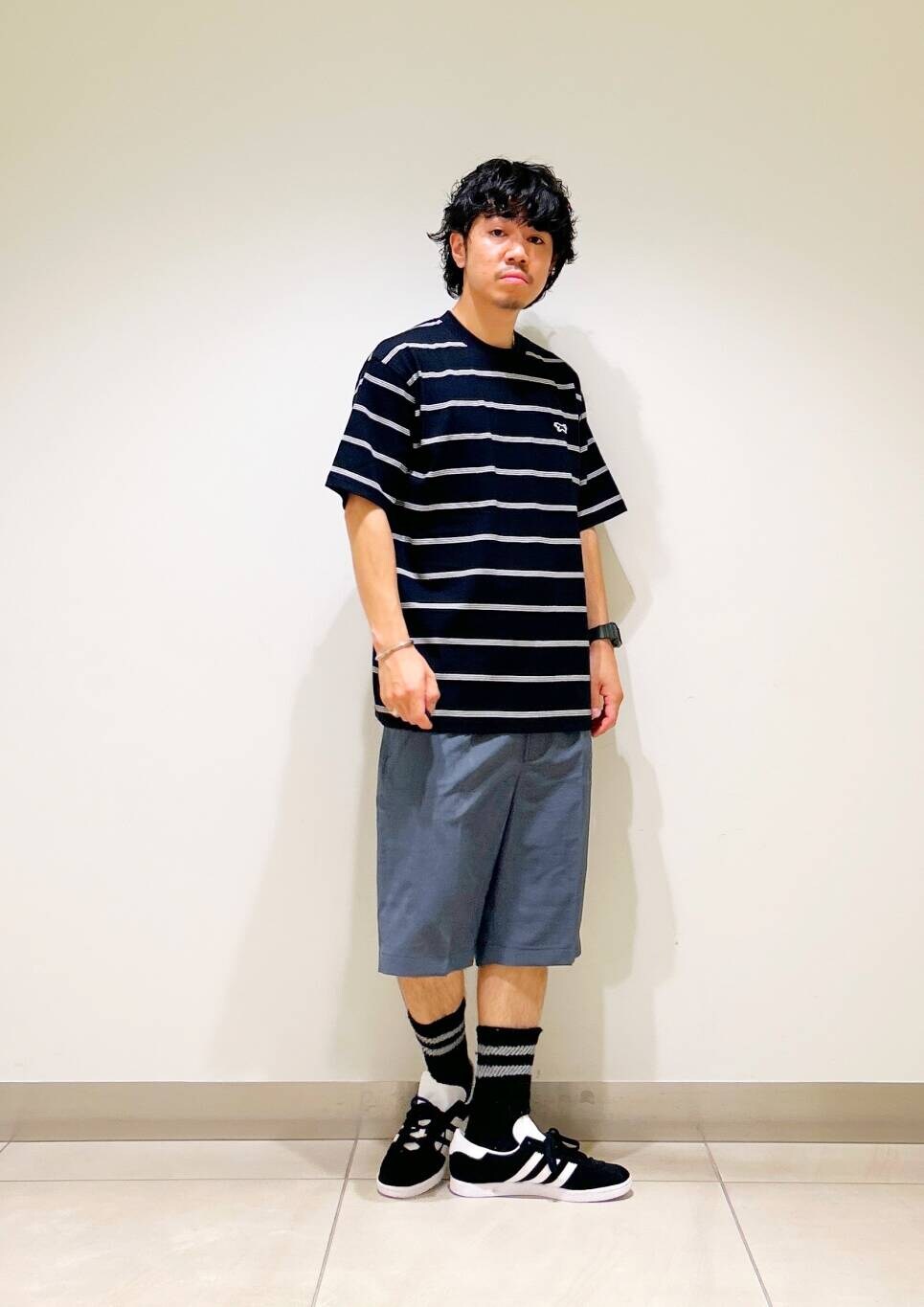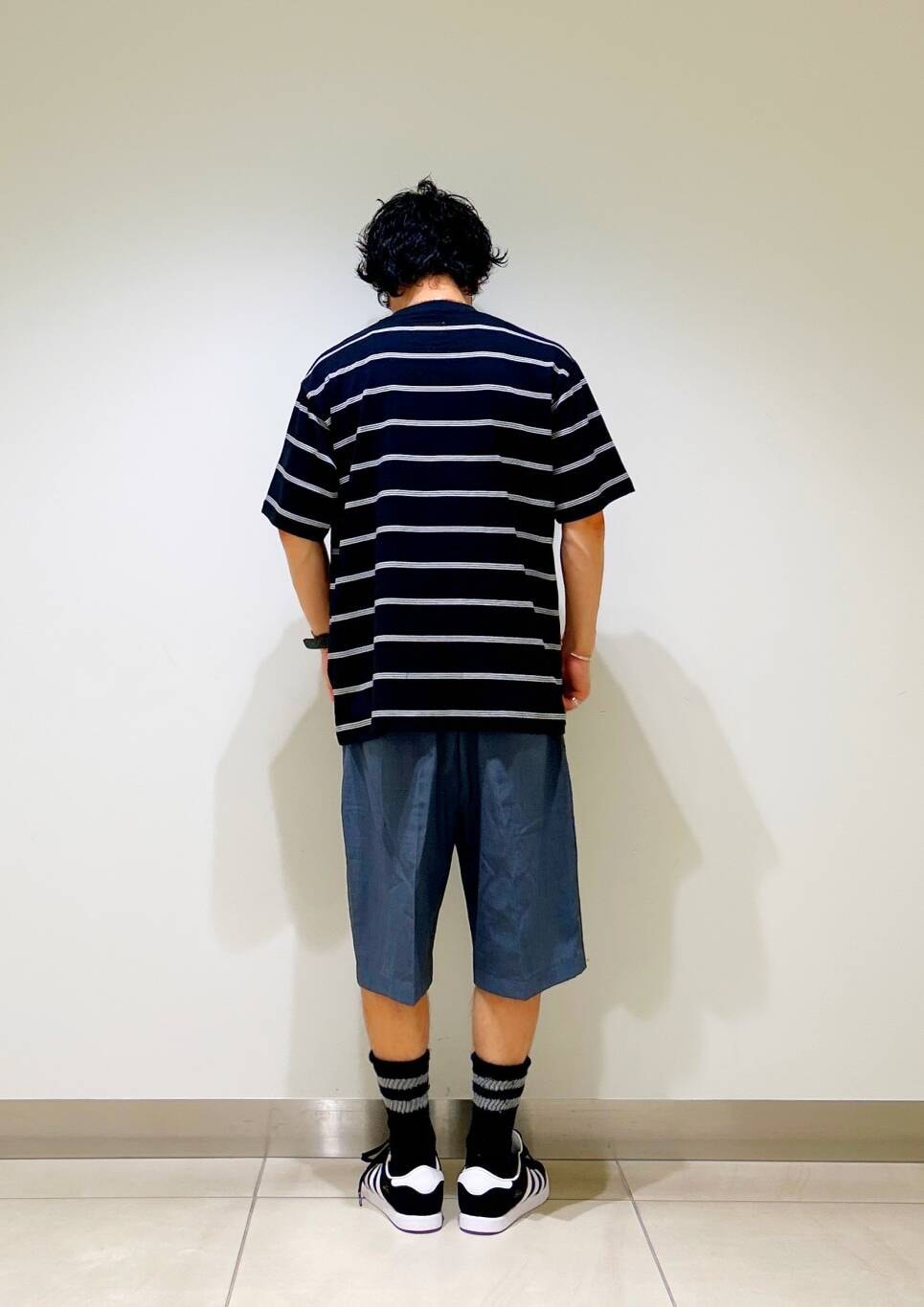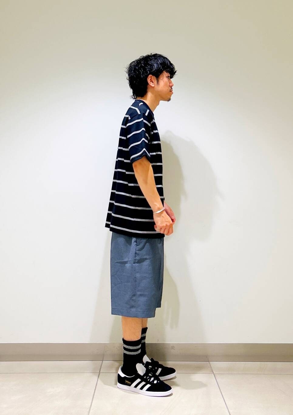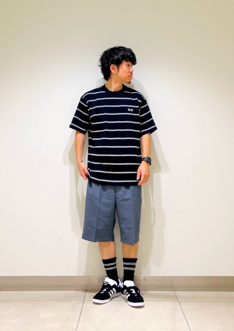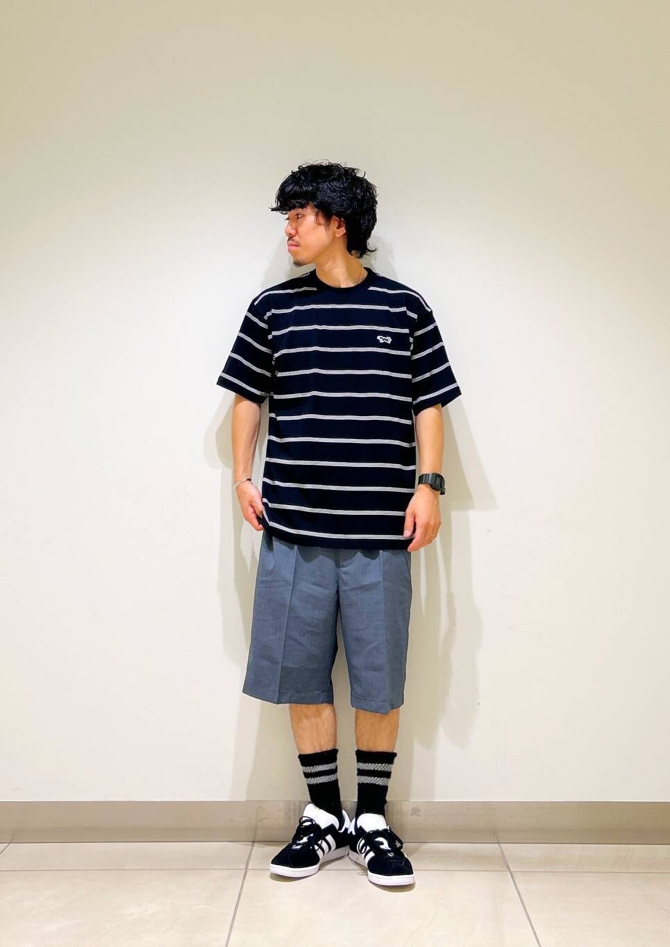 今回はfoxボーダーTシャツとイージーショーツを使用したコーディネート。