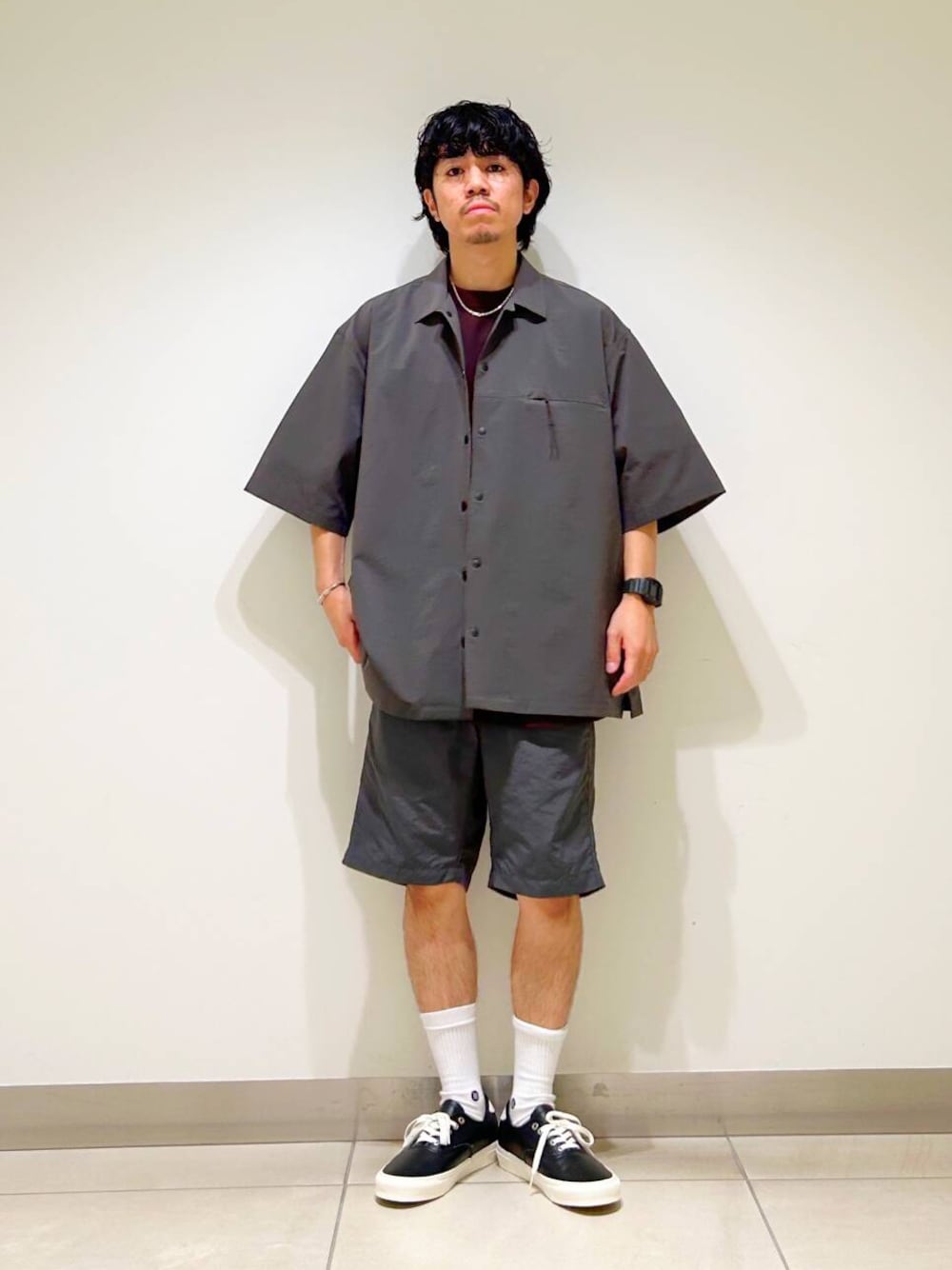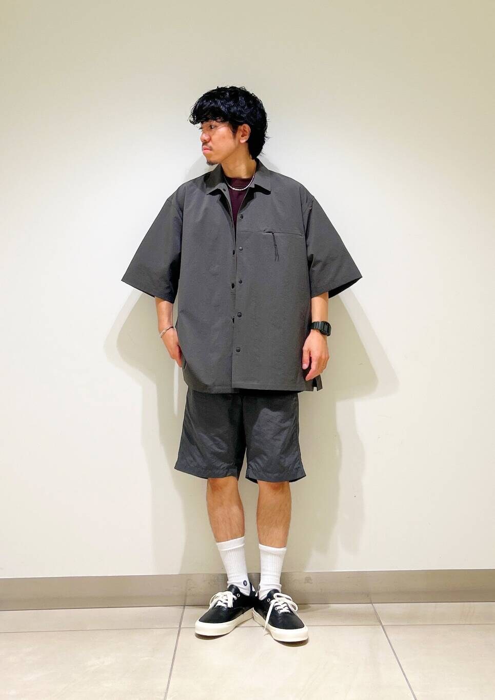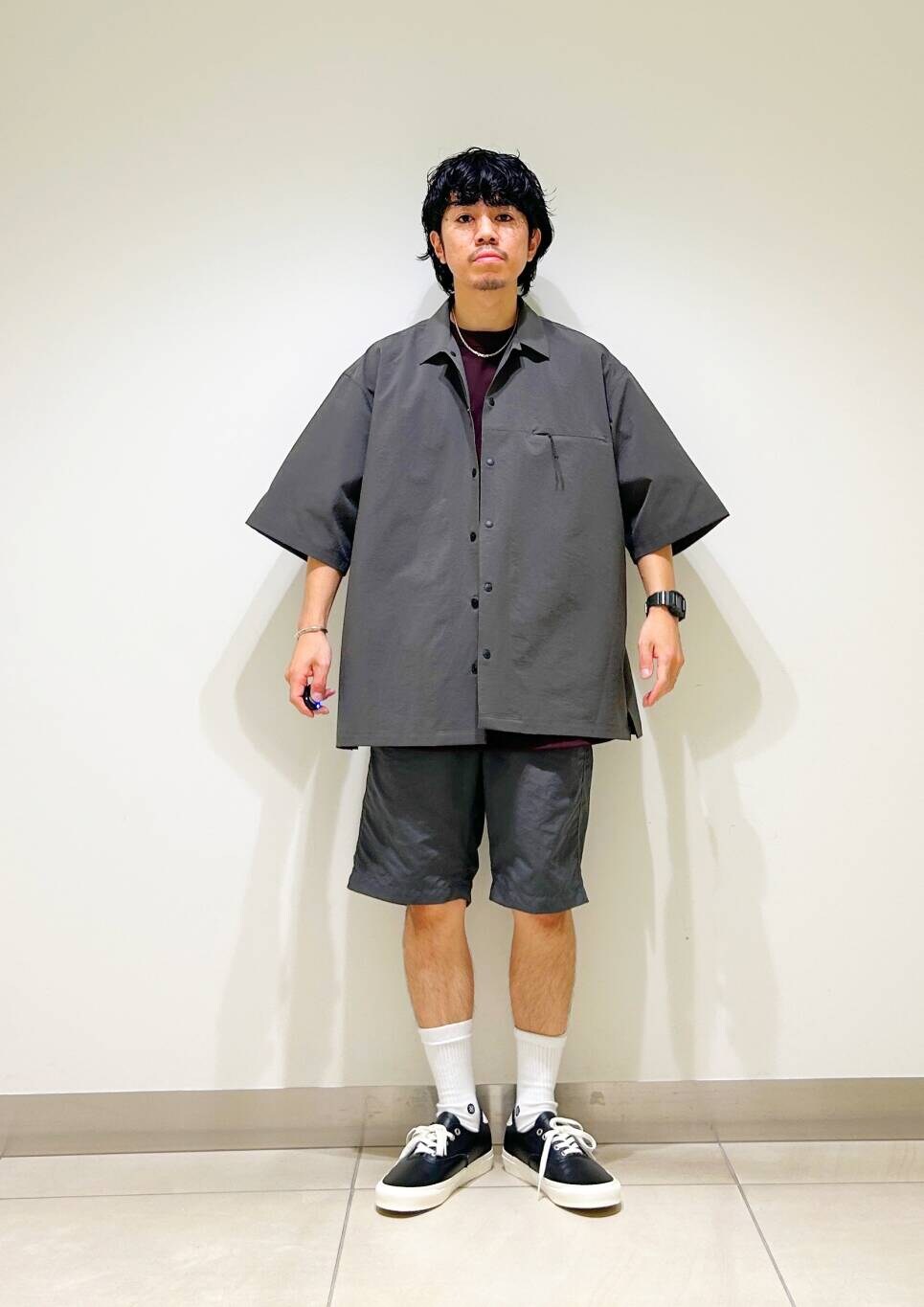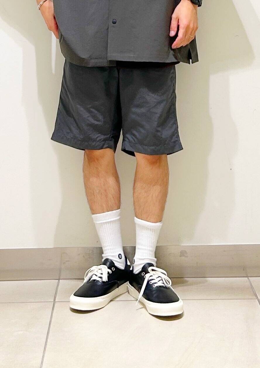 今回はナイロンタッサーシャツとショーツを使用したコーディネート。