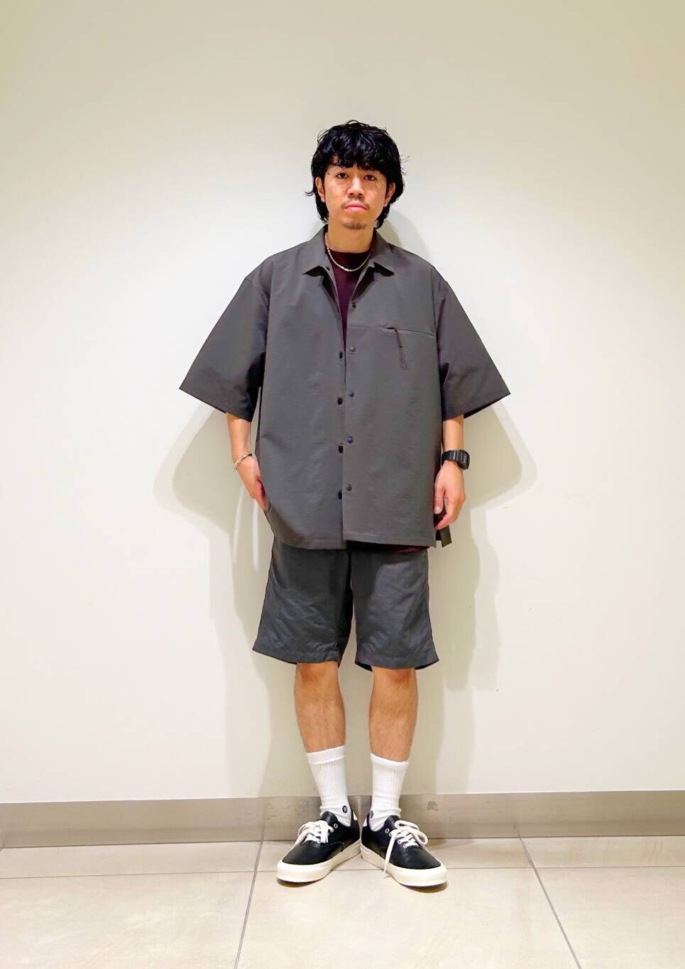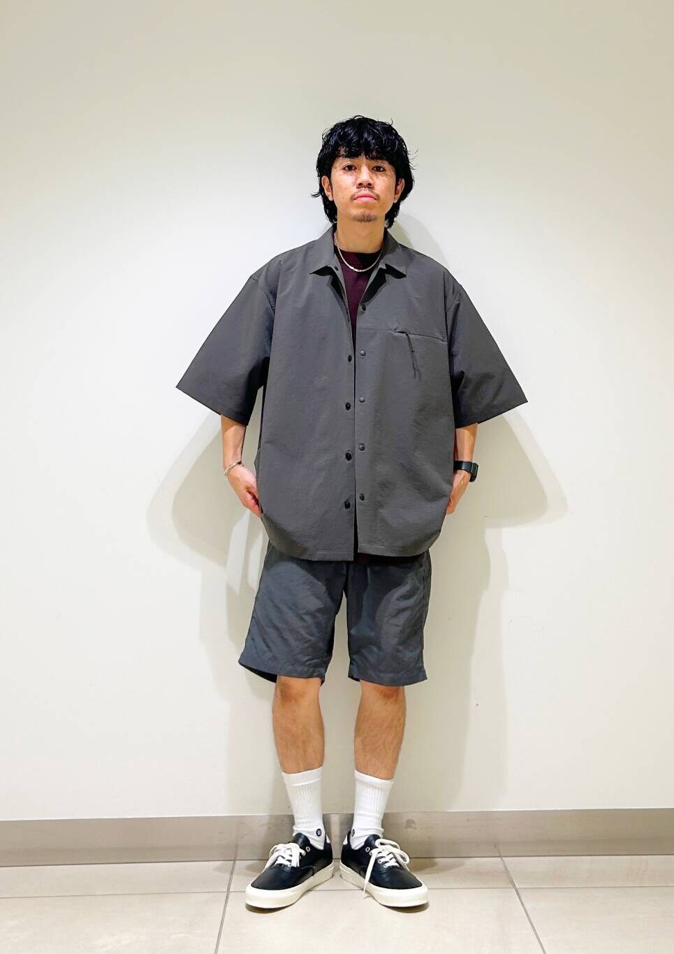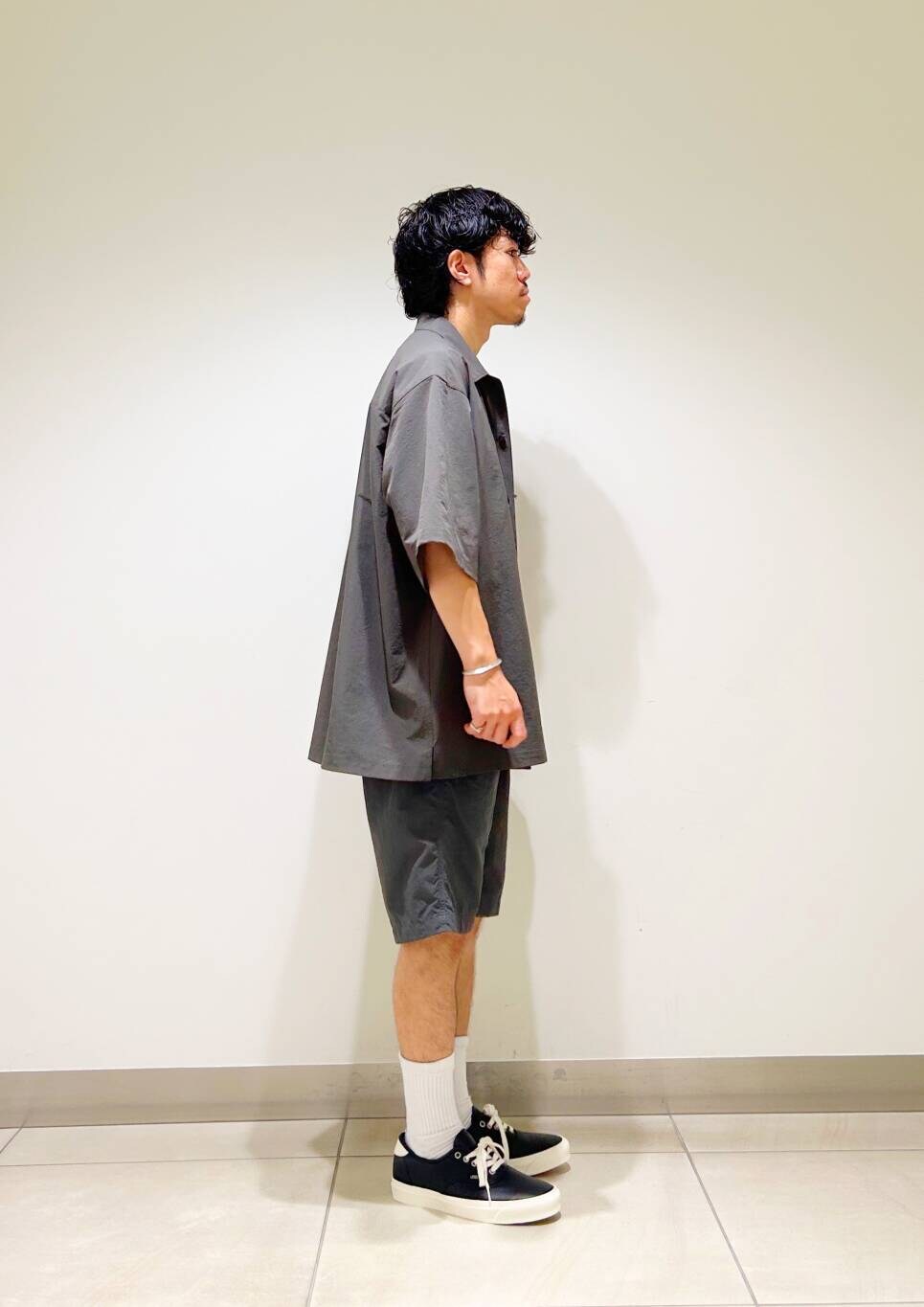 今回はナイロンタッサーシャツとショーツを使用したコーディネート。