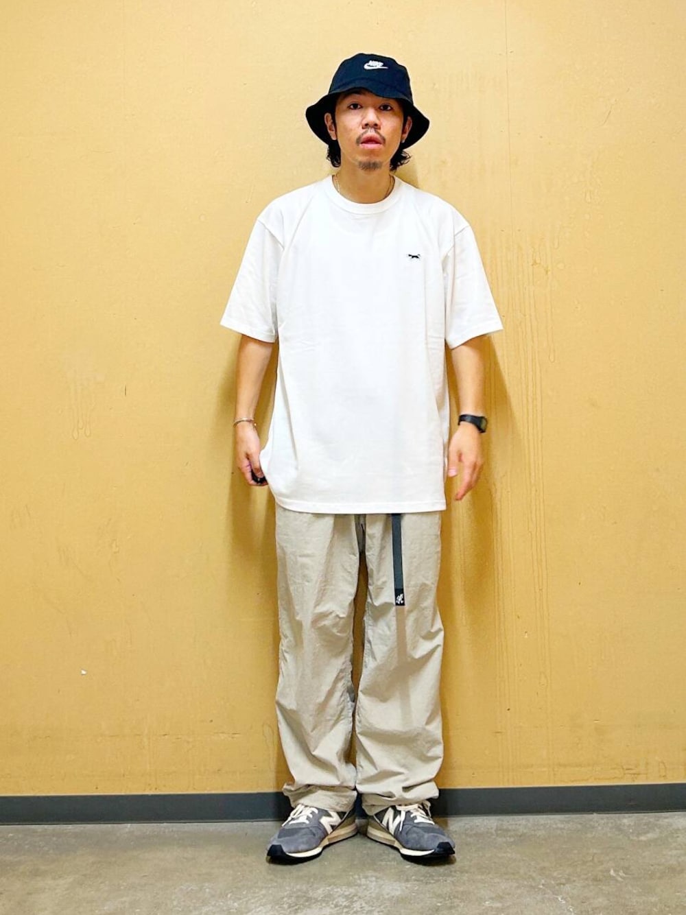 今回はfoxカノコTシャツとグラミチ別注トラックパンツを使用したコーディネート。