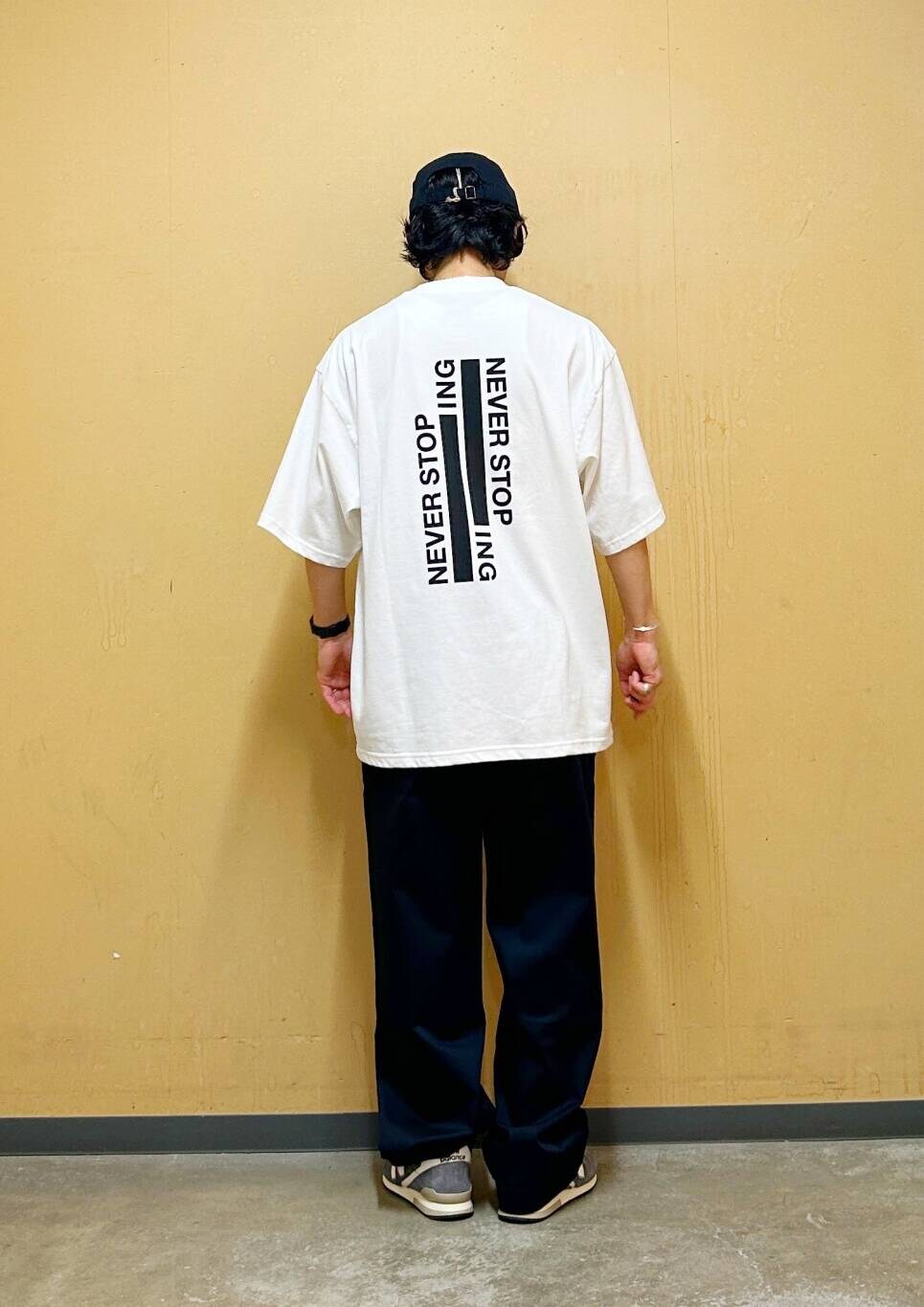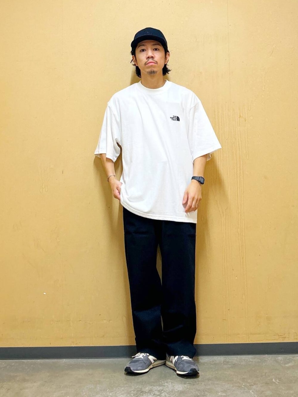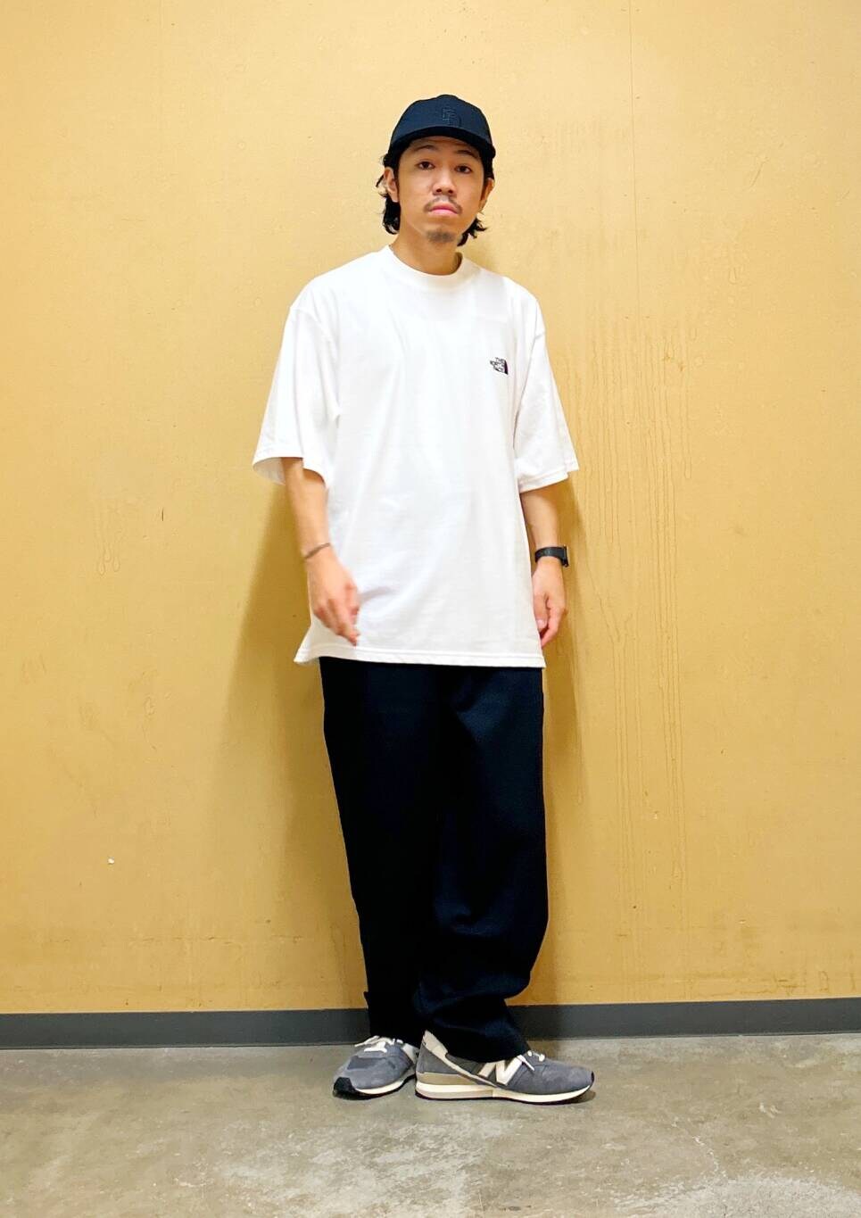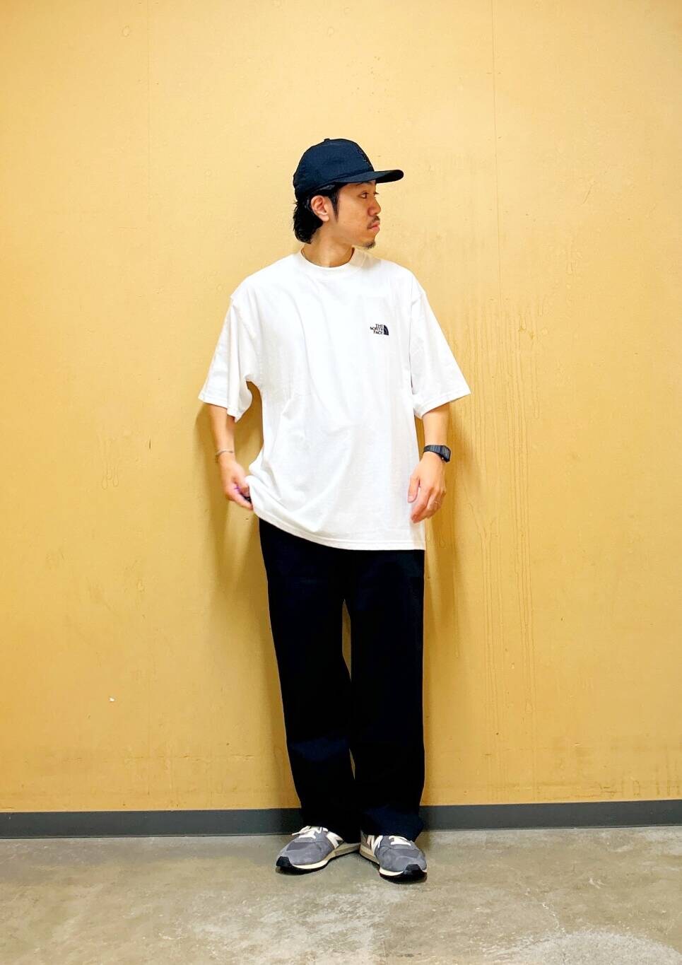 今回はTHE NORTH FACE SHORT-SLEEVE NEVER STOP ING TeeとNIKEイージーパンツを使用したコーディネート。