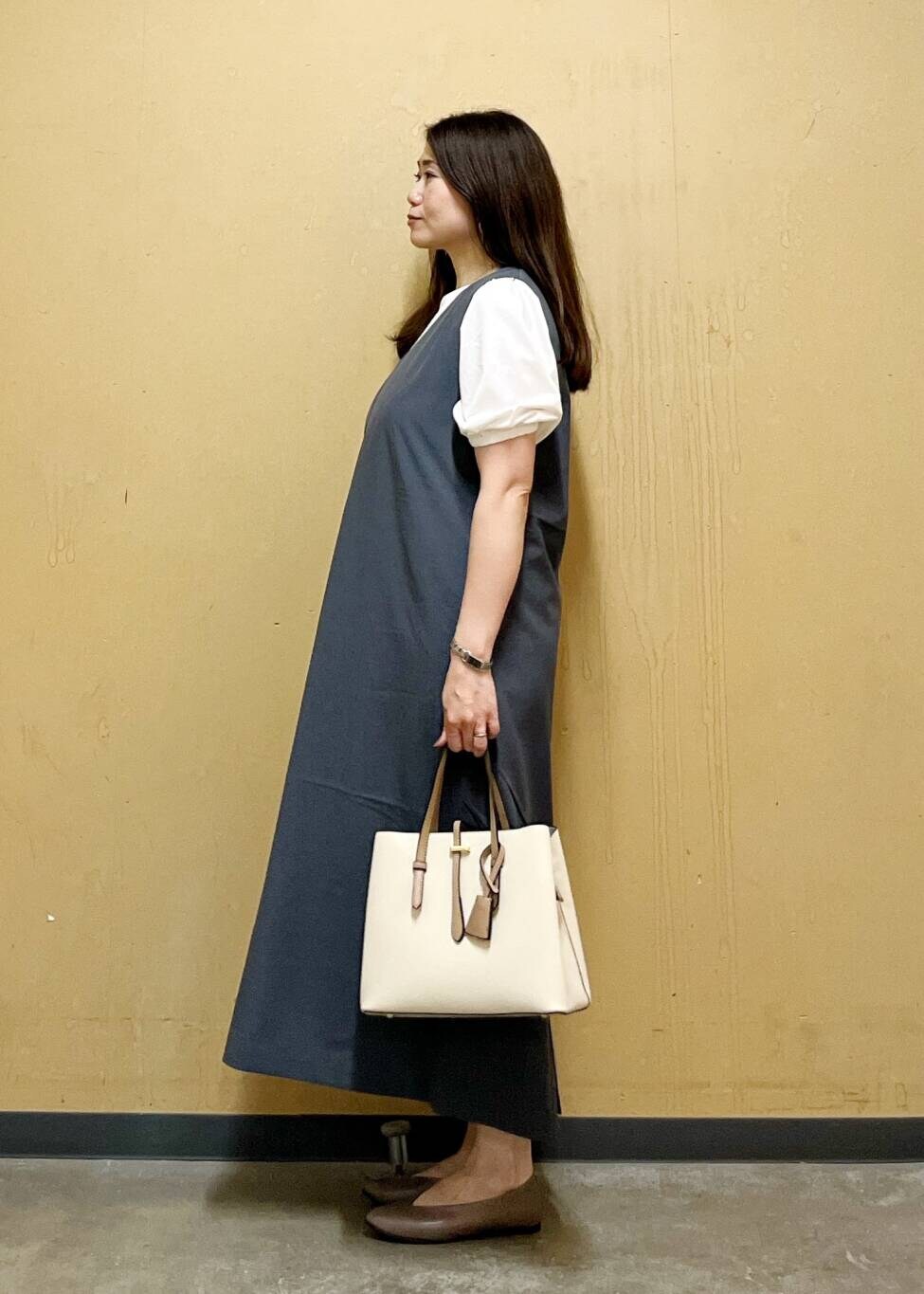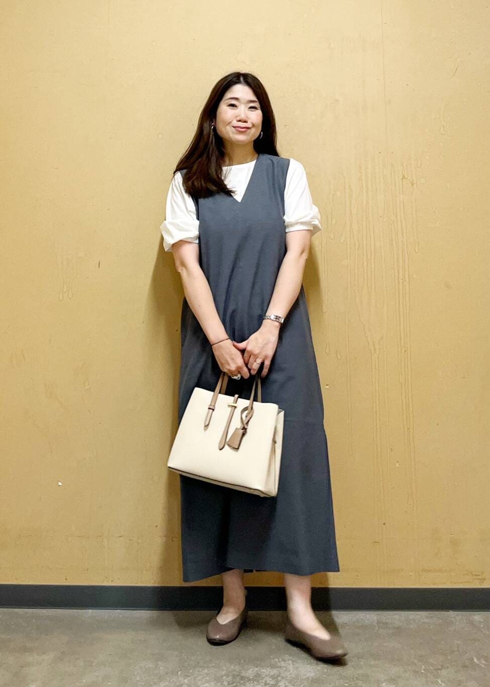 こちらのジャンパーワンピースは中に合わせるアイテムで色々な雰囲気を楽しめる一枚です☆