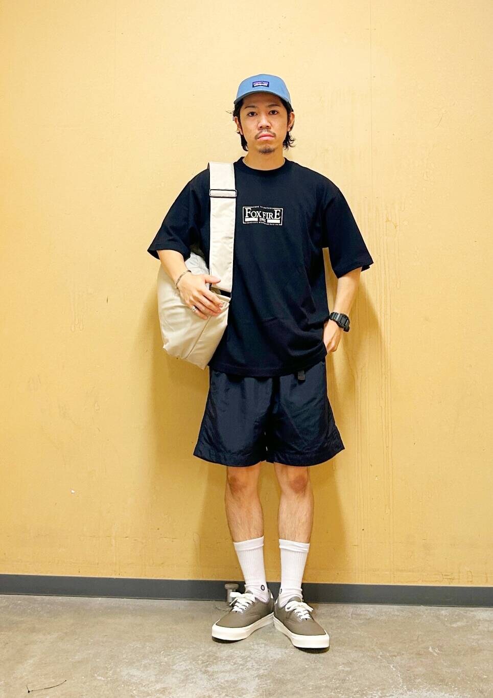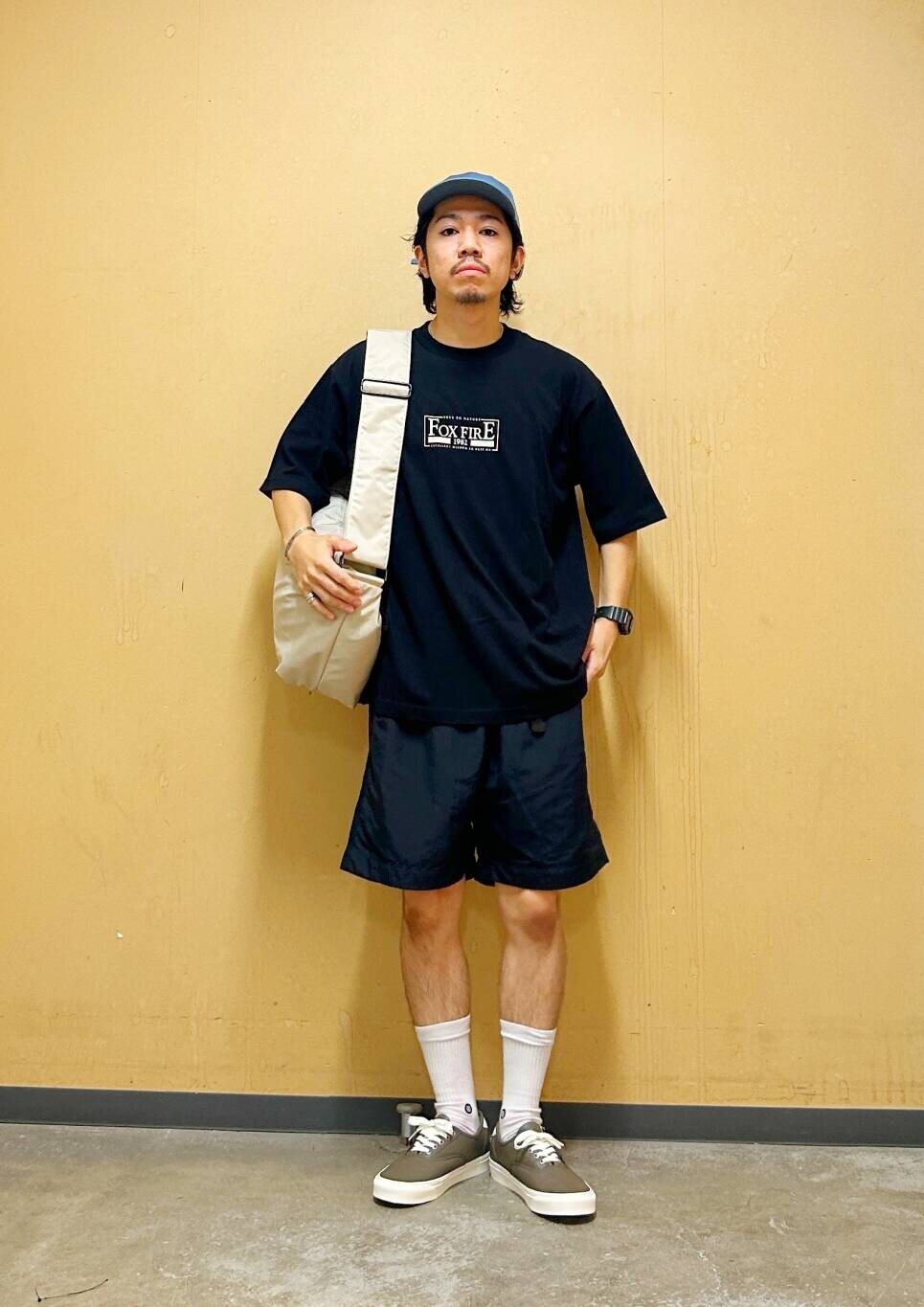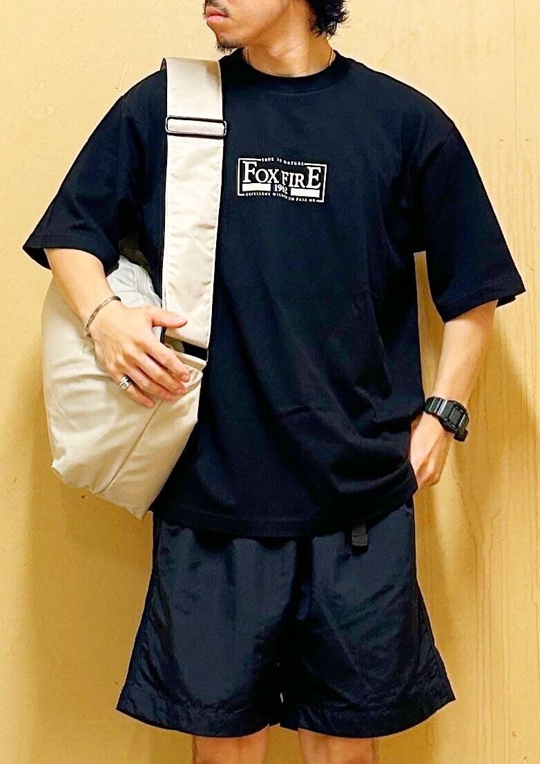 今回はFoxfire×DOORS 胸ロゴプリントTシャツとイージーショーツを使用したコーディネート。