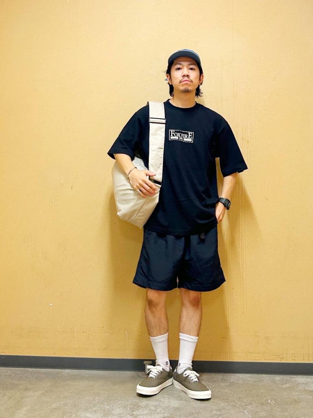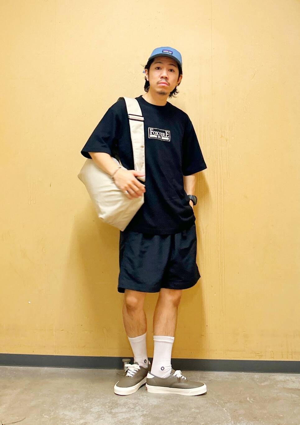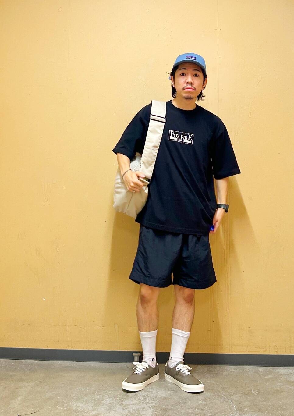 今回はFoxfire×DOORS 胸ロゴプリントTシャツとイージーショーツを使用したコーディネート。