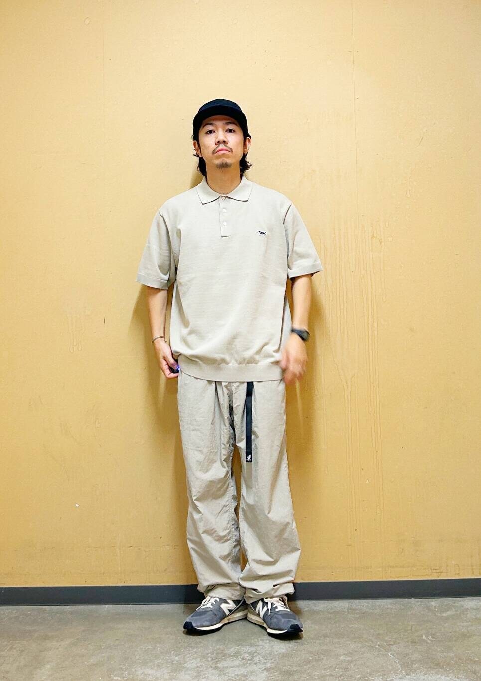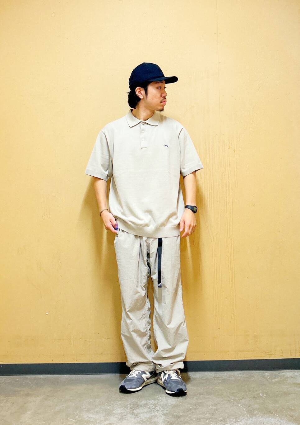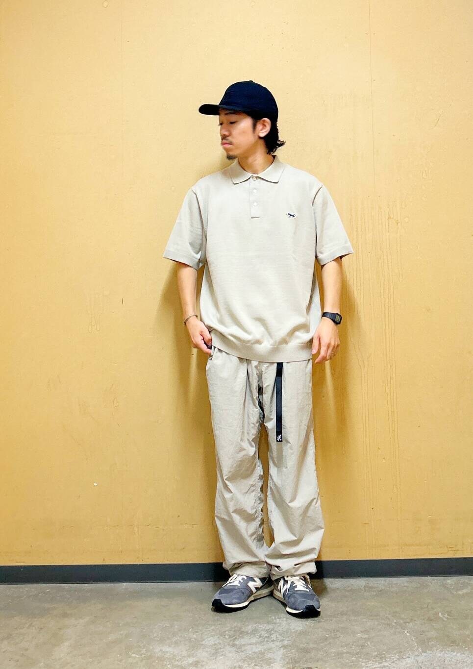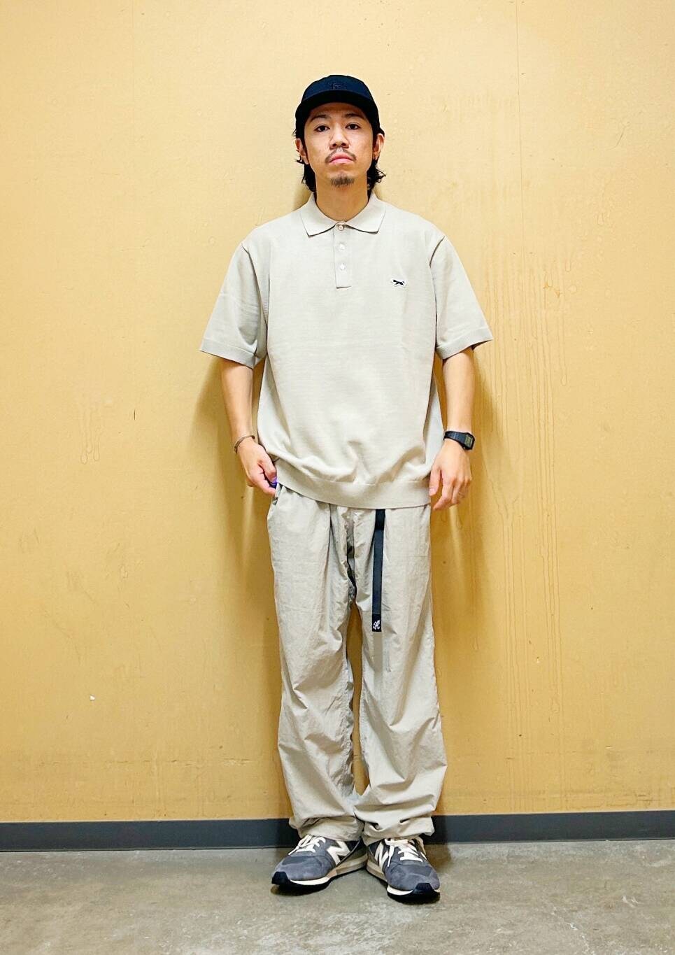 今回はfoxニットポロシャツとグラミチ別注トラックパンツを使用したコーディネート。