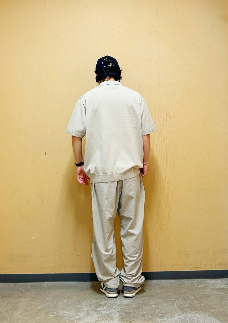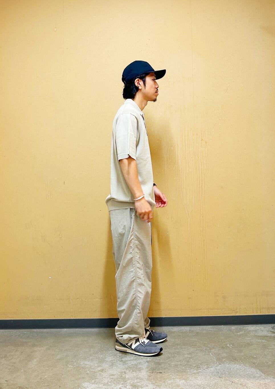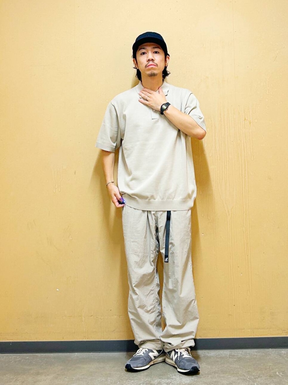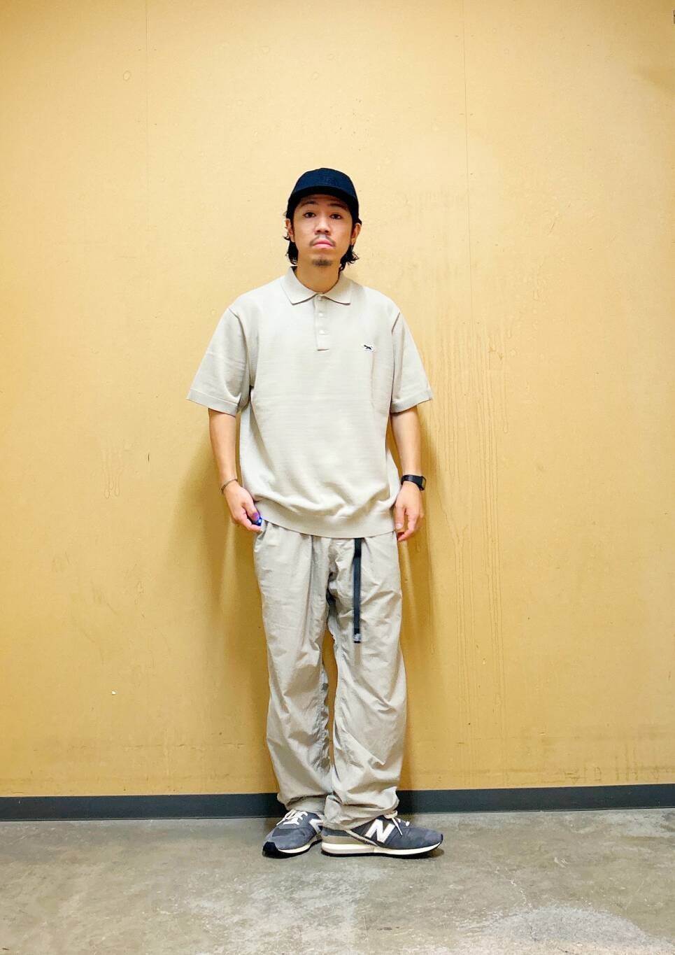 今回はfoxニットポロシャツとグラミチ別注トラックパンツを使用したコーディネート。