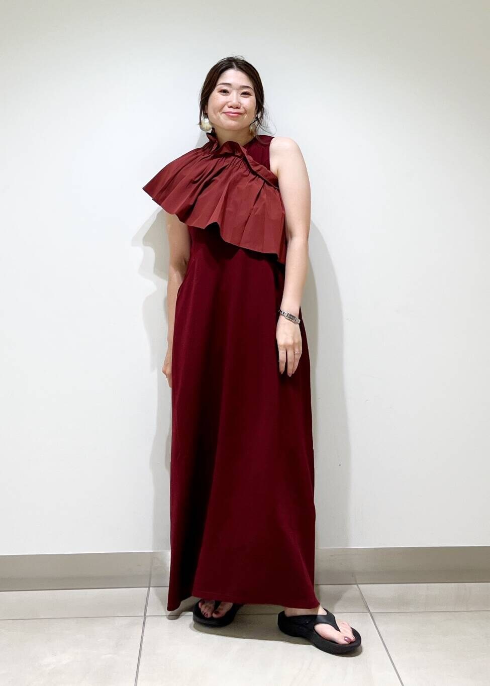 お肌の色が明るく見えるワンピースです!ペプラムトップスがボリューム出過ぎず、上半身肉厚のオダも着れました☆