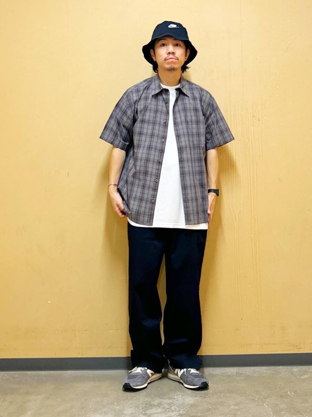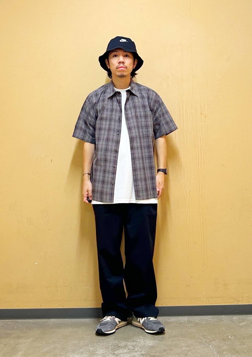今回はマドラスチェックシャツとNIKEイージートラウザーを使用したコーディネート。 落ち着いたマドラスチェック柄が目を引くレギュラーカラーシャツです。
