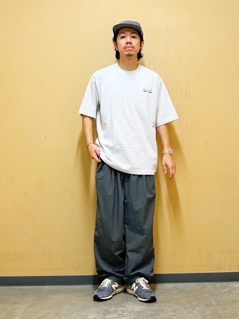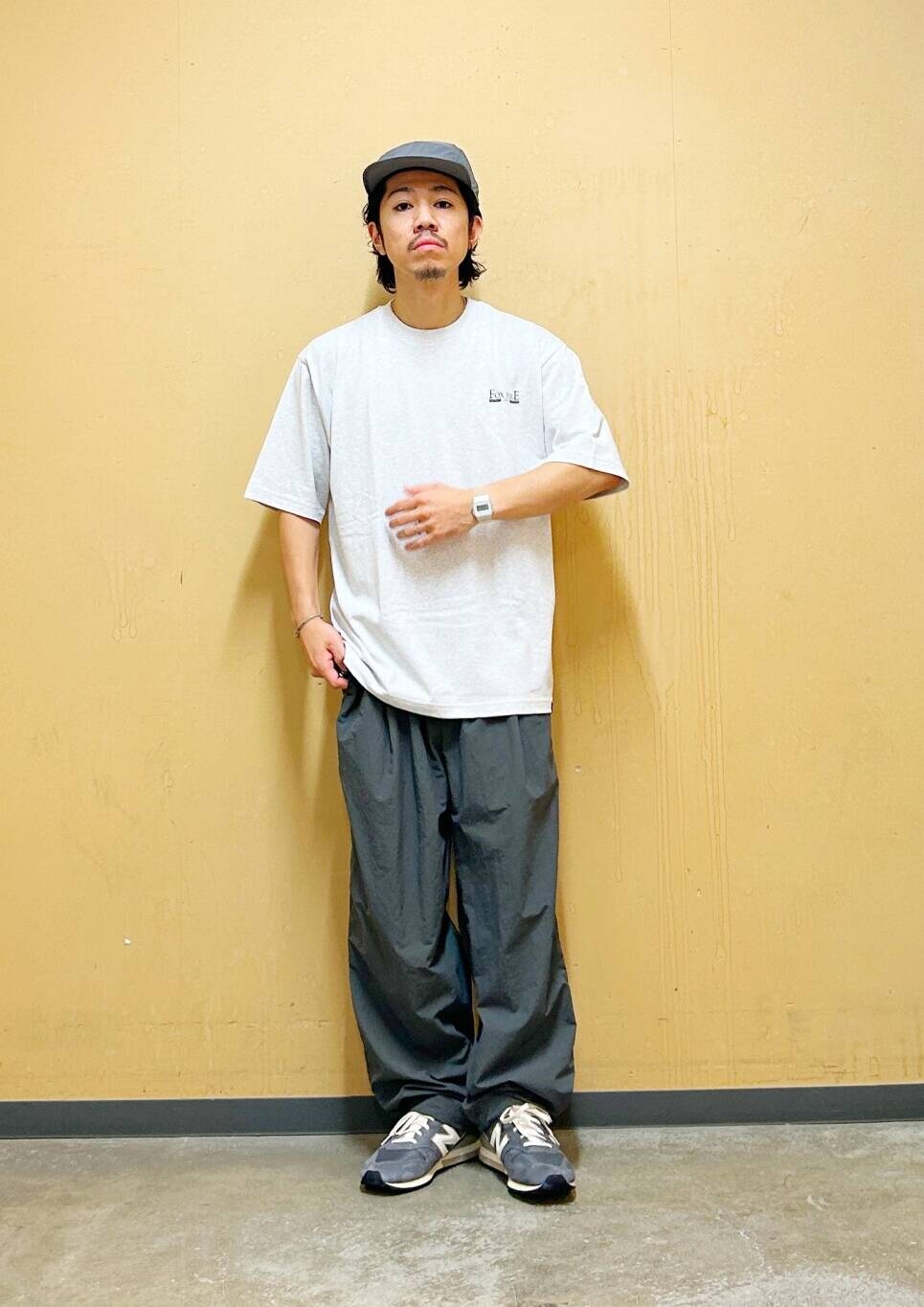 今回はfox fireプリントTシャツとナイロンイージーパンツを使用したコーディネート。