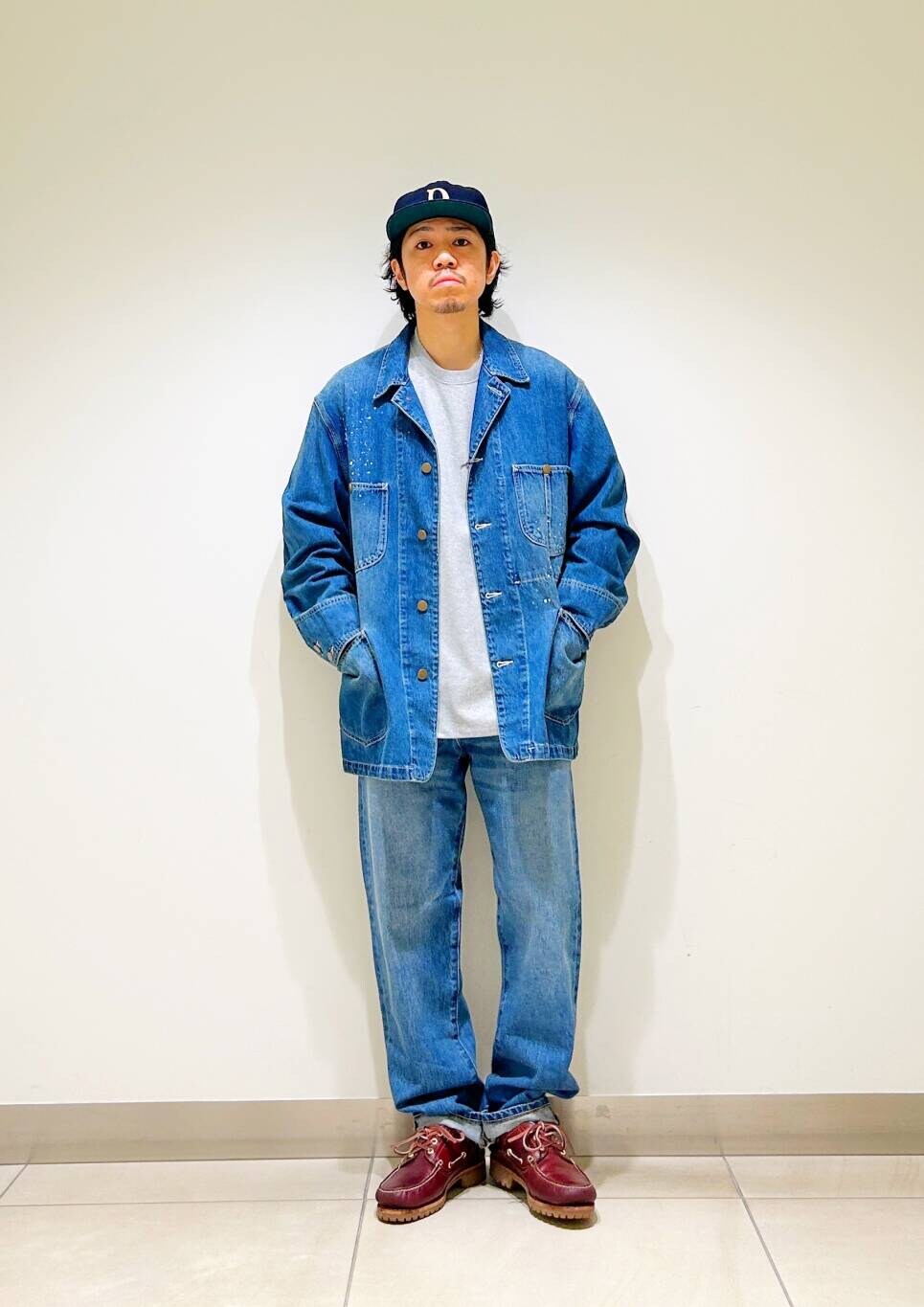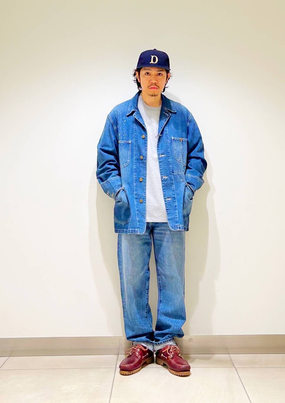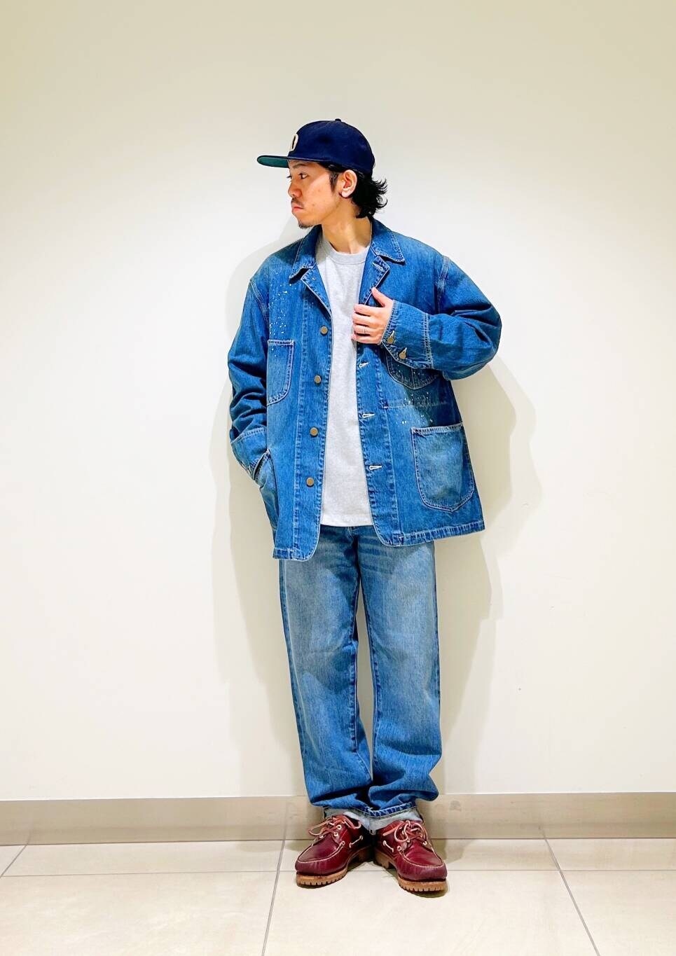 今回はカバーオールとストレートデニムを使用したコーディネート。