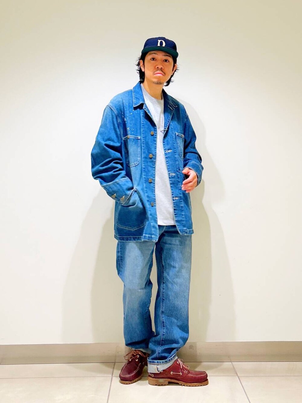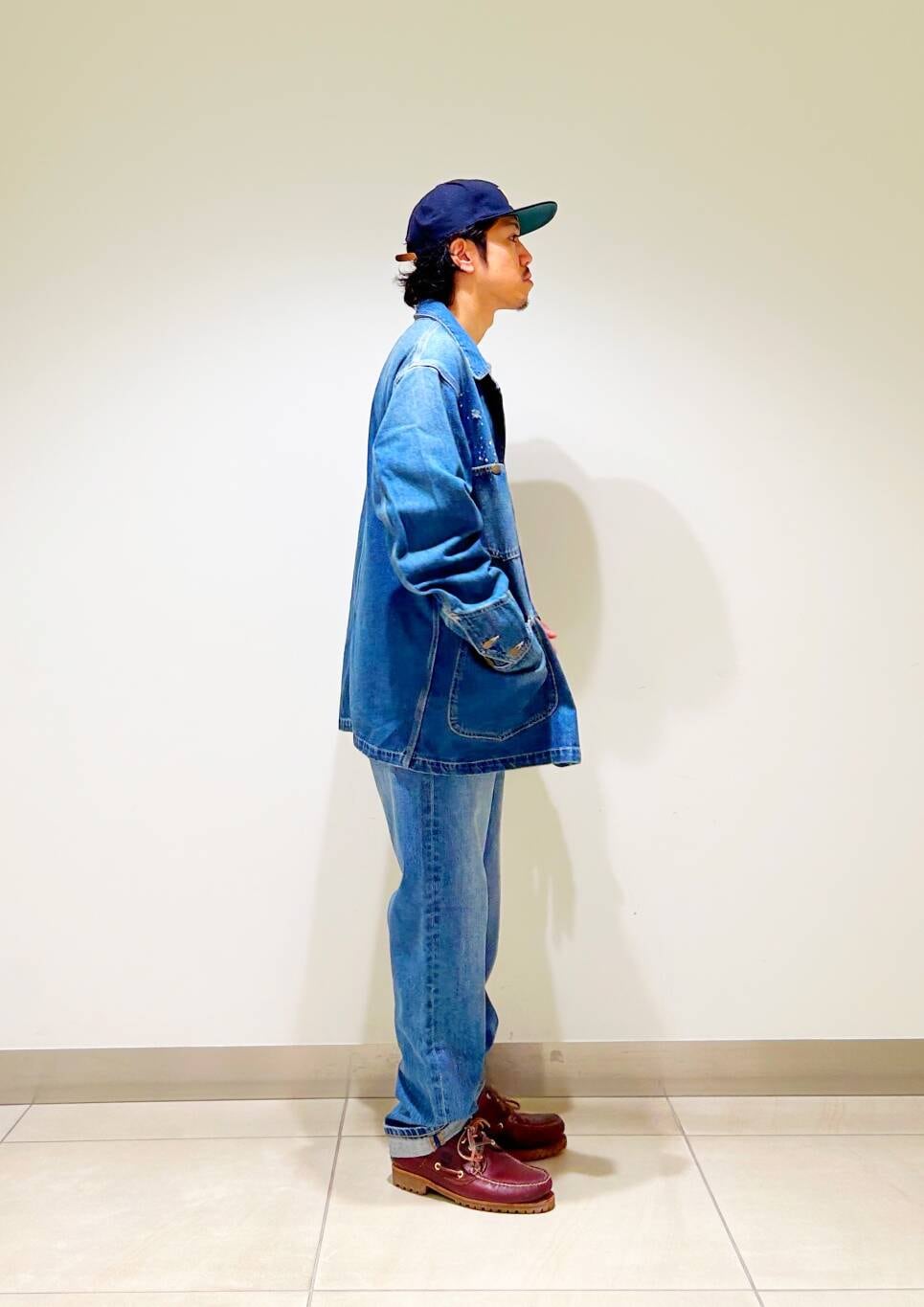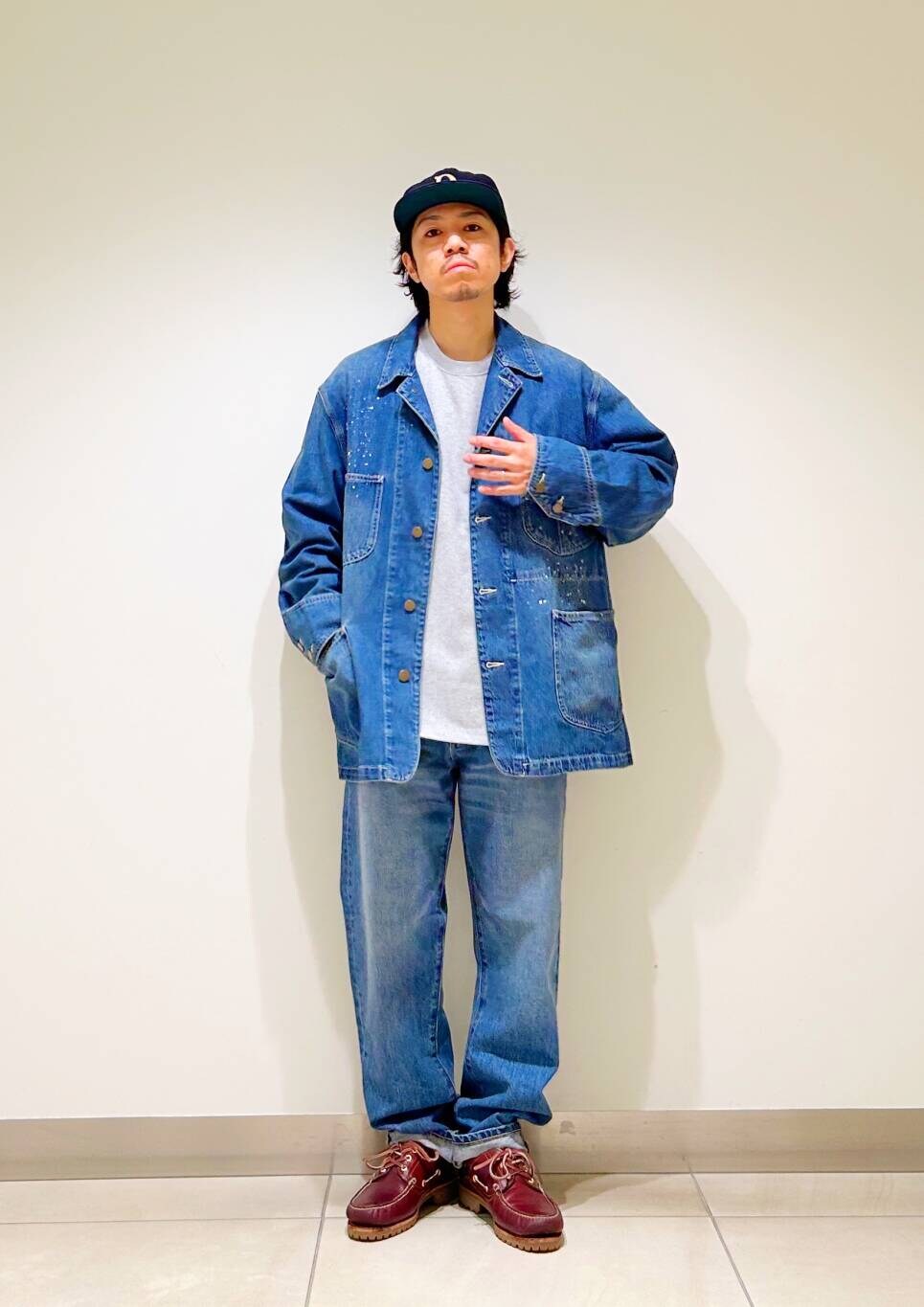 今回はカバーオールとストレートデニムを使用したコーディネート。