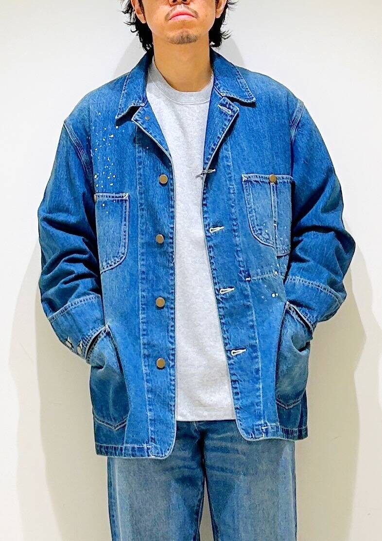 MADE IN JAPAN FABRIC「KAIHARA DENIM」を使用したデニムパッケージがローンチ。 カバーオール特有の 10oz のデニムを使用しました。縦落ちを際立たせるタテ糸のムラが強い素材をチョイスしヴィンテージさながらのクオリティに仕上げました。 手作業による加工に、ペンキや穴あきを加えた今季のアーバンリサーチの最注目アイテムの1つです。