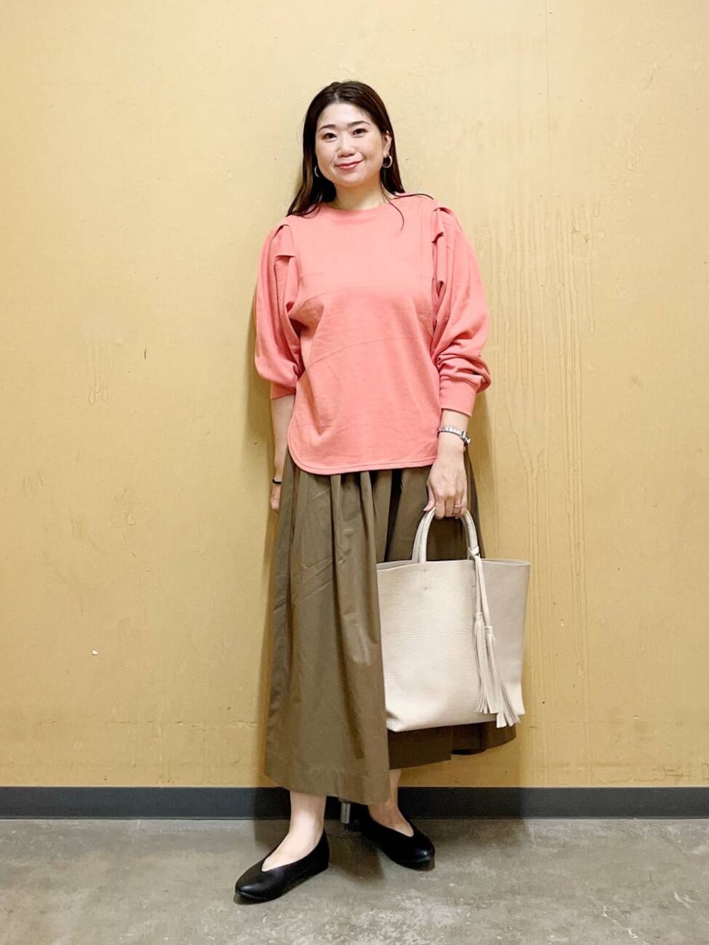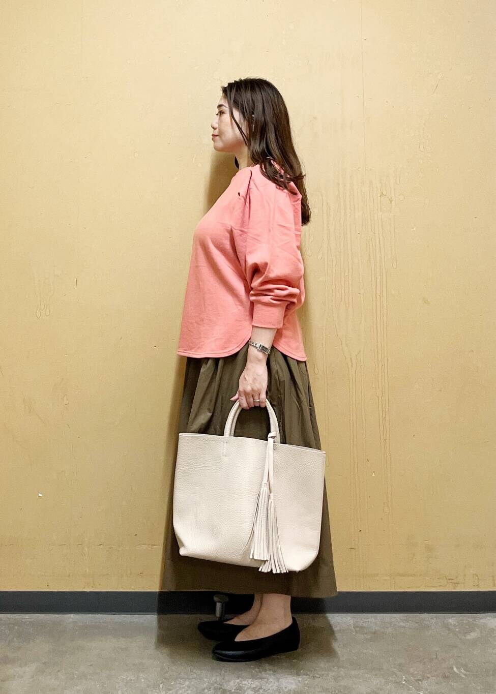 柔らかいピンクのカラーが目を惹くプルオーバーを主役にしました☆