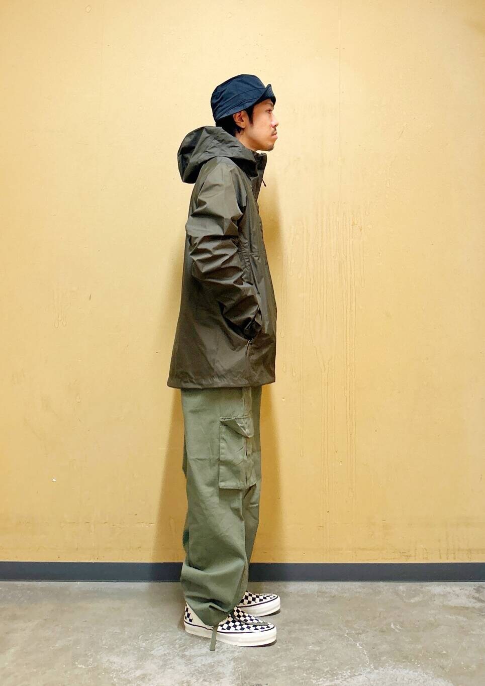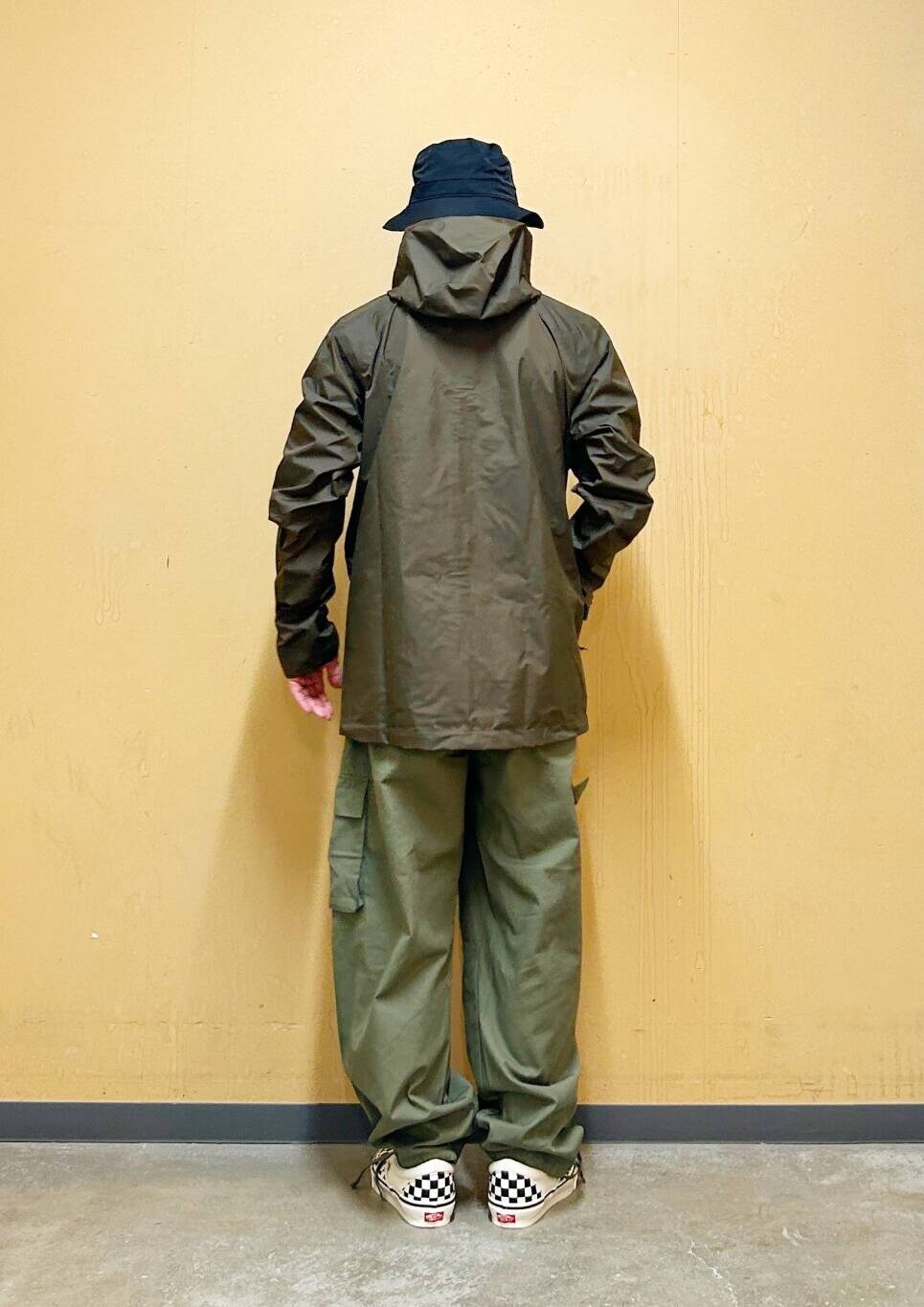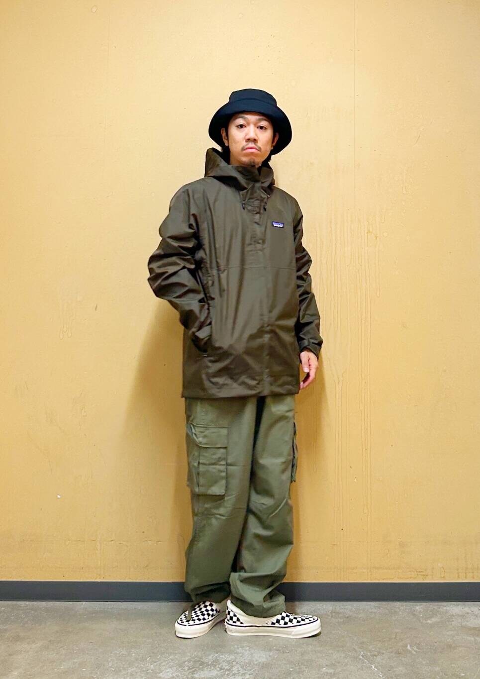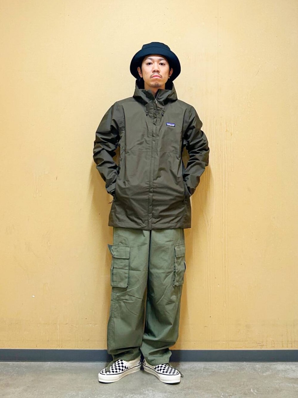今回はpatagonia Torrentshell 3L Rain Jacketとカーゴパンツを使用したコーディネート。