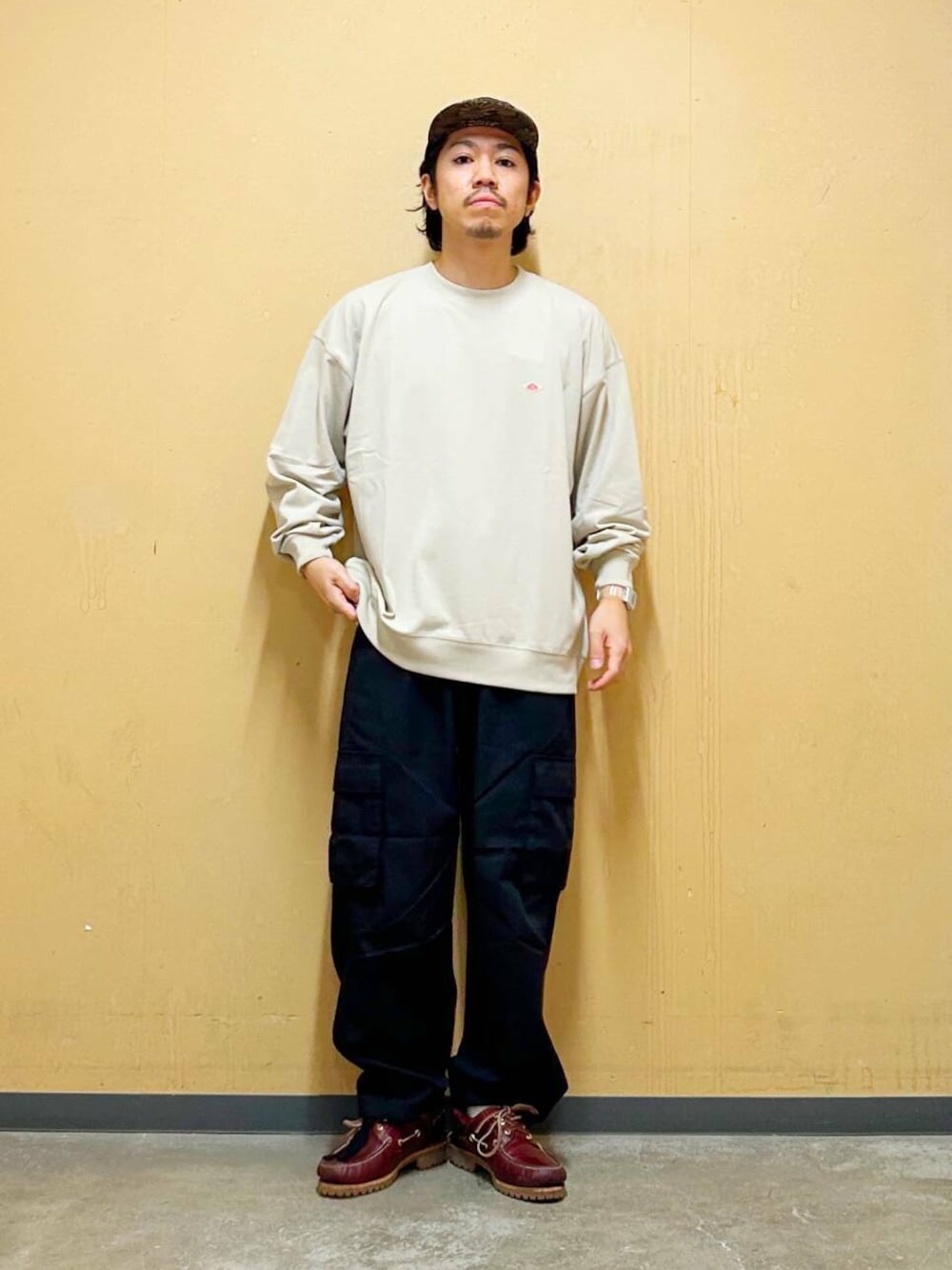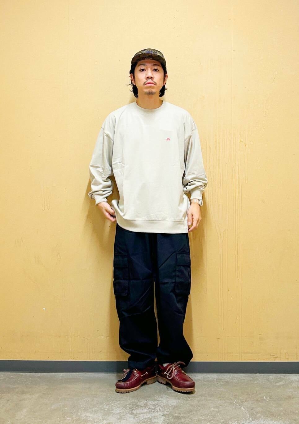 今回はDANTONロンTとカーゴパンツを使用したコーディネート。