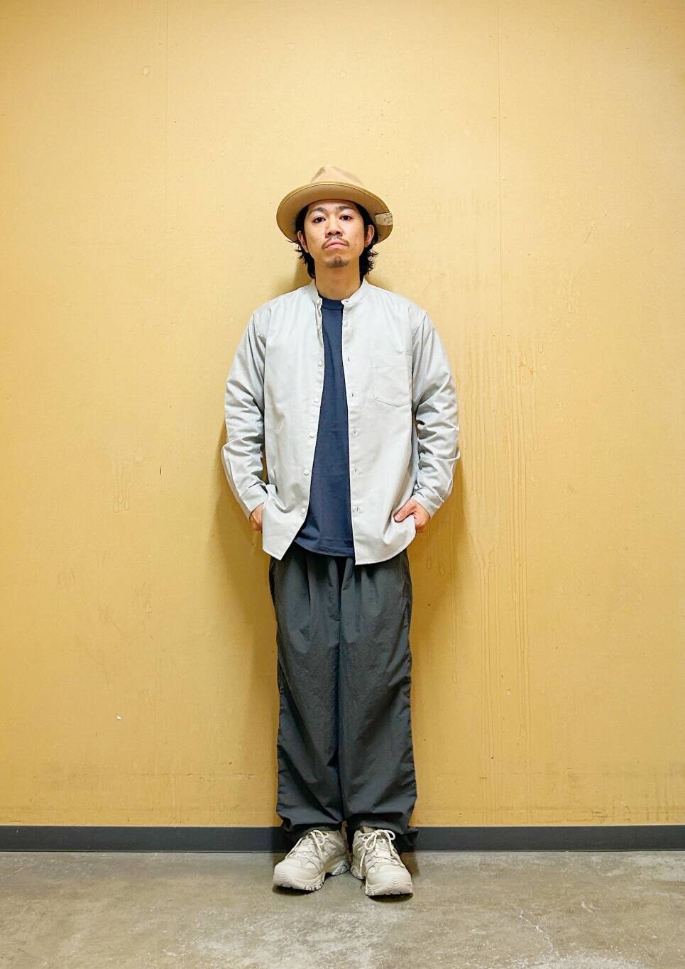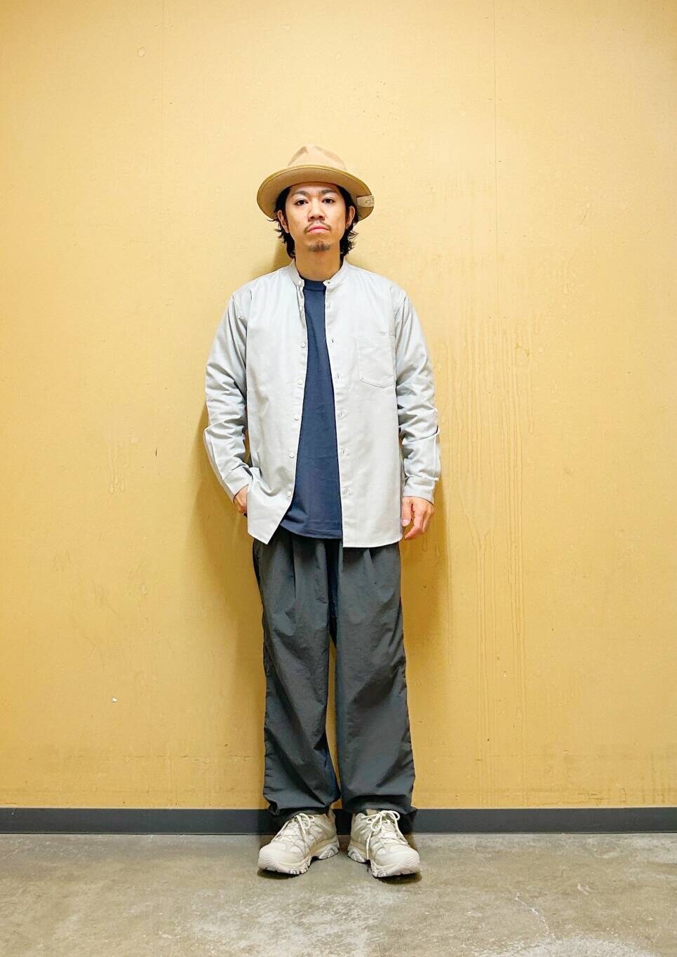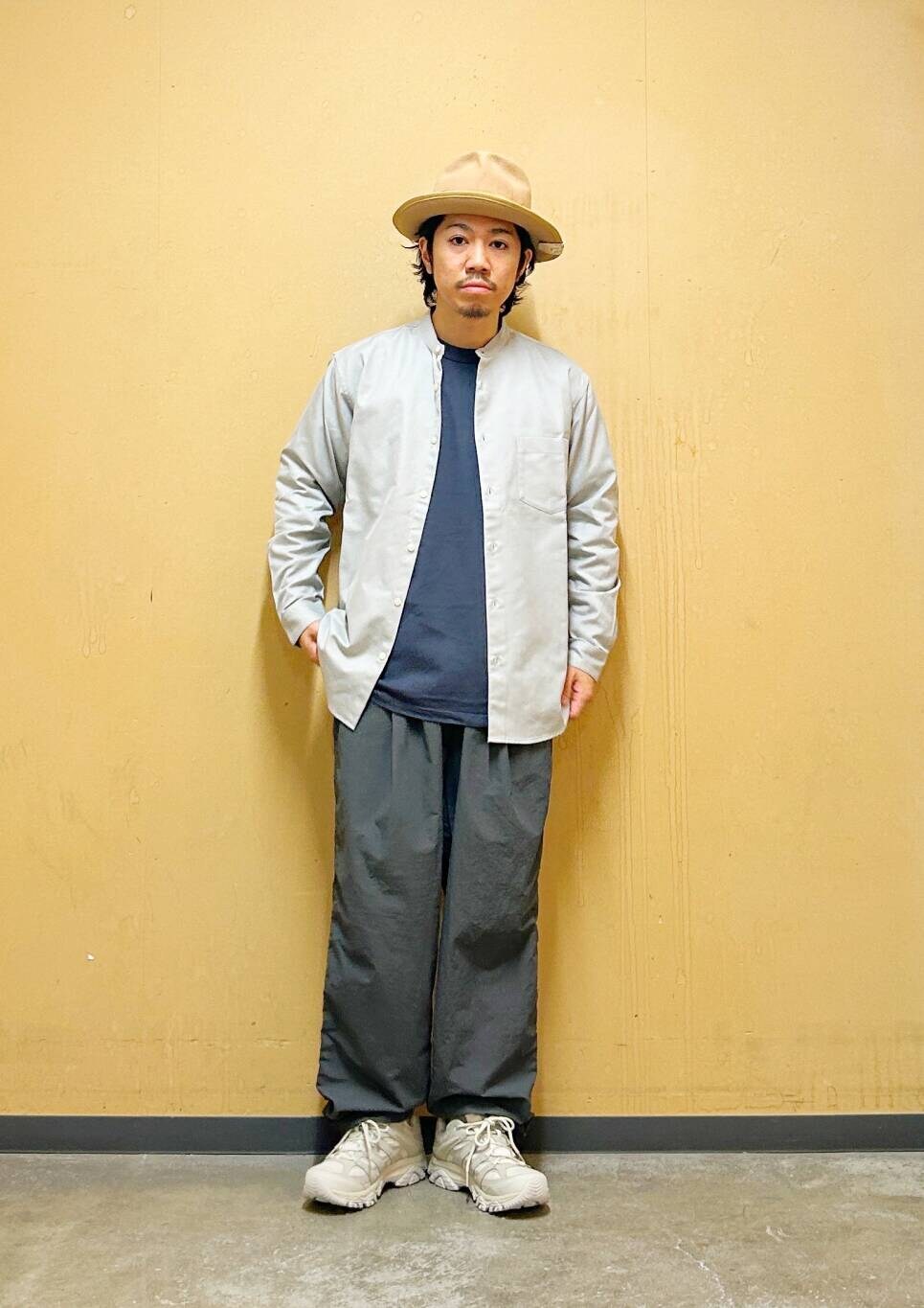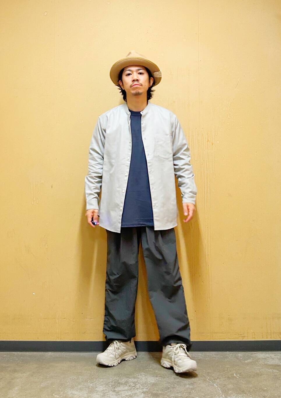 今回はセオアルファウールライクバンドカラーシャツとEASY BREEZY PANTSを使用したコーディネート。