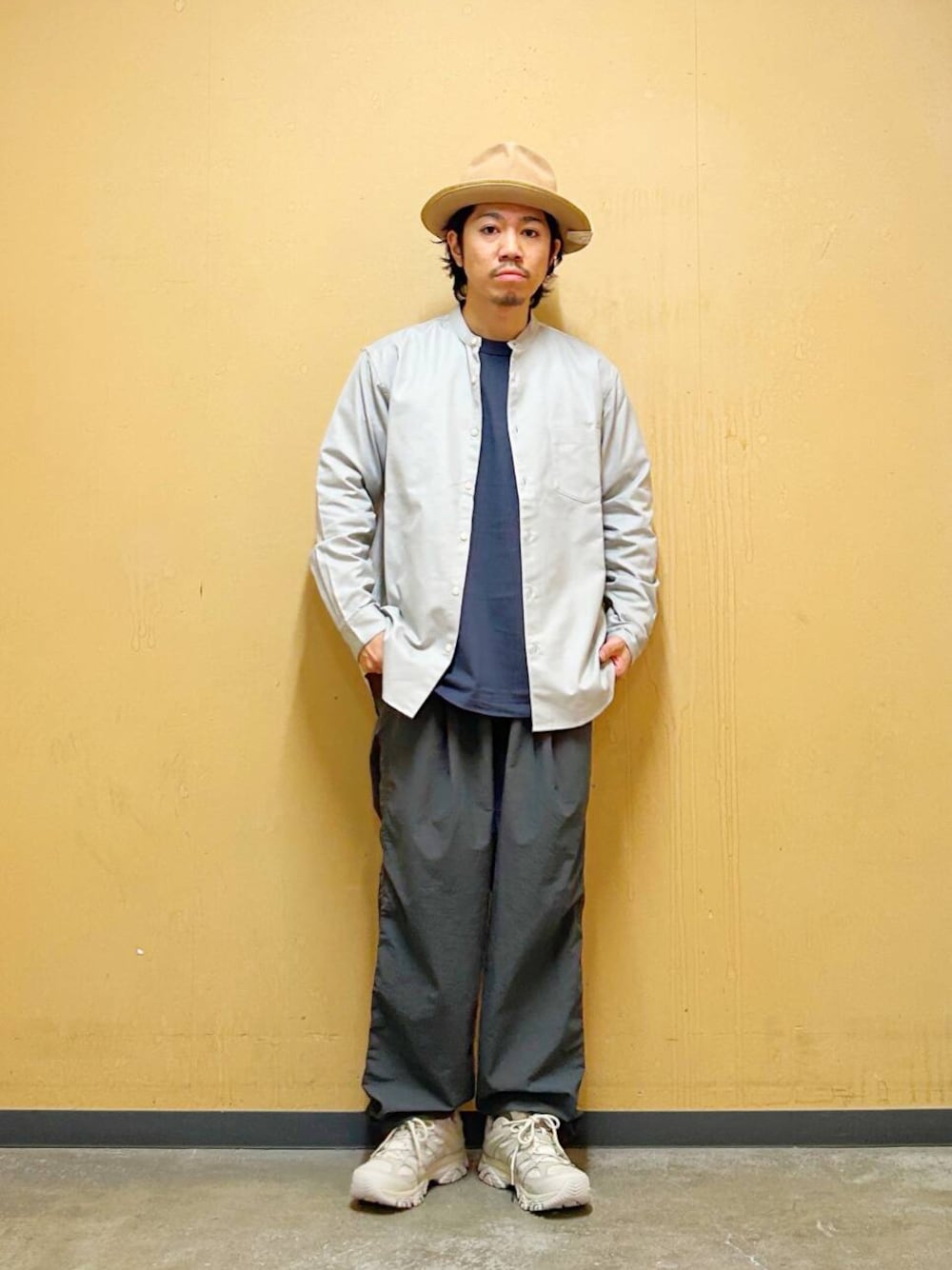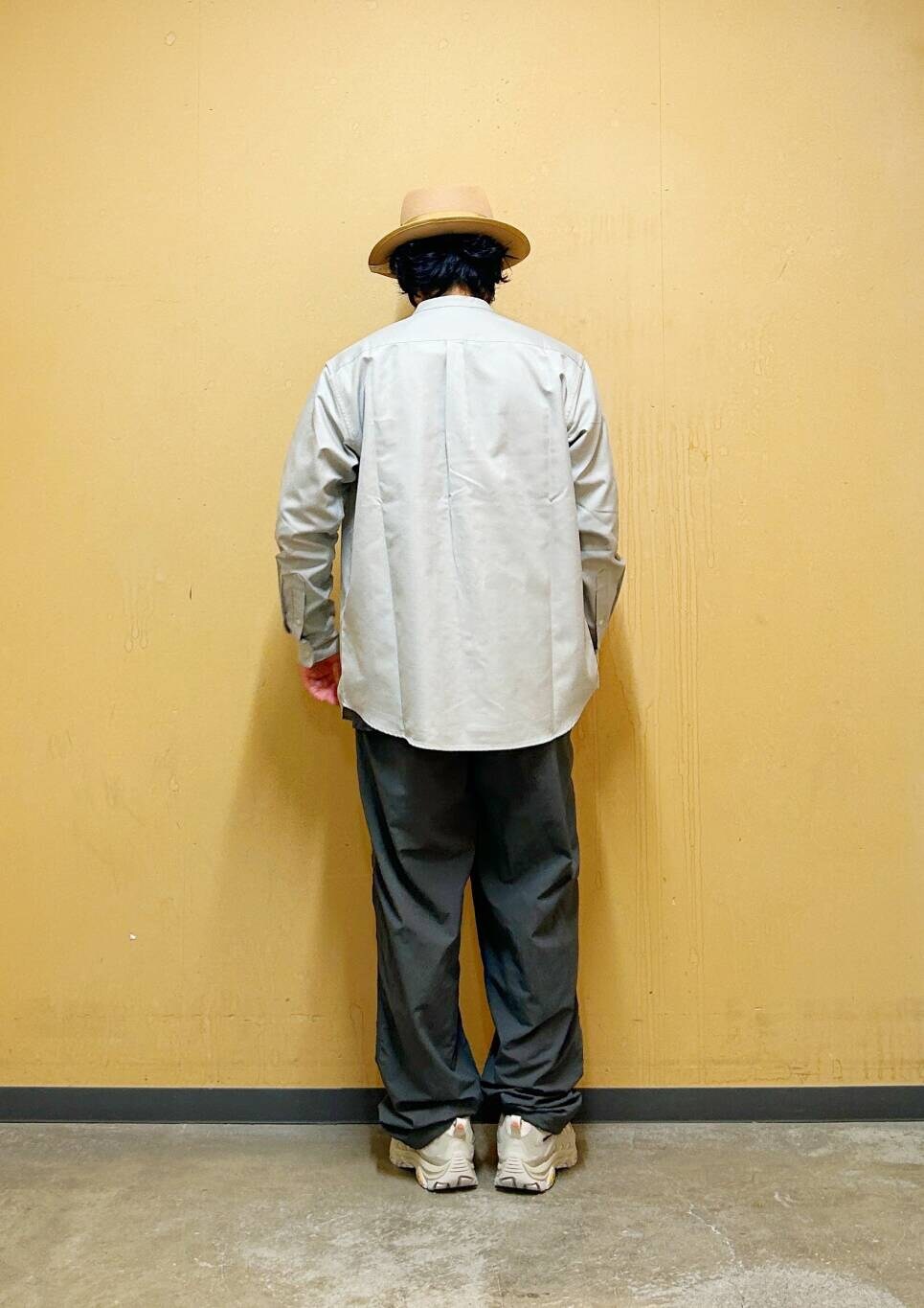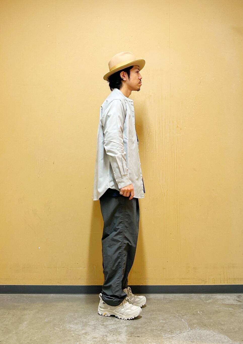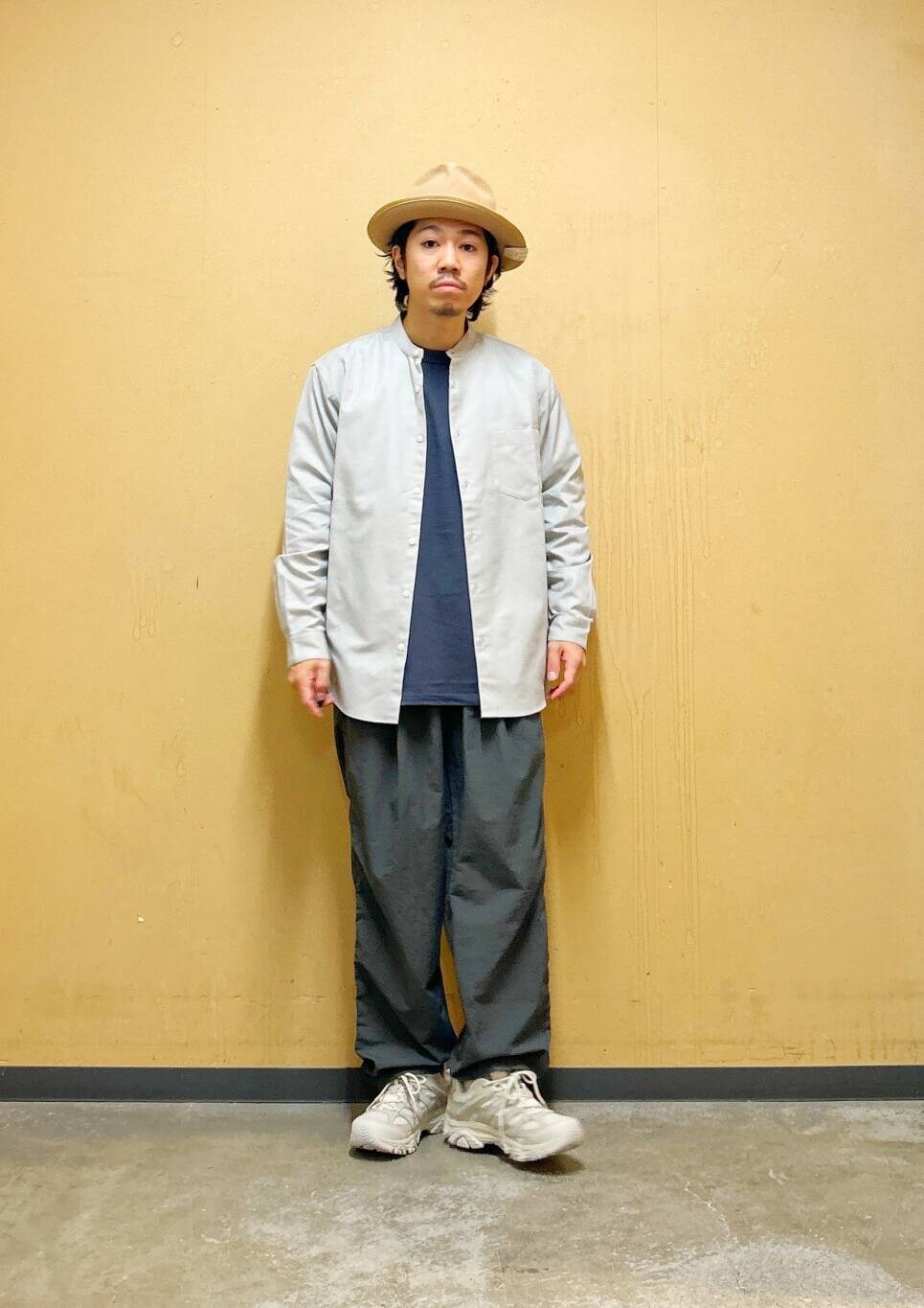 今回はセオアルファウールライクバンドカラーシャツとEASY BREEZY PANTSを使用したコーディネート。