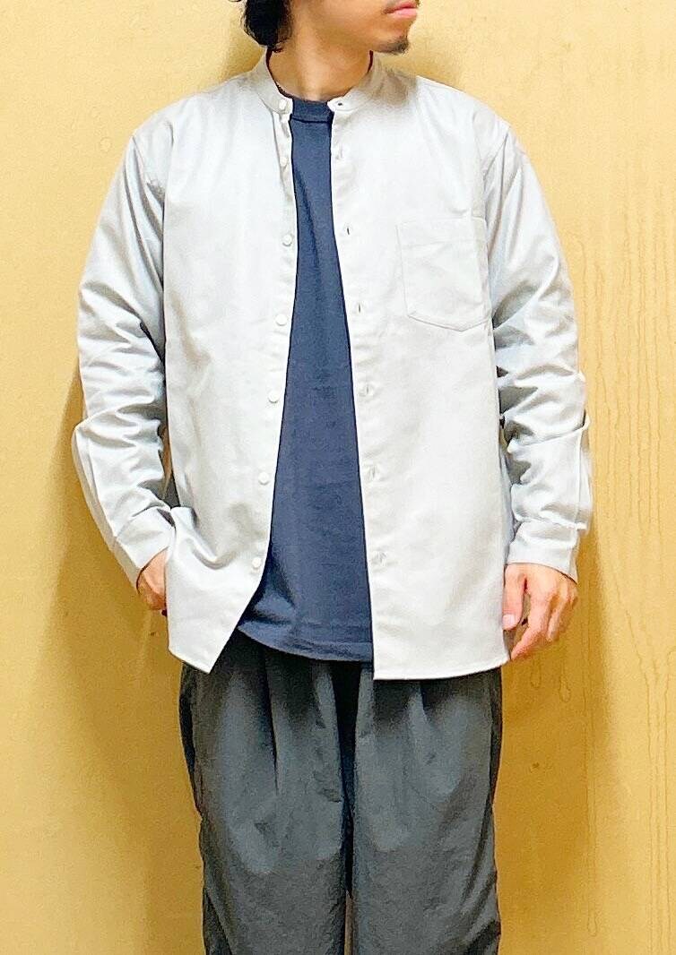 人気素材"セオアルファ"を用いたウールライクなバンドカラーシャツ