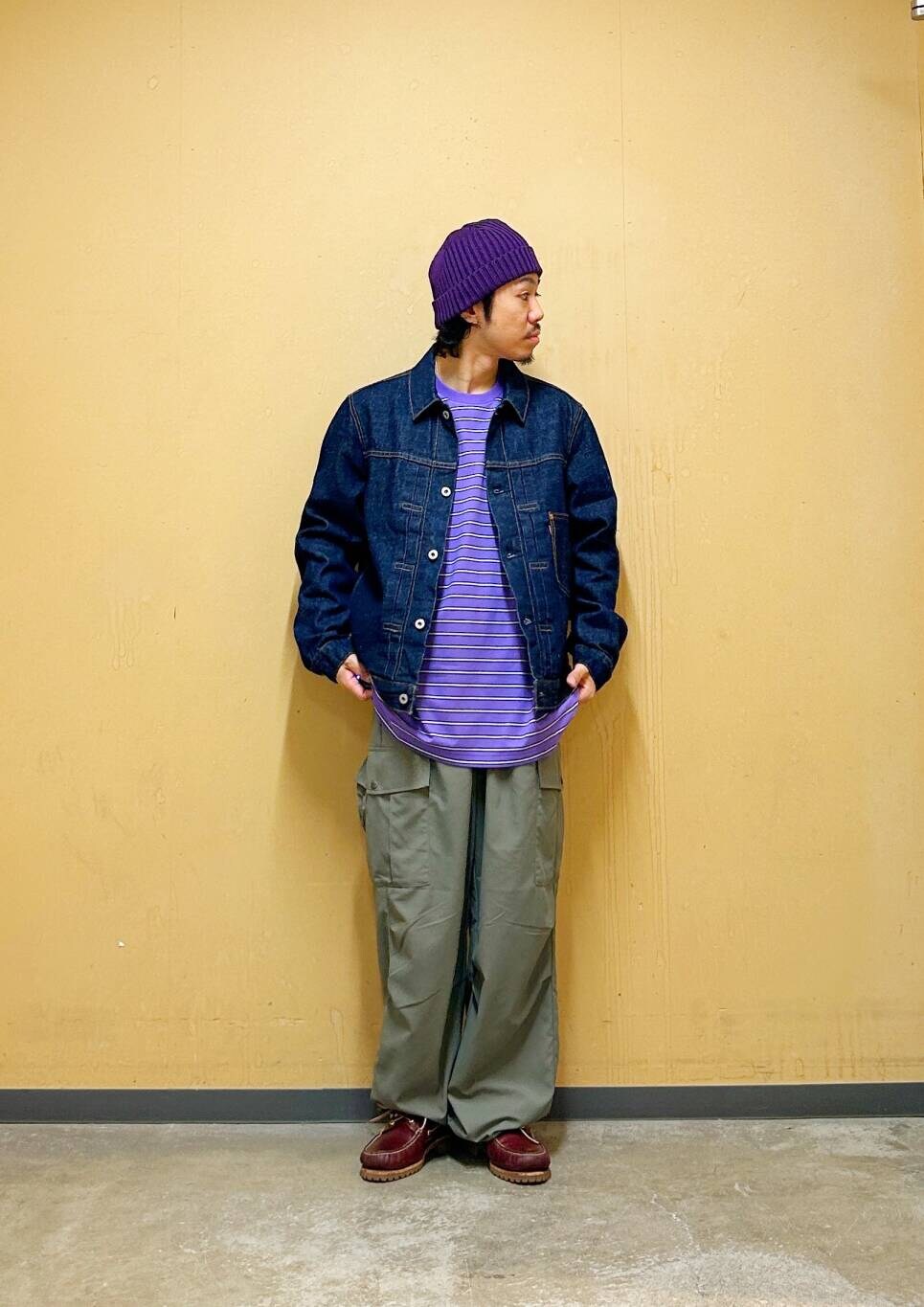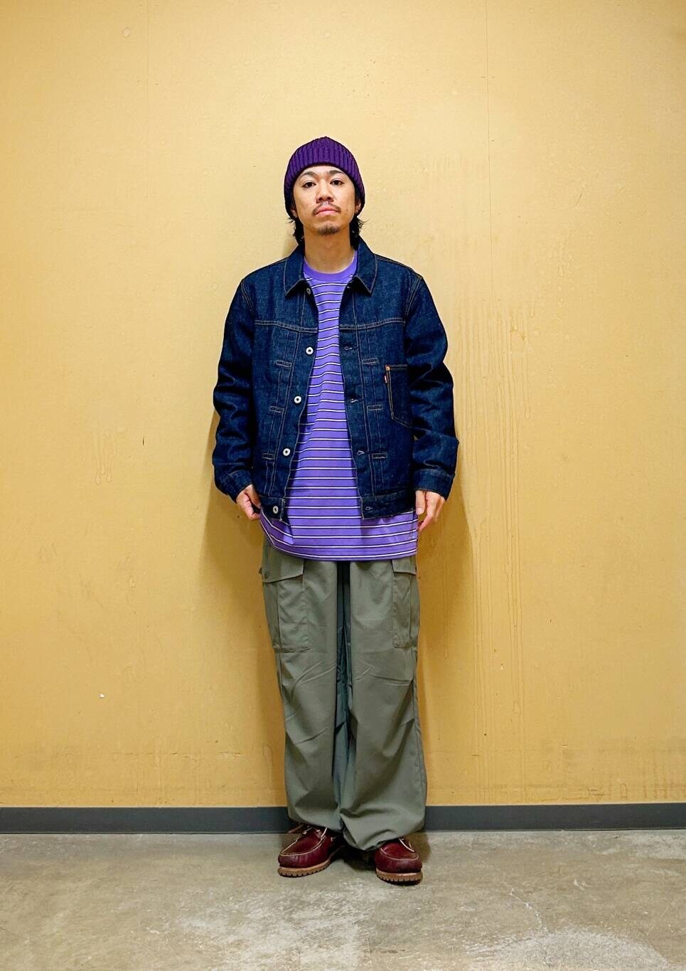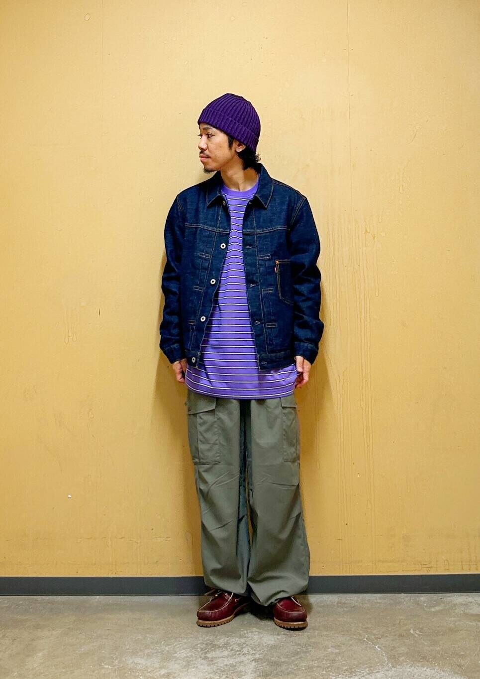 今回はリーバイスデニムジャケットとwaq別注カーゴパンツを使用したコーディネート。