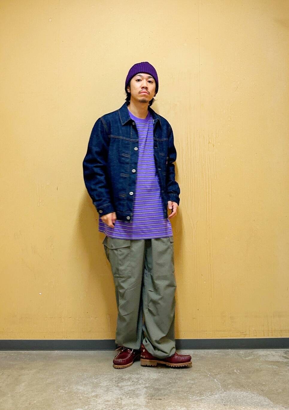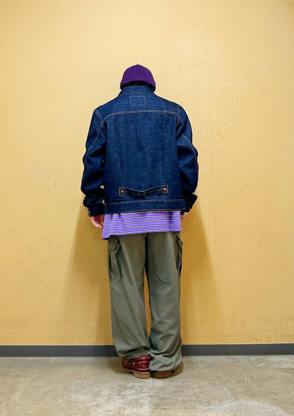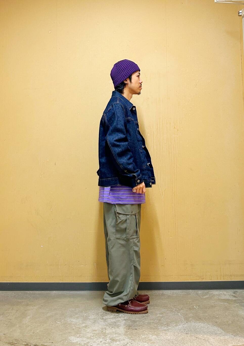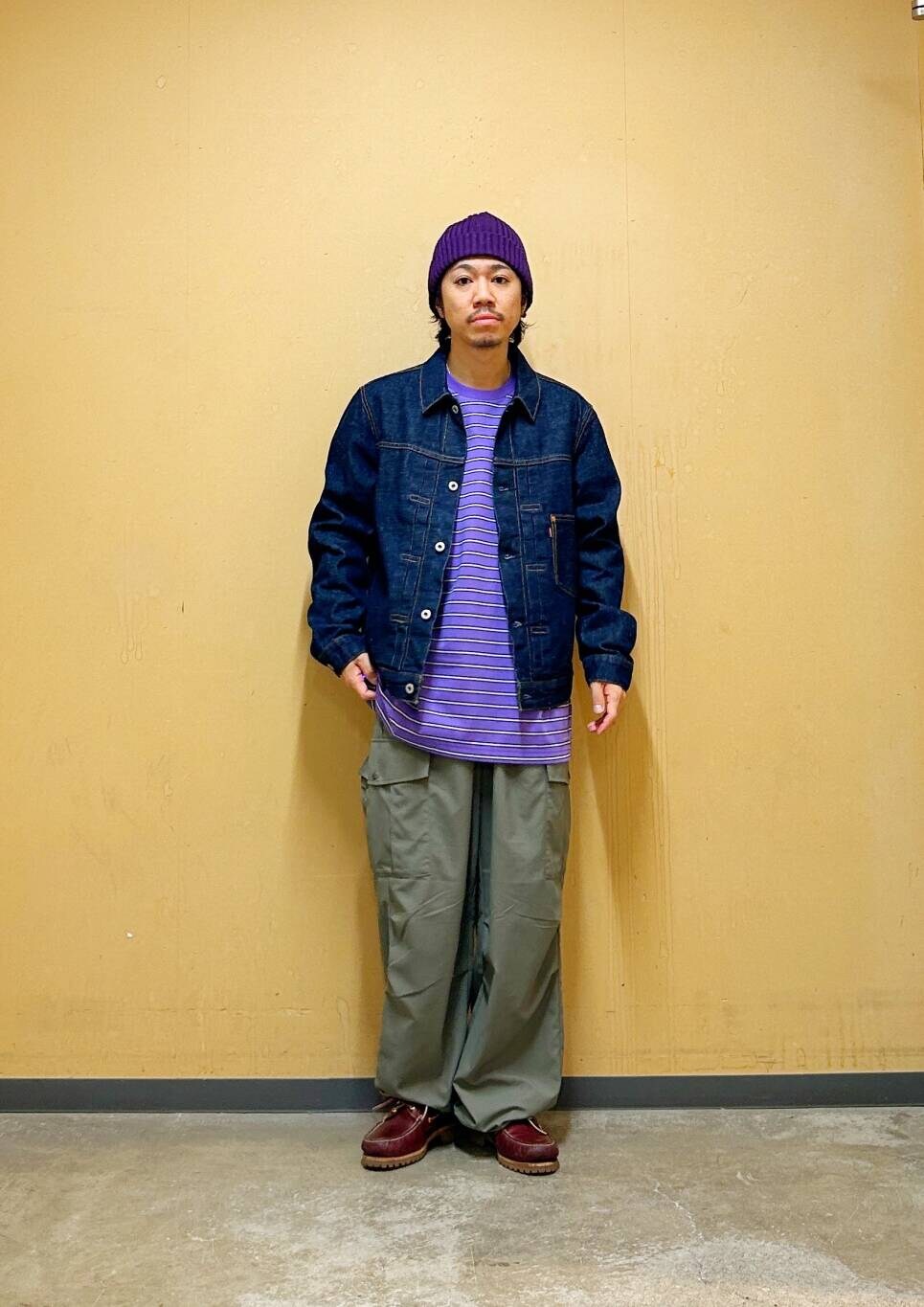 今回はリーバイスデニムジャケットとwaq別注カーゴパンツを使用したコーディネート。