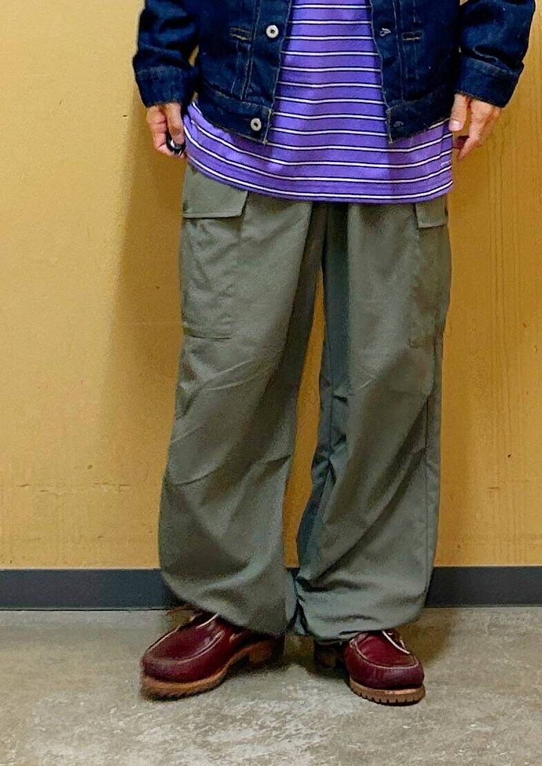 雰囲気のある荒らしい生地感のリンスカラーで、ヘンプ混の素材のため通気性も良く、見た目に反して着やすさも持ち合わせていますので色落ちを楽しみながら長く愛用頂ける一着です。