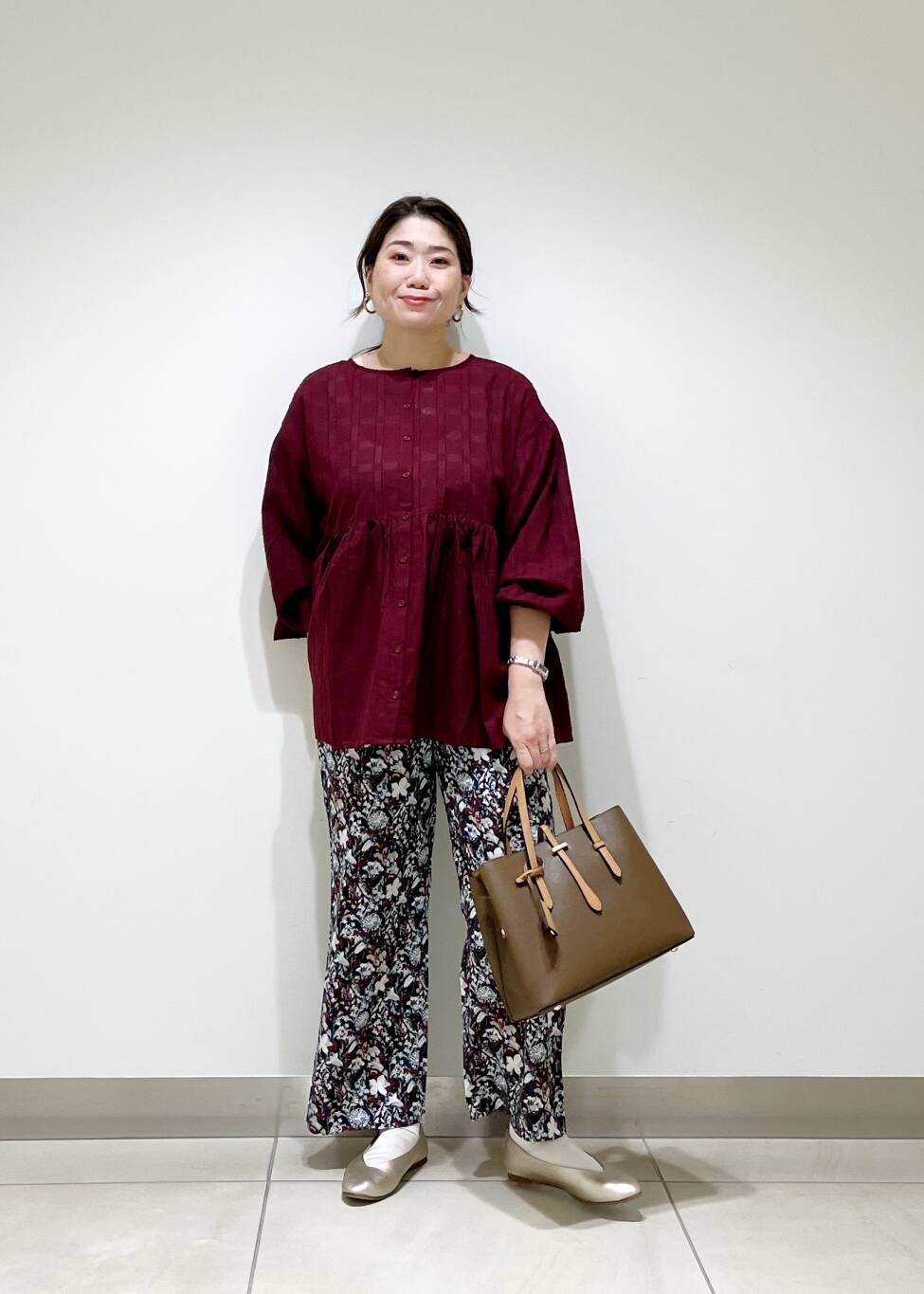 高めの切替位置なので、ゆるっとしたボトムスとも相性良しです!