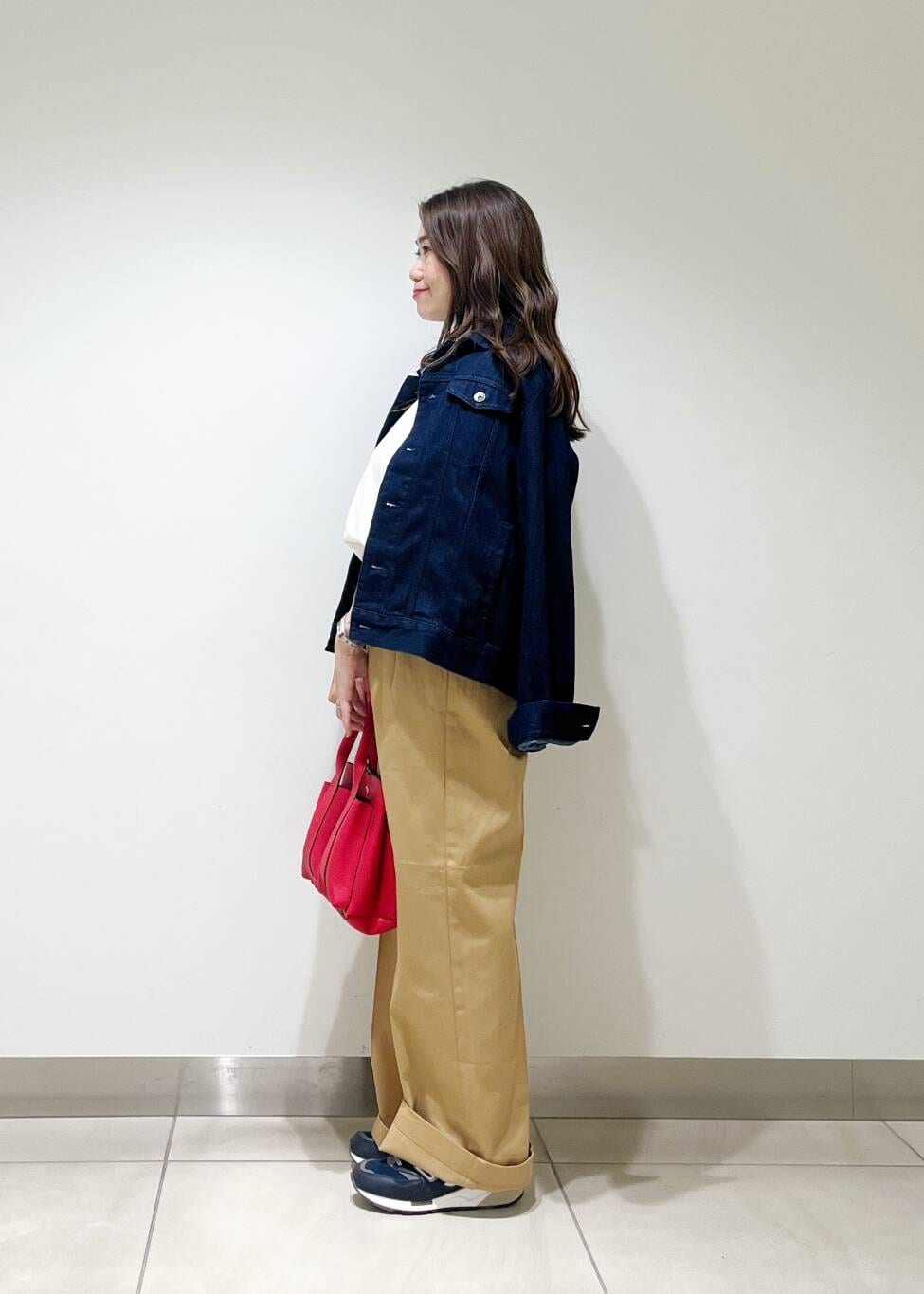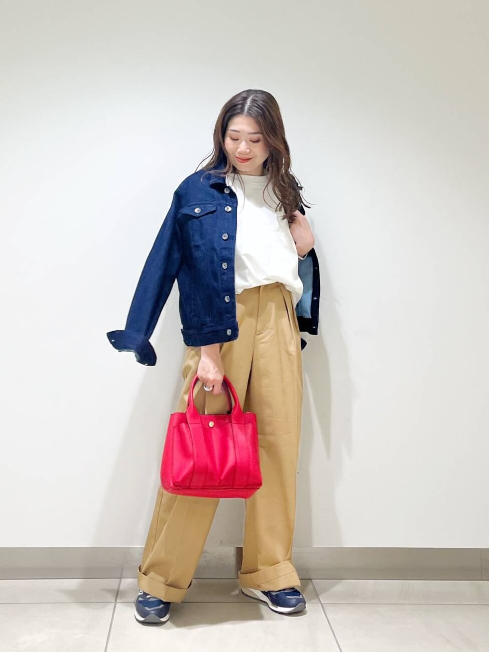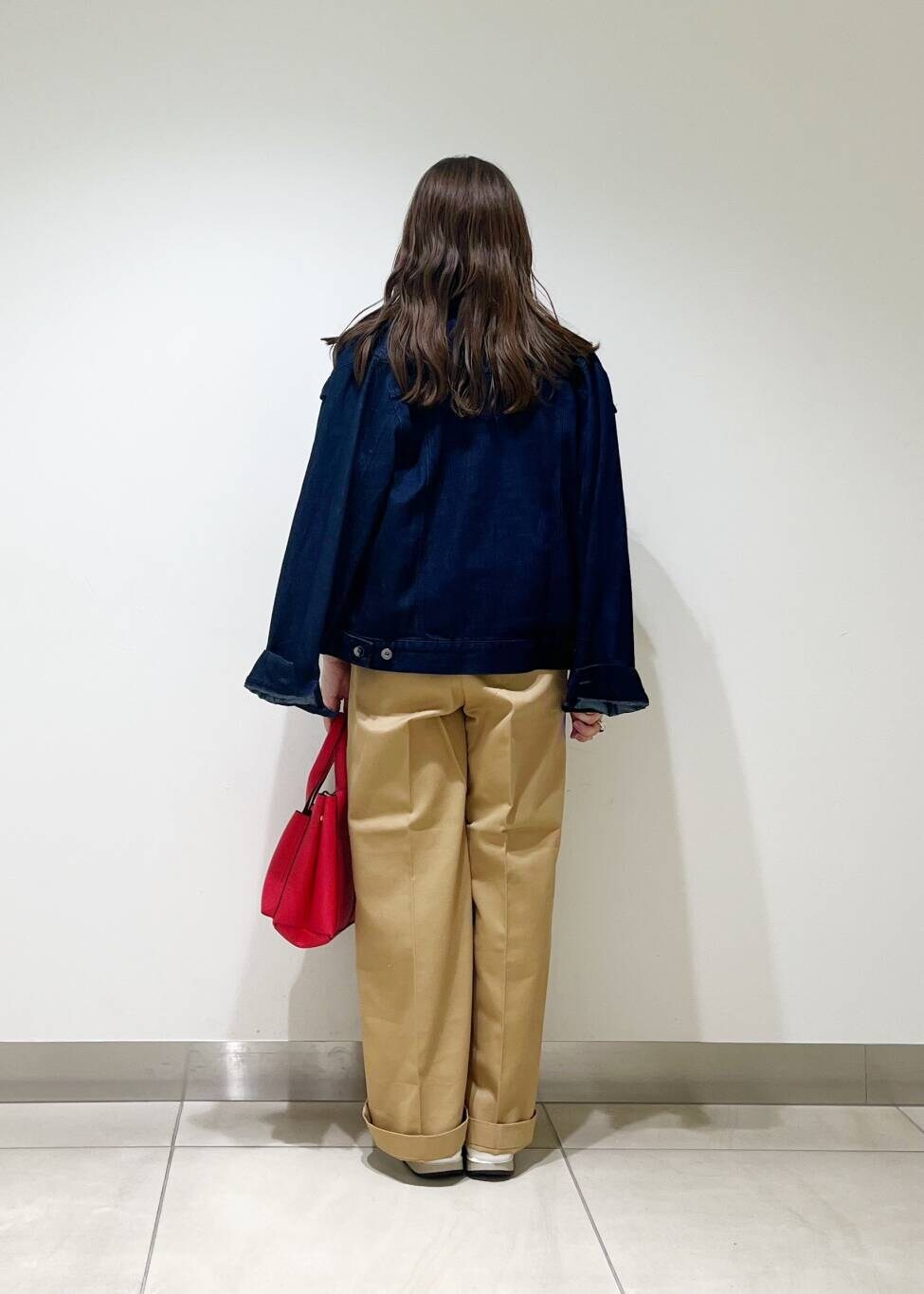 こっくりとしたカラーのデニムジャケットには少し爽やかな色合いでスタイリングしました☆