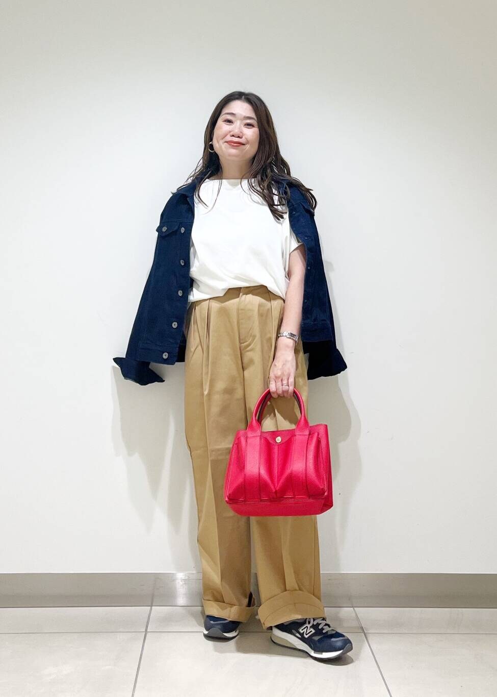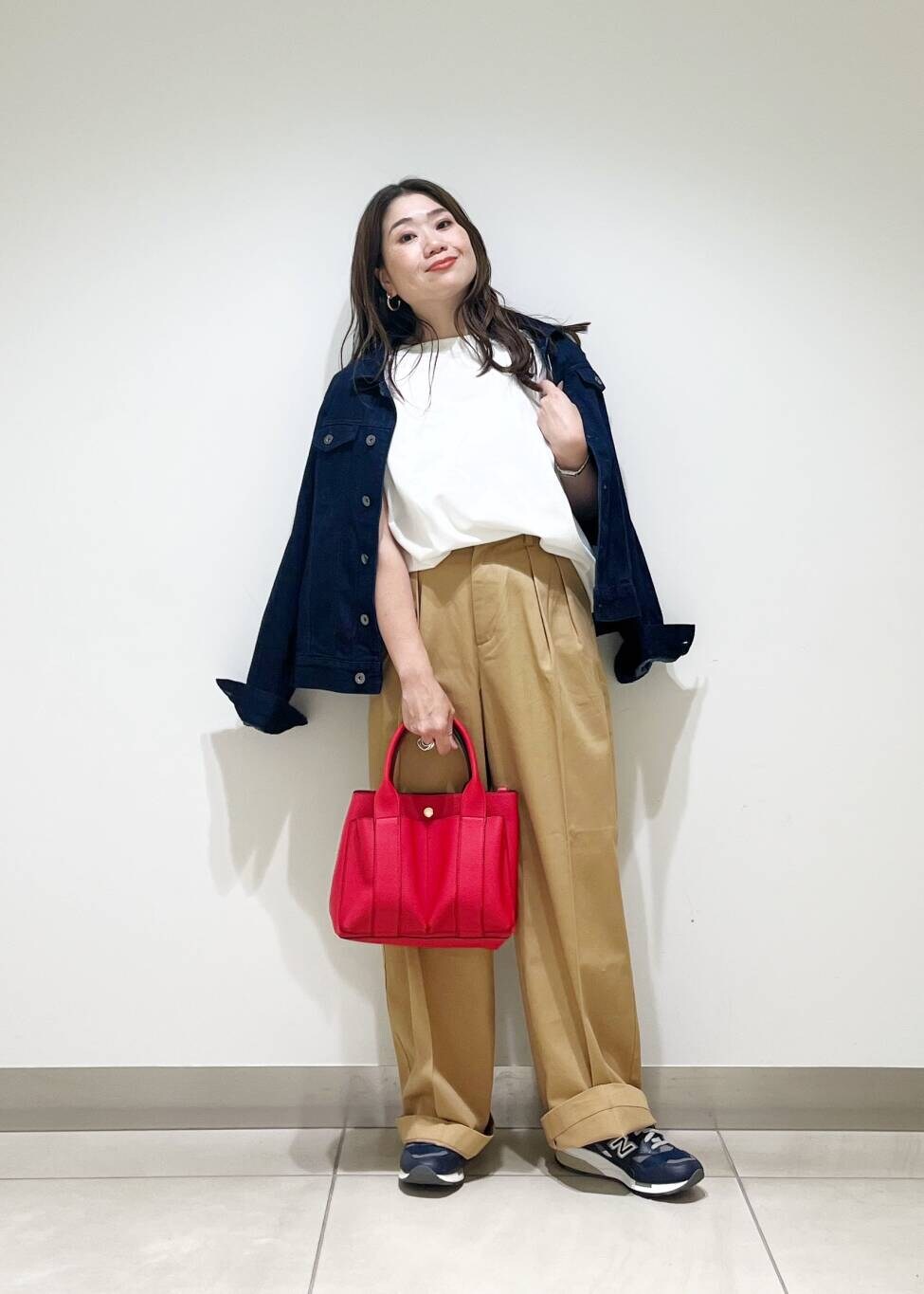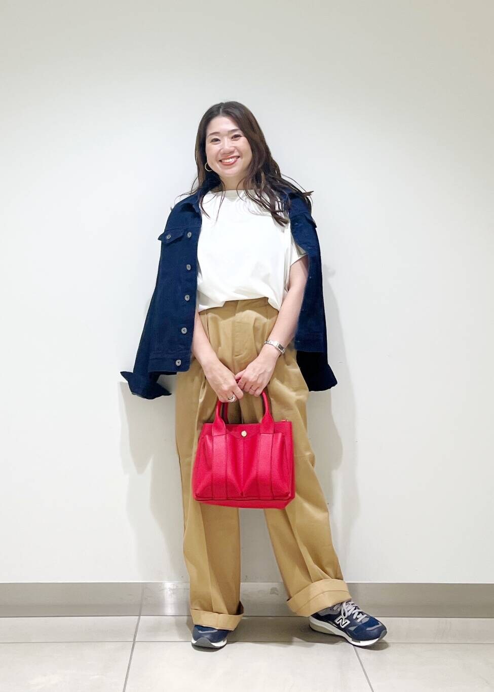 レッドのバッグを差し色に入れて、より華やかな印象にしました☆