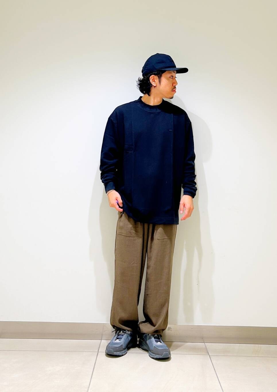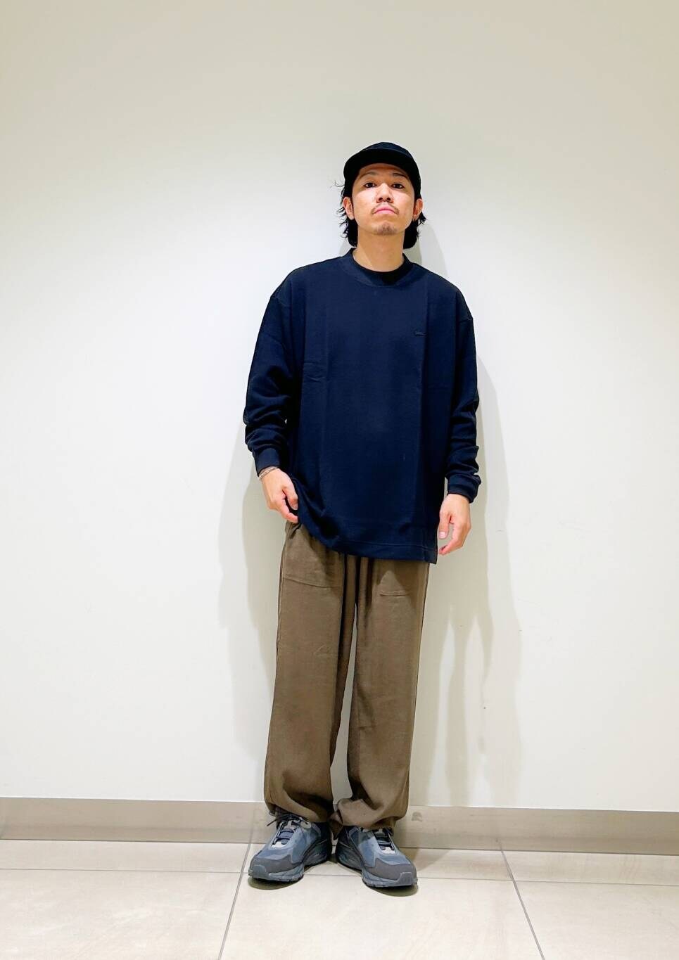 今回はLACOSTE×DOORS thick pique mock Long-Sleeveとリネンストレッチイージーパンツを使用したコーディネート。