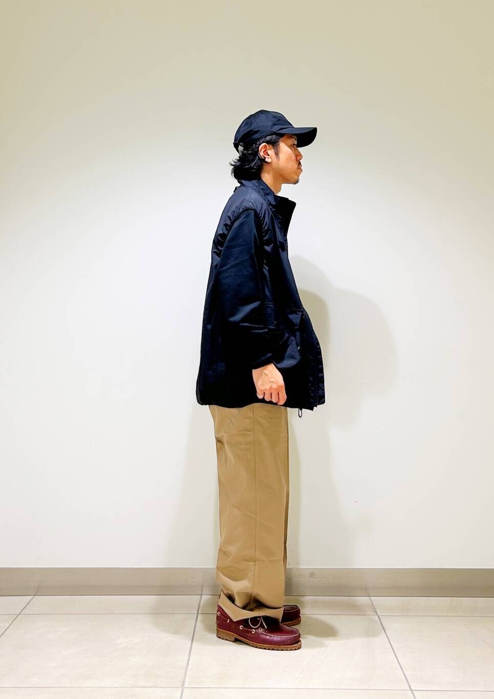 少し着丈を長めに設定したゆとりのあるシルエットで、脇には機能性を重視したファスナー付きのシームポケットを配置。