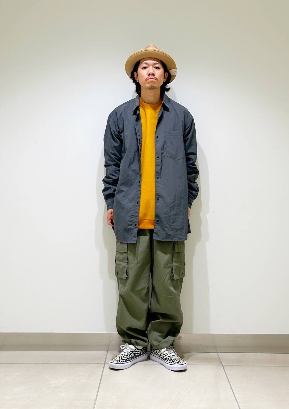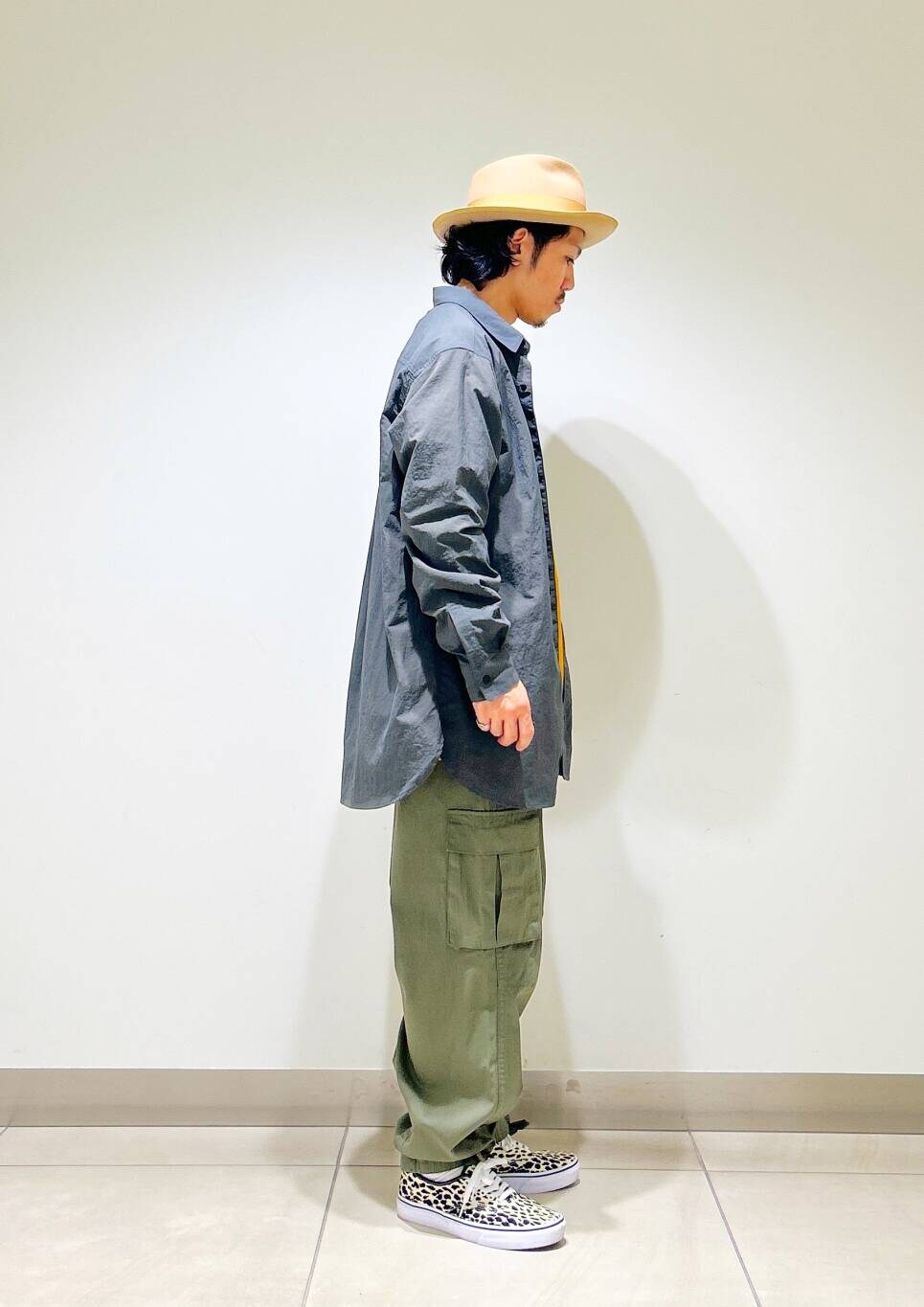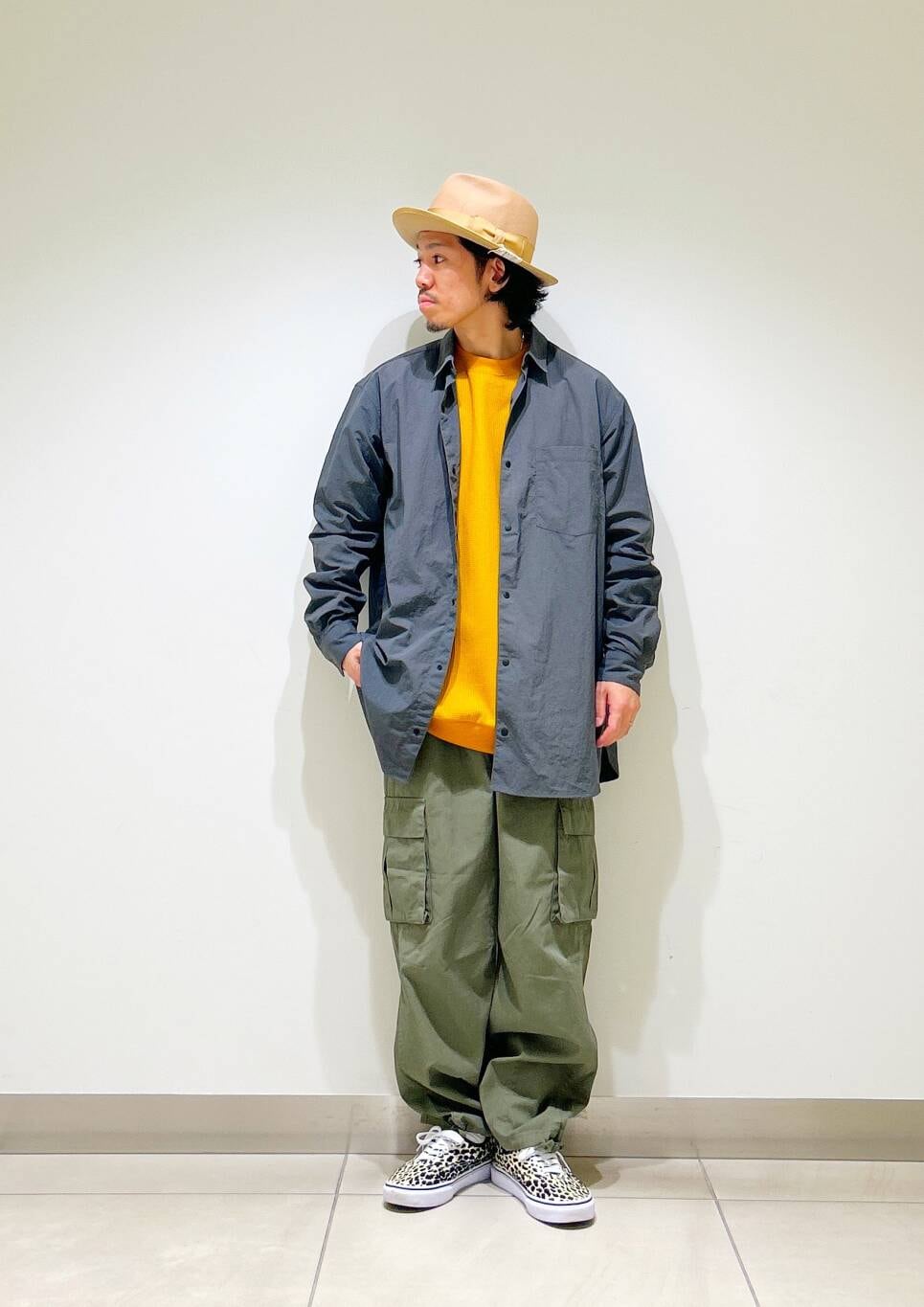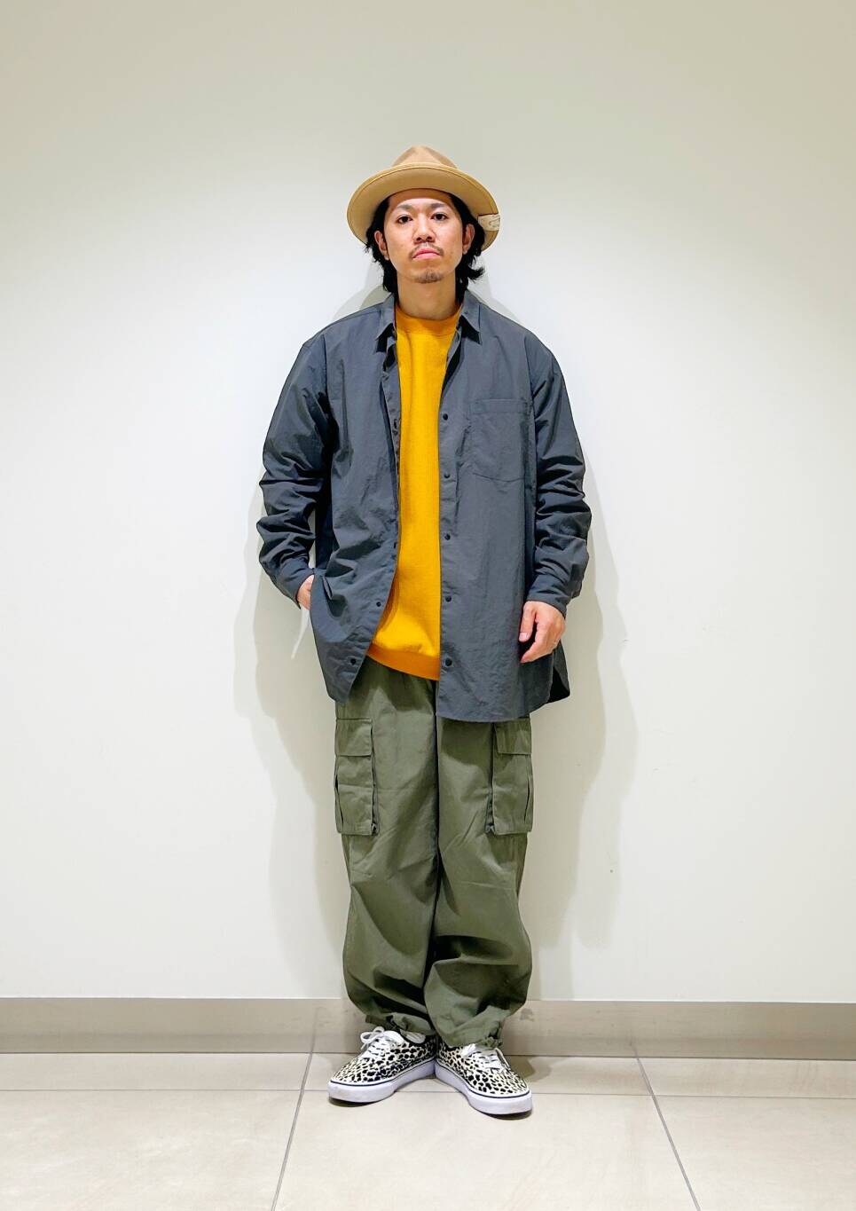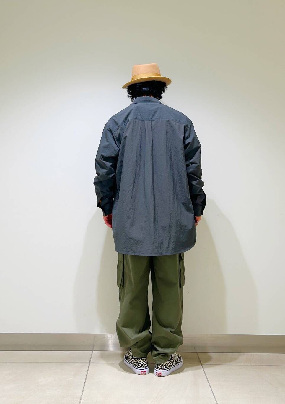 今回はナイロンタッサーシャツとカーゴパンツを使用したコーディネート。 好評のナイロンタッサーLSシャツが予約販売開始!