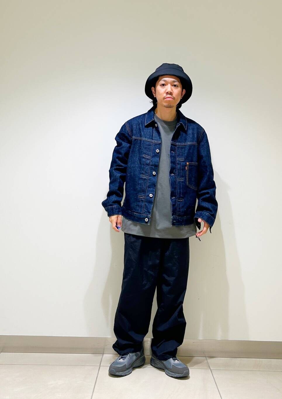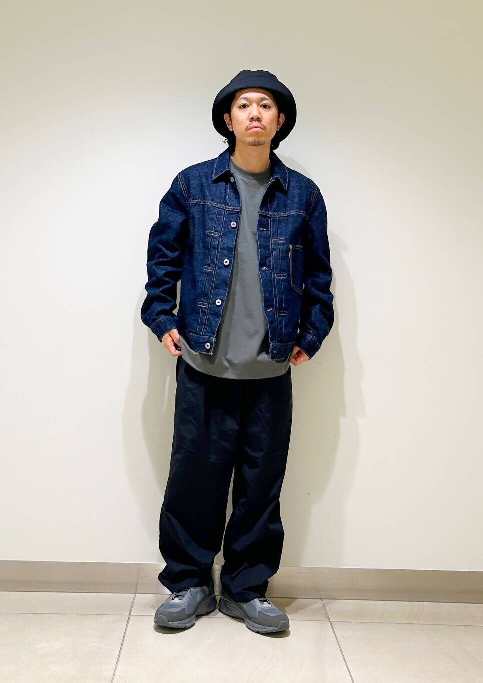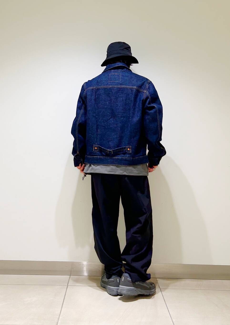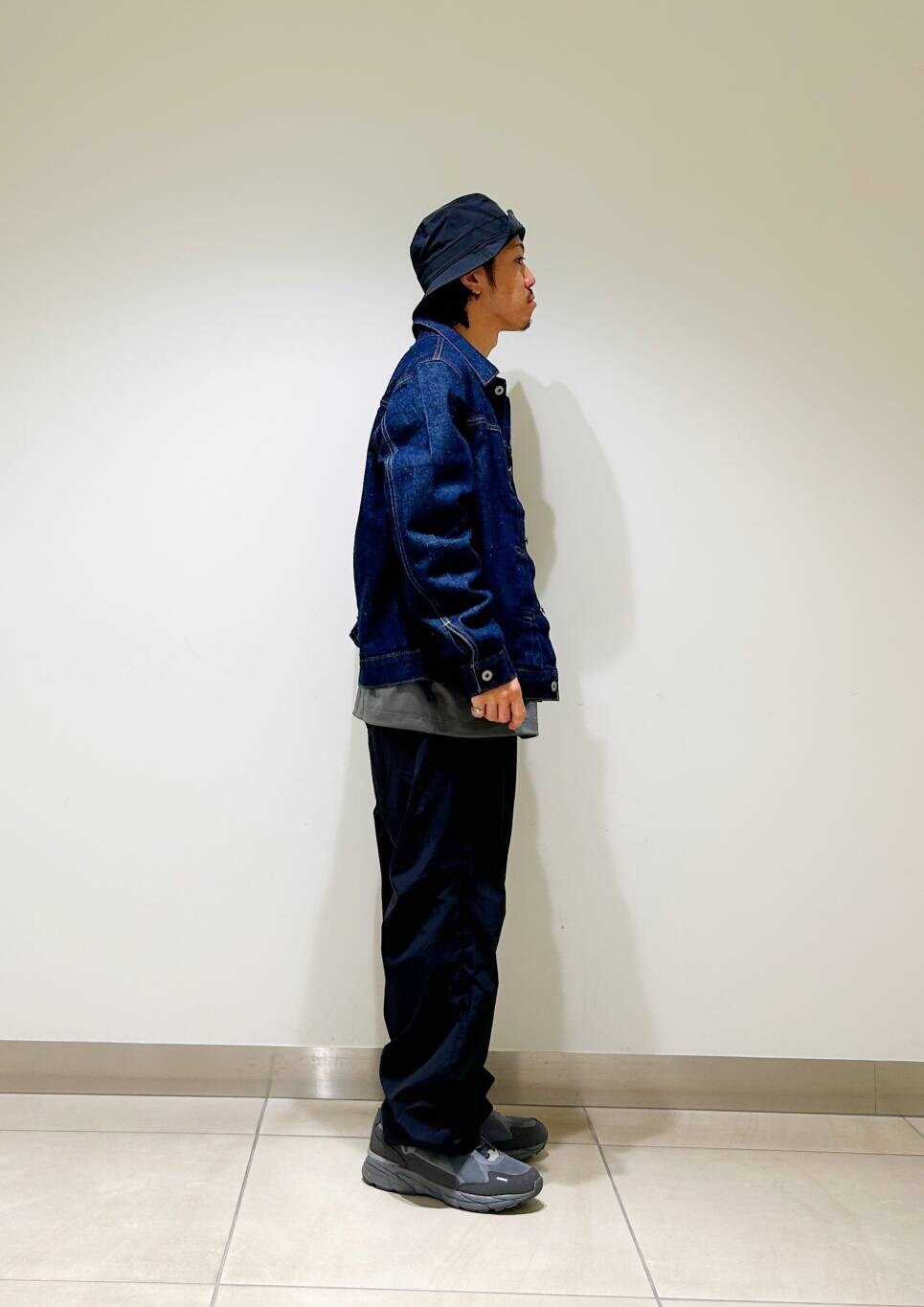 今回はリーバイスデニムジャケットとurdナイロンイージーパンツを使用したコーディネート。