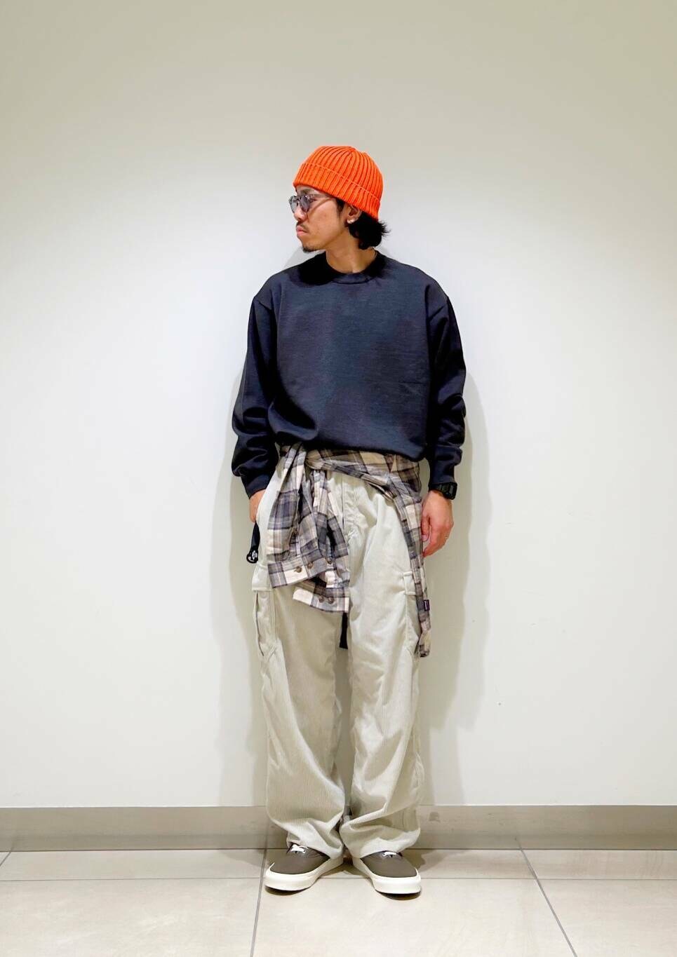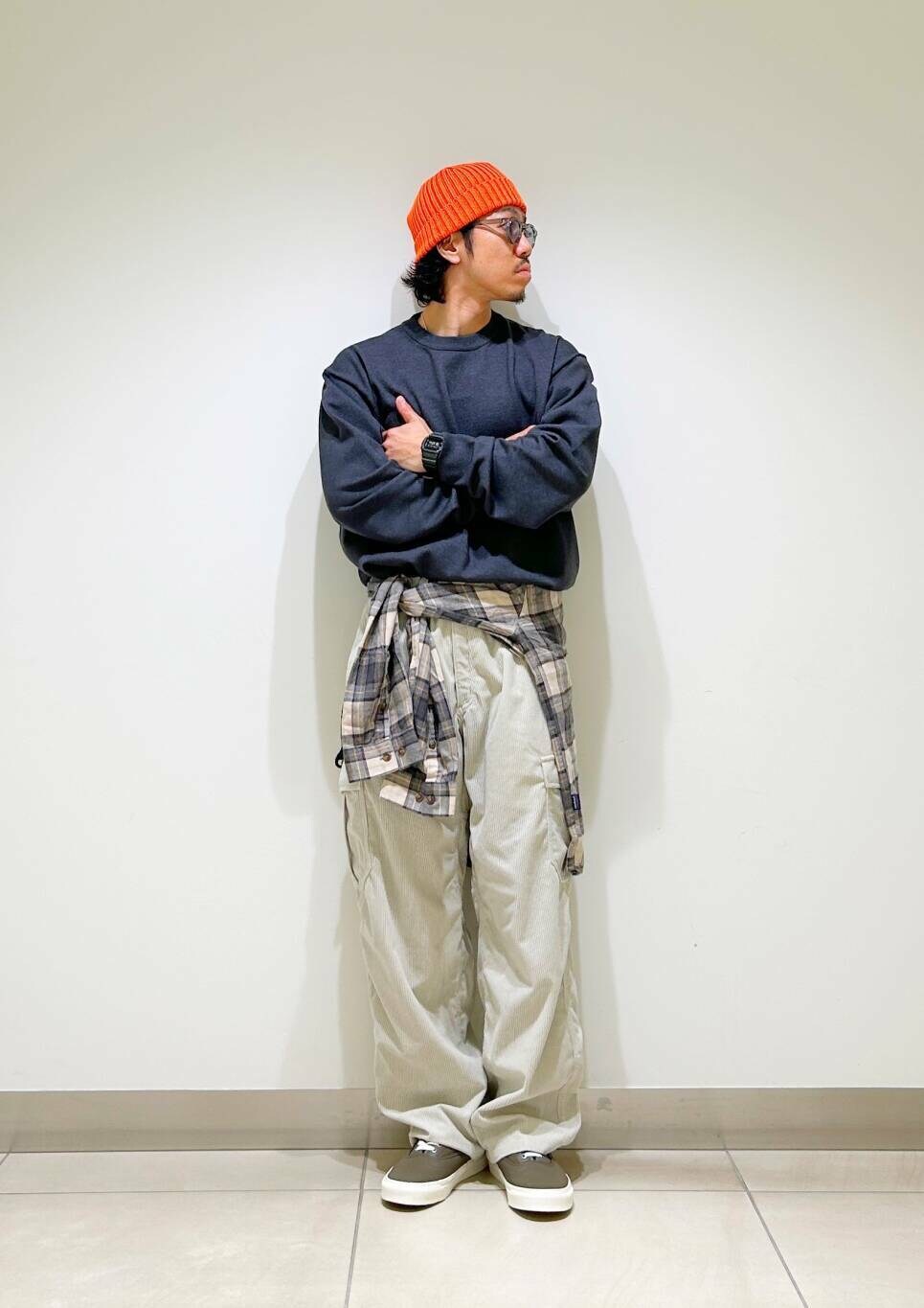 今回は200日ニットとストーンマスター別注カーゴコーデュロイパンツを使用したコーディネート。