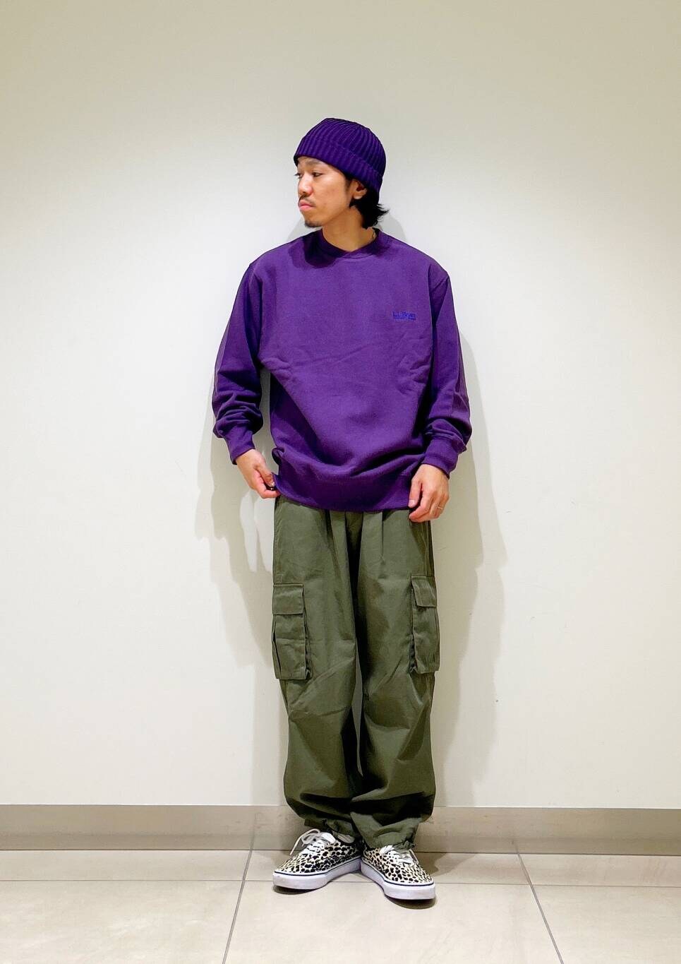 今回はエルエルビーン スウェットとカーゴパンツを使用したコーディネート。