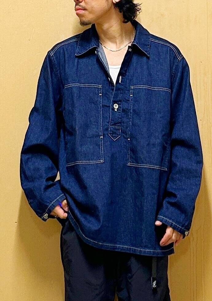 ライトオンスのデニム素材を使用したシャツ型のプルオーバージャケットです。