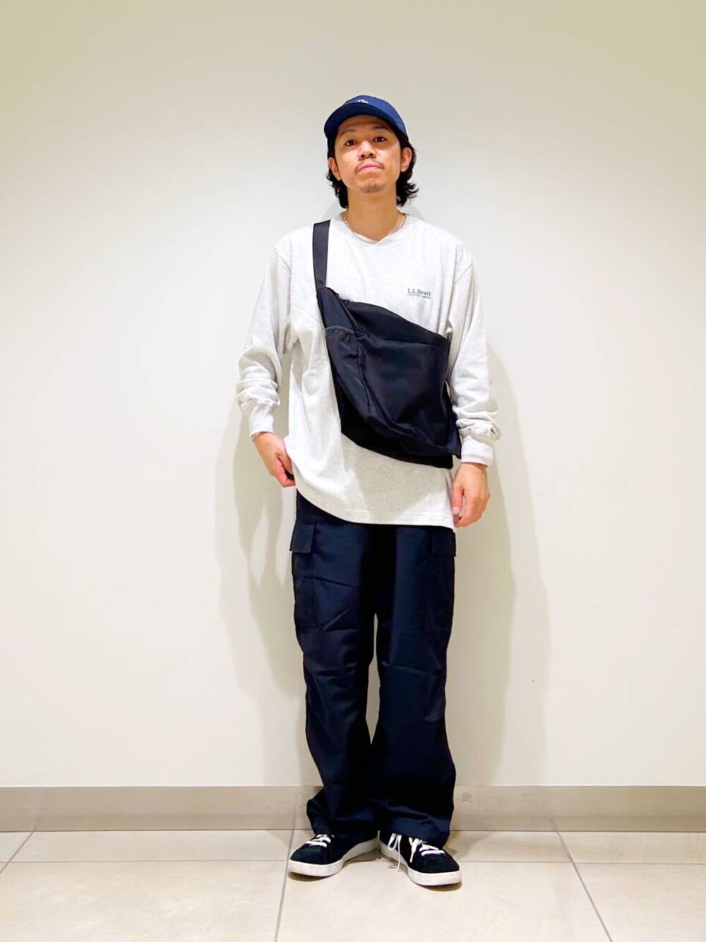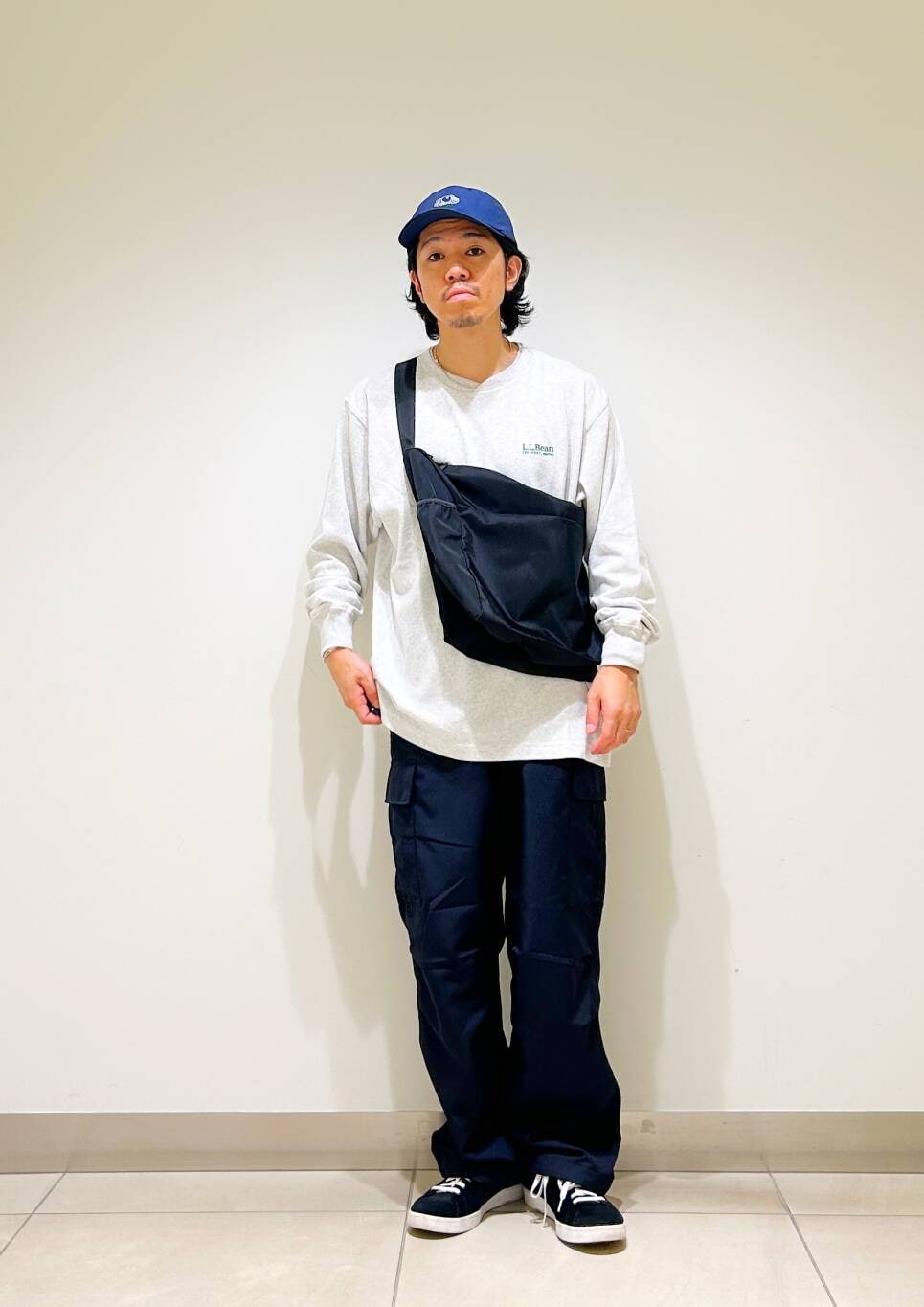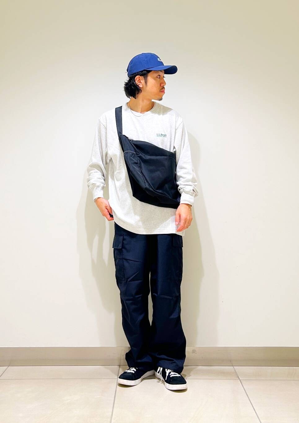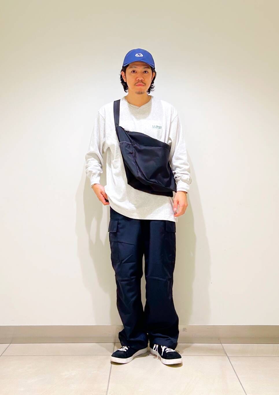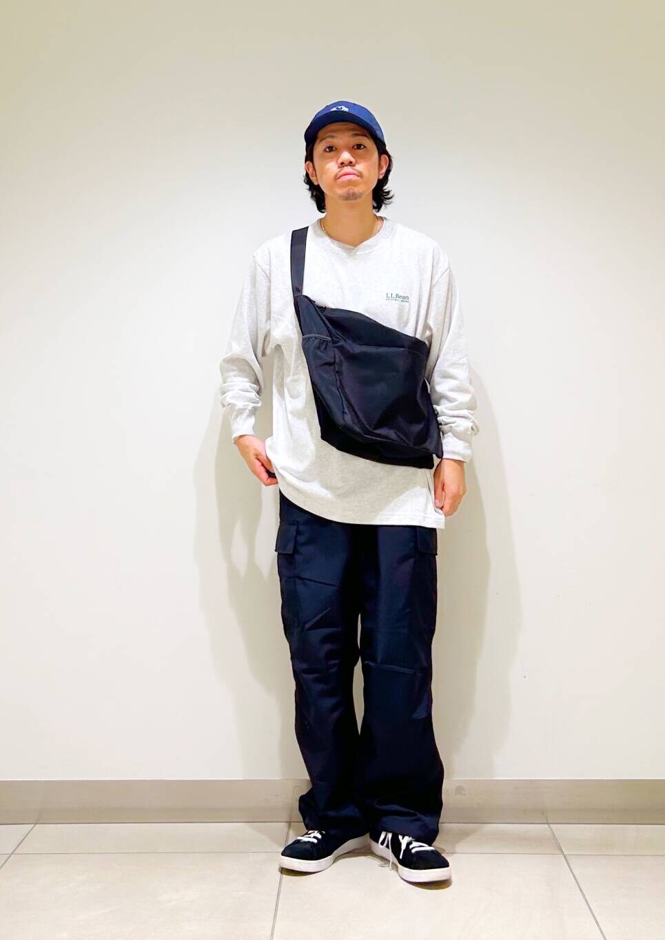 今回はl.l.beanロンTとカーゴパンツを使用したコーディネート。