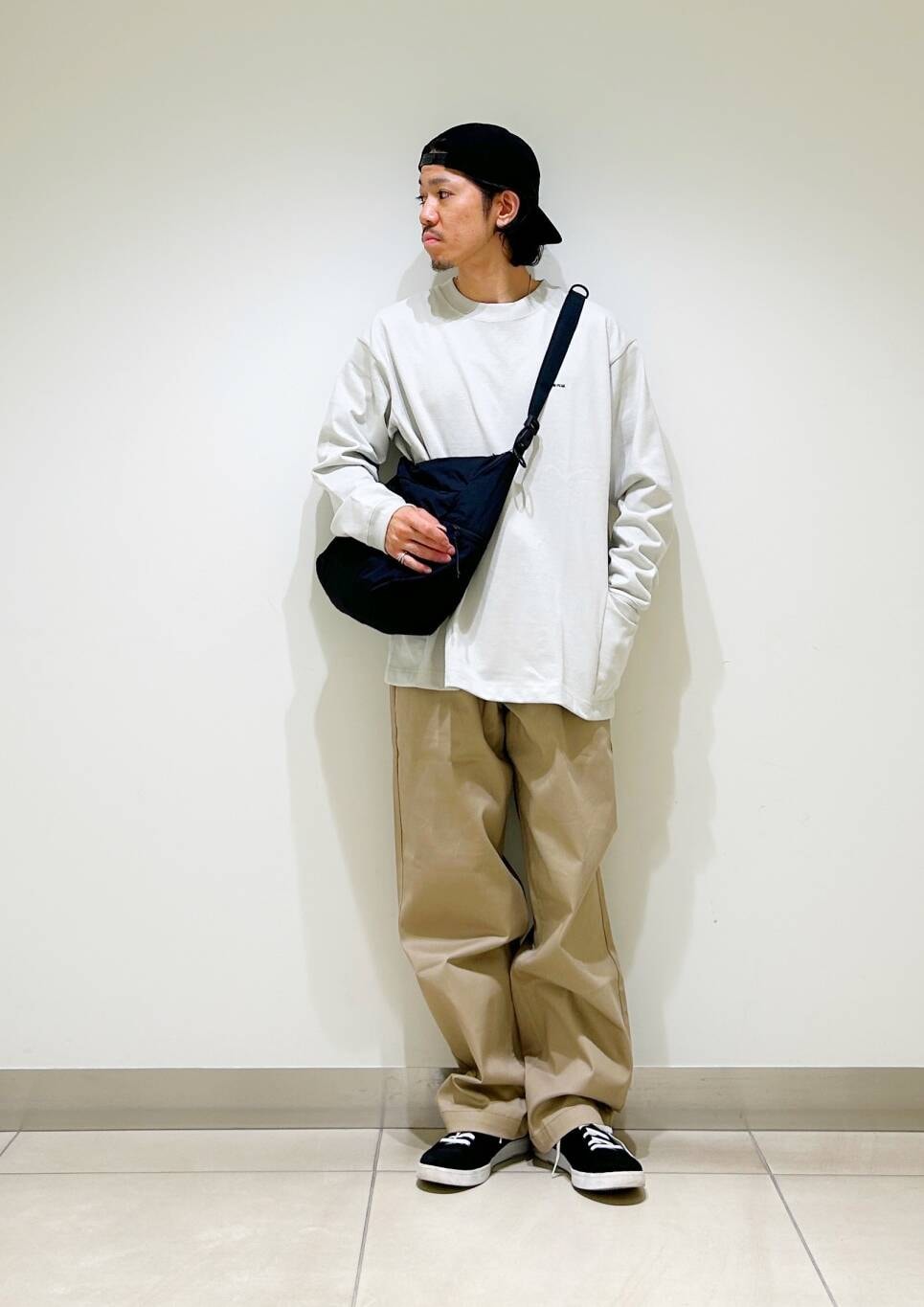 今回はスノーピーク ロンTとm-52トラウザーを使用したコーディネート。 フレンチミリタリーの”M52"のチノパンツをベースにしたパンツ。