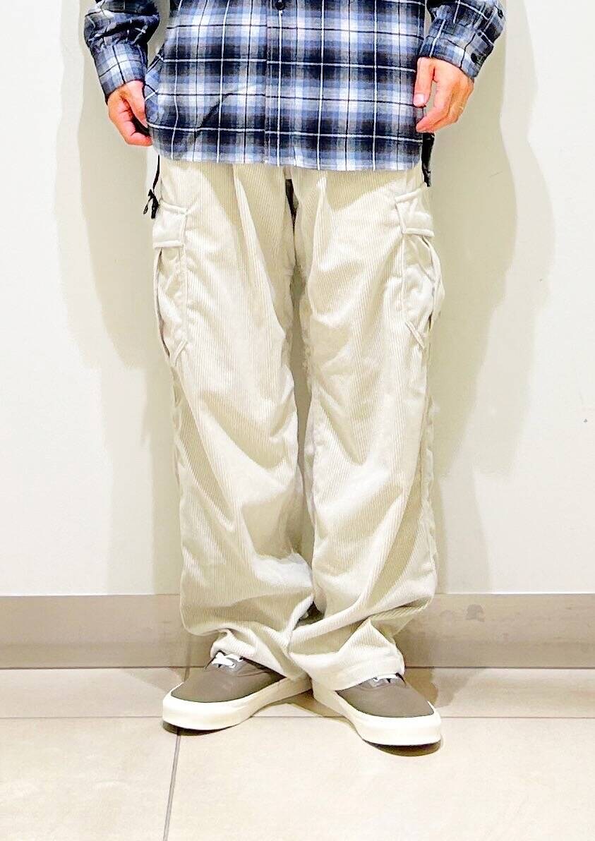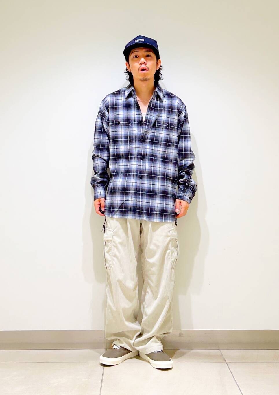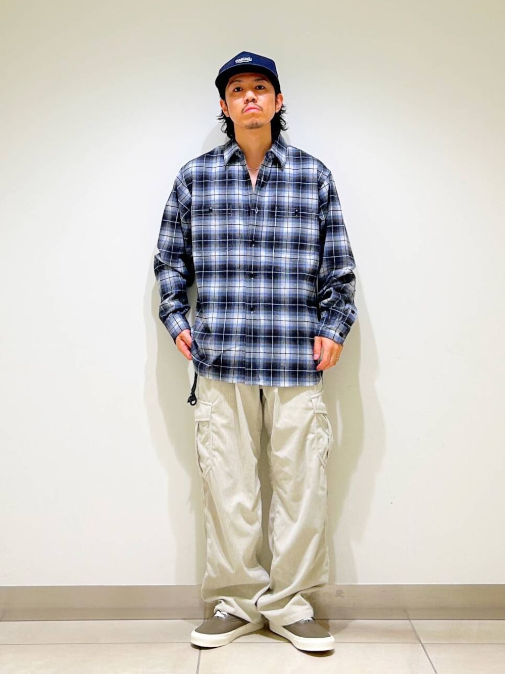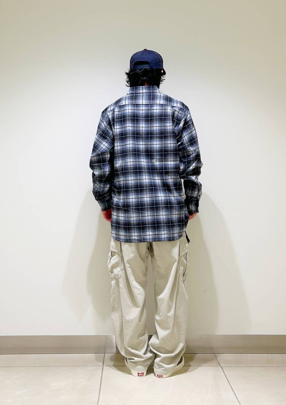 今回はペンドルトン別注チェックシャツとストーンマスター別注コーデュロイカーゴパンツを使用したコーディネート。