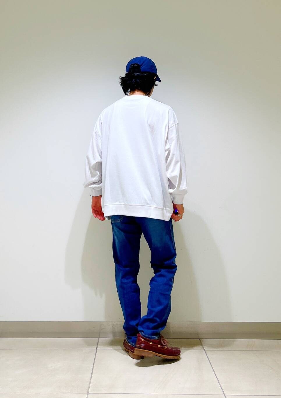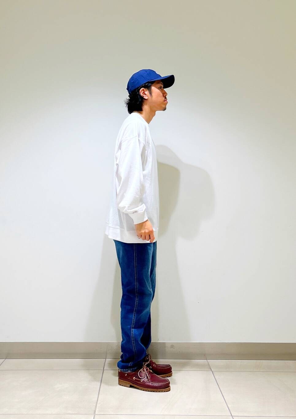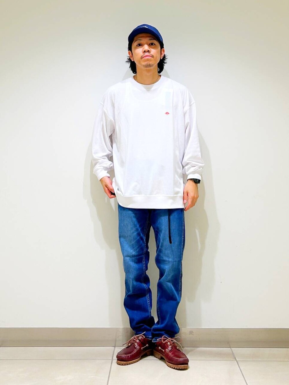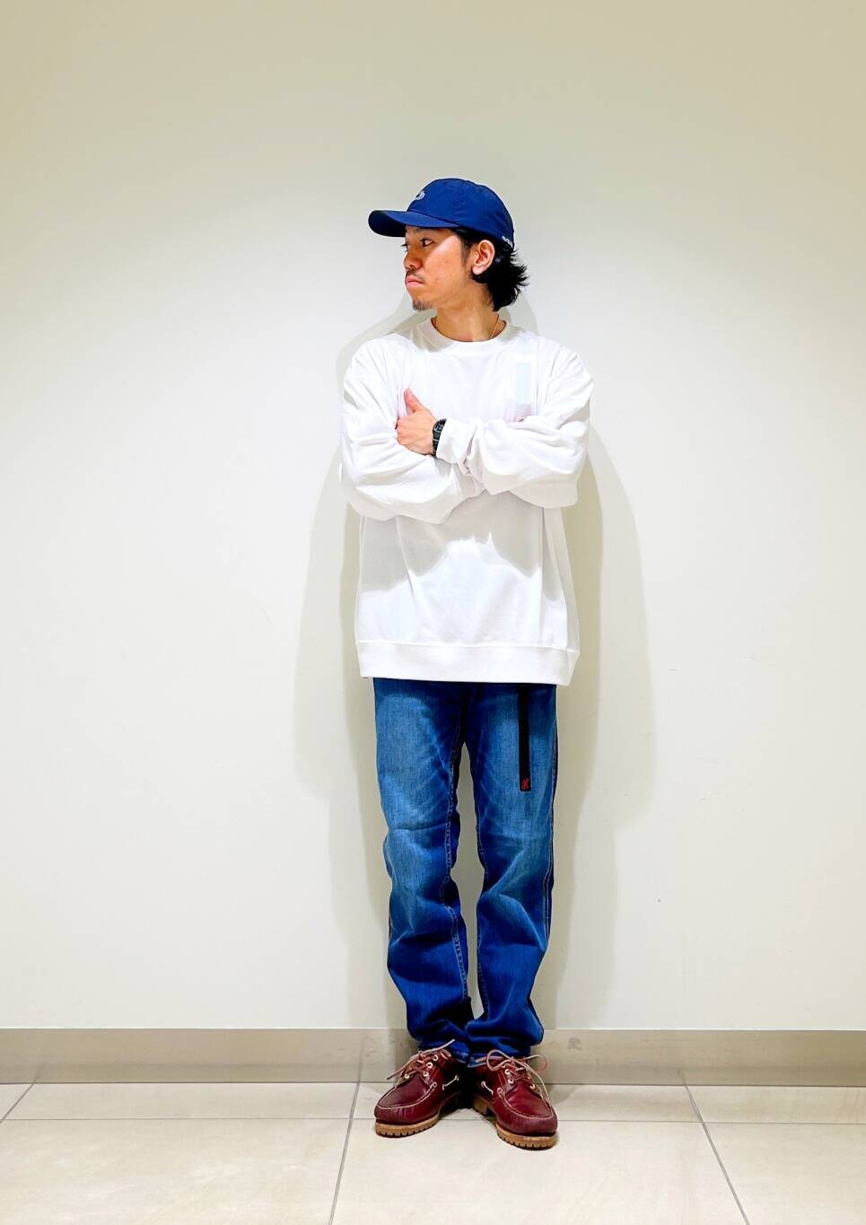 今回はDANTONスウェットロンTとグラミチ別注デニムパンツを使用したコーディネート。