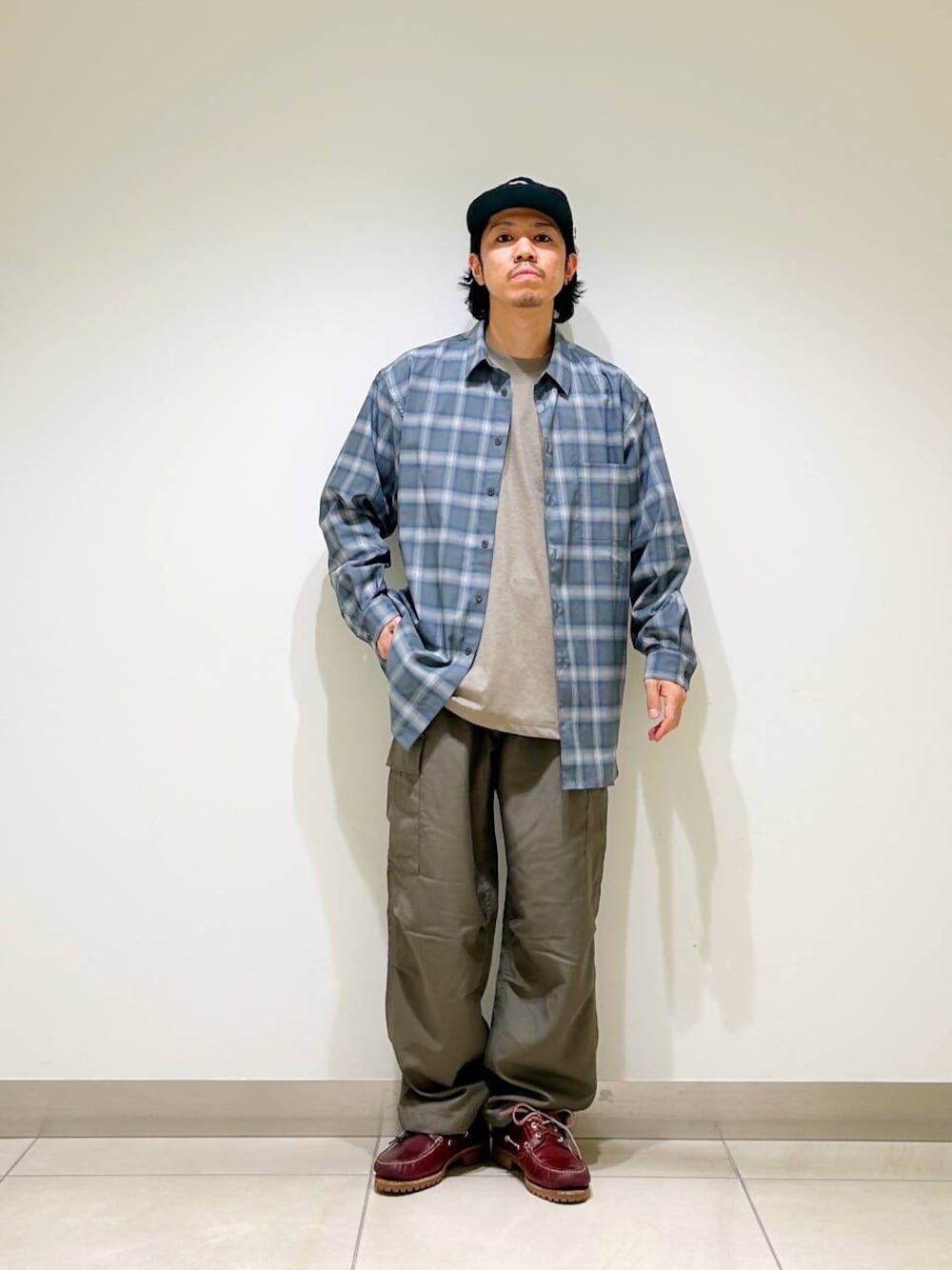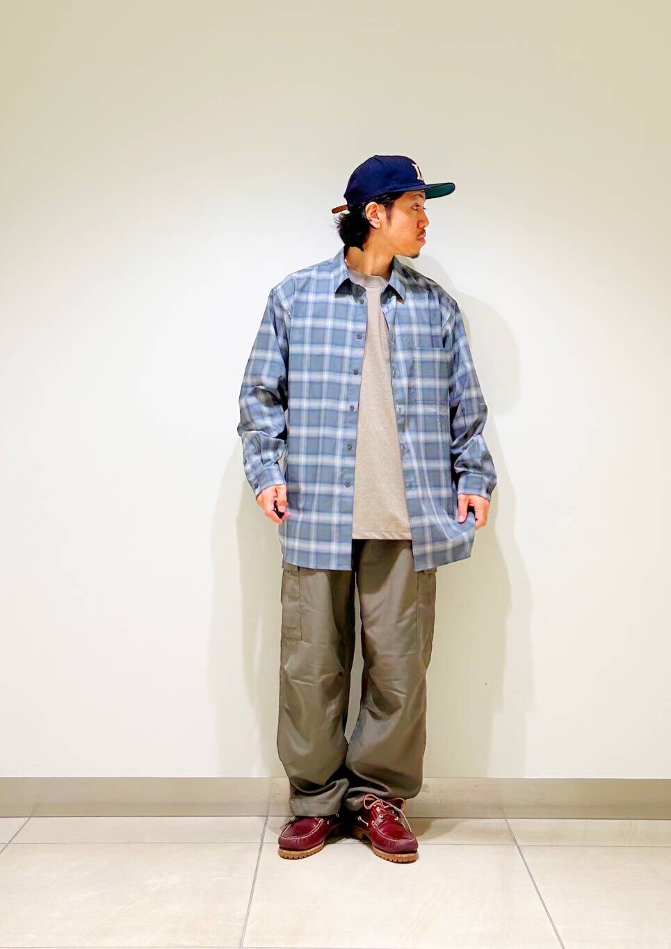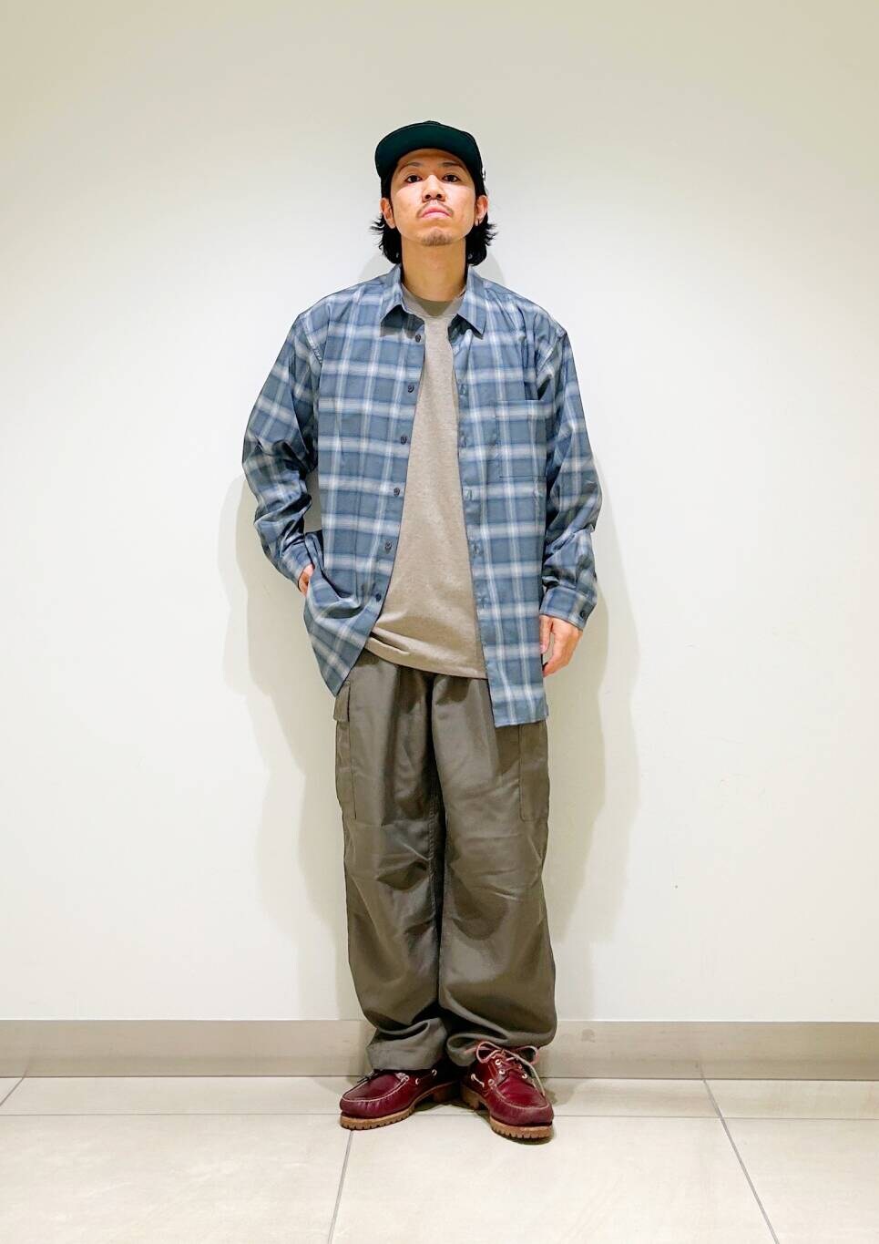 今回はオンブレチェックシャツとwaq別注カーゴパンツを使用したコーディネート。