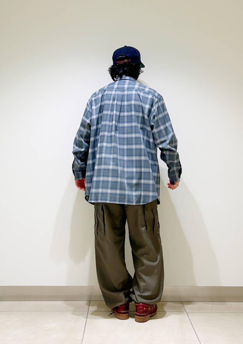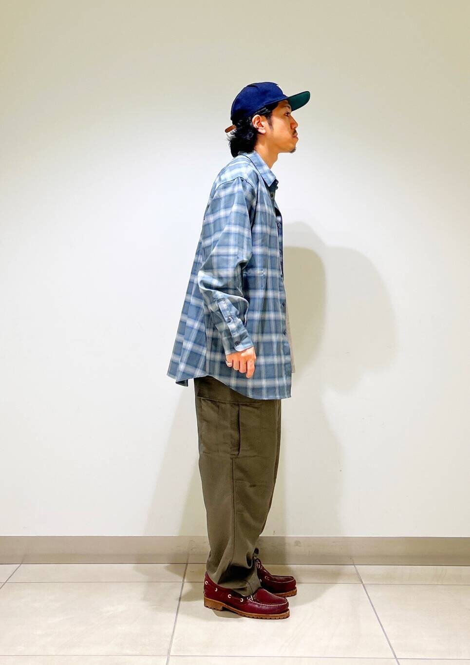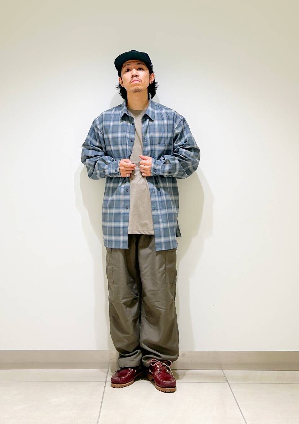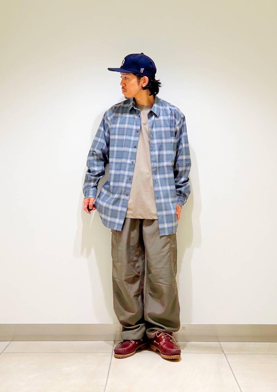 今回はオンブレチェックシャツとwaq別注カーゴパンツを使用したコーディネート。