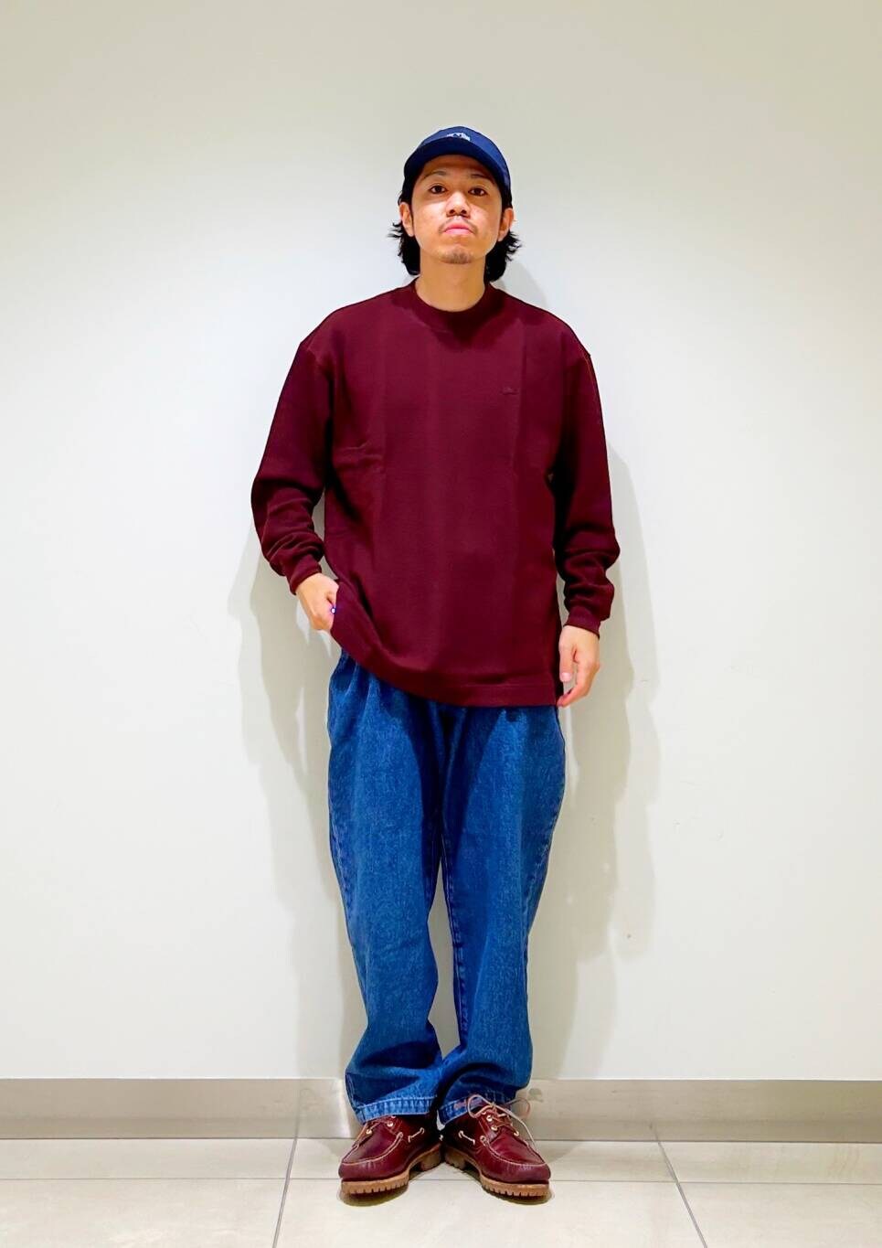 今回はlacoste別注ロンTとデニムパンツを使用したコーディネート。 昨年好評だったDOORSでも人気のブランド"LACOSTE(ラコステ)"に型から別注したロングスリーブTシャツが秋らしいカラーをまとって今年も登場。