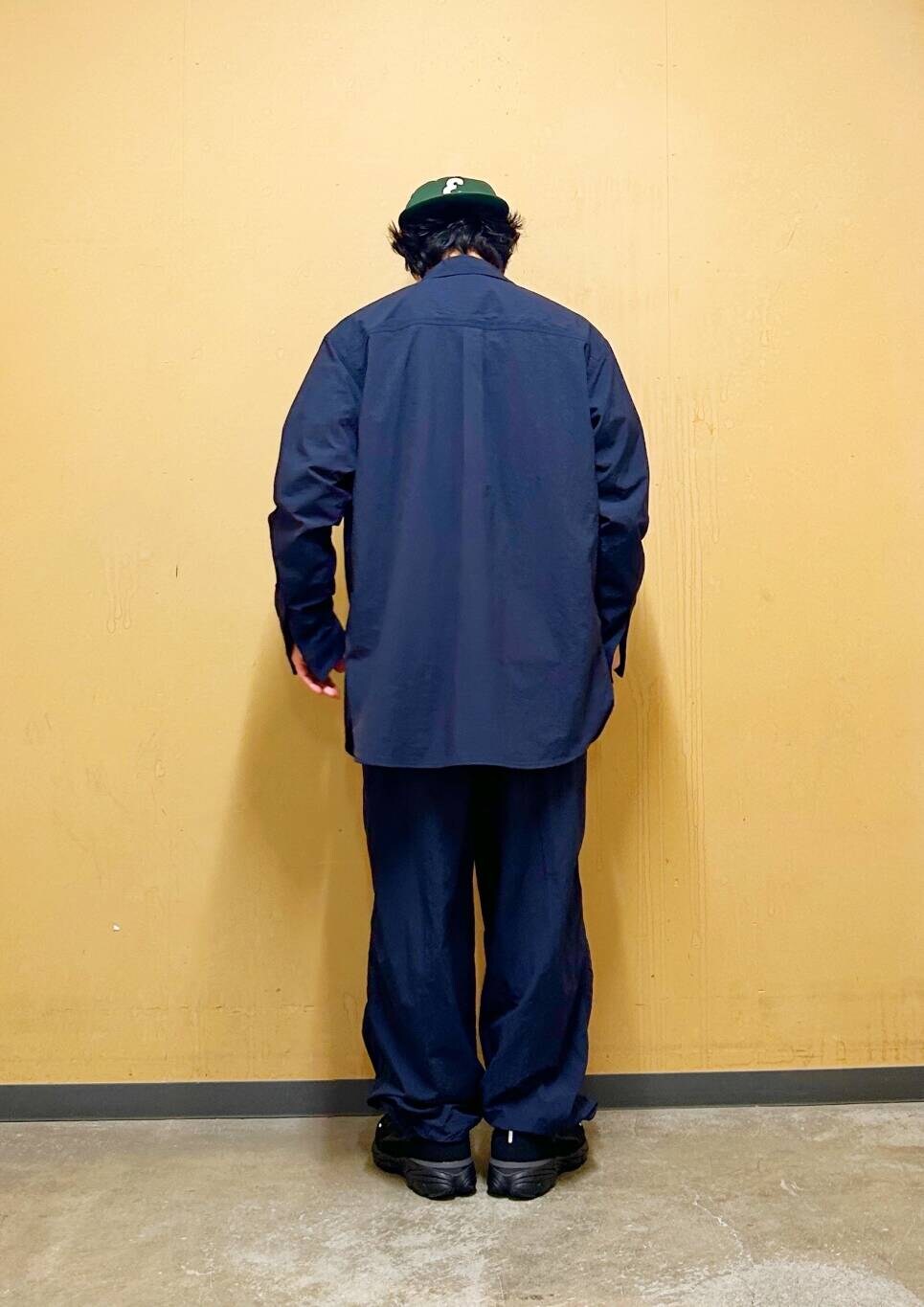 セットアップで着用可能な機能性ナイロンシャツ。
