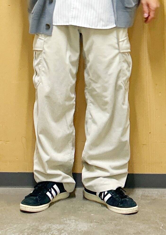 年中履けるさらっとした質感で通気性にも優れたコーデュロイ記事を使用したカーゴパンツ。