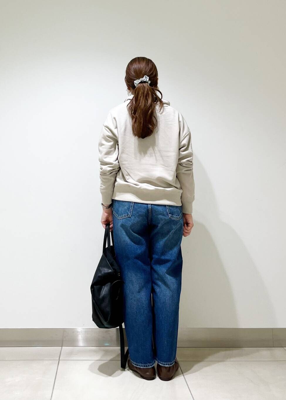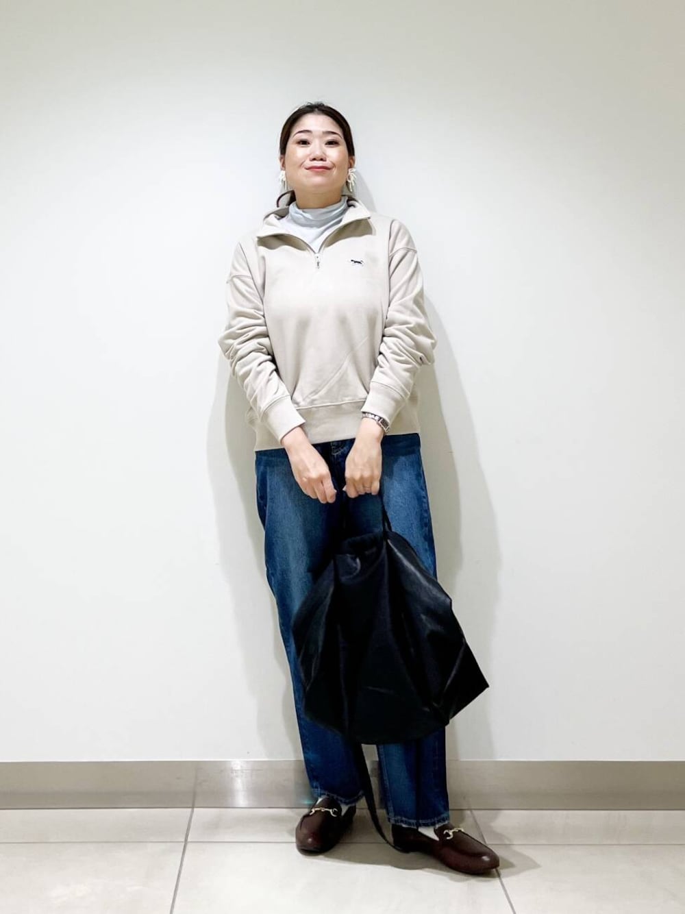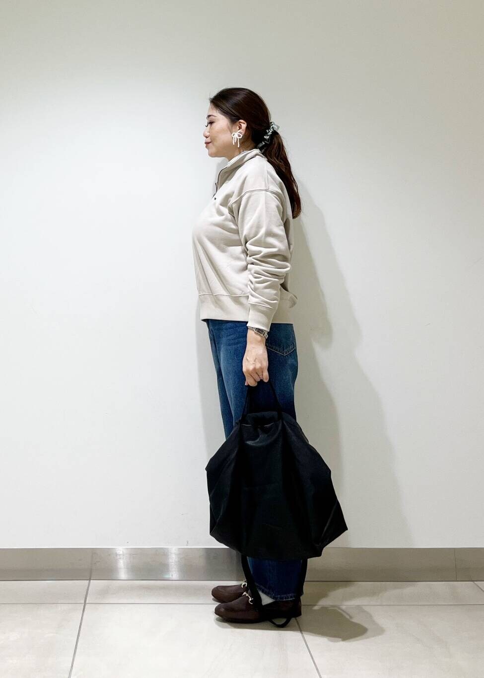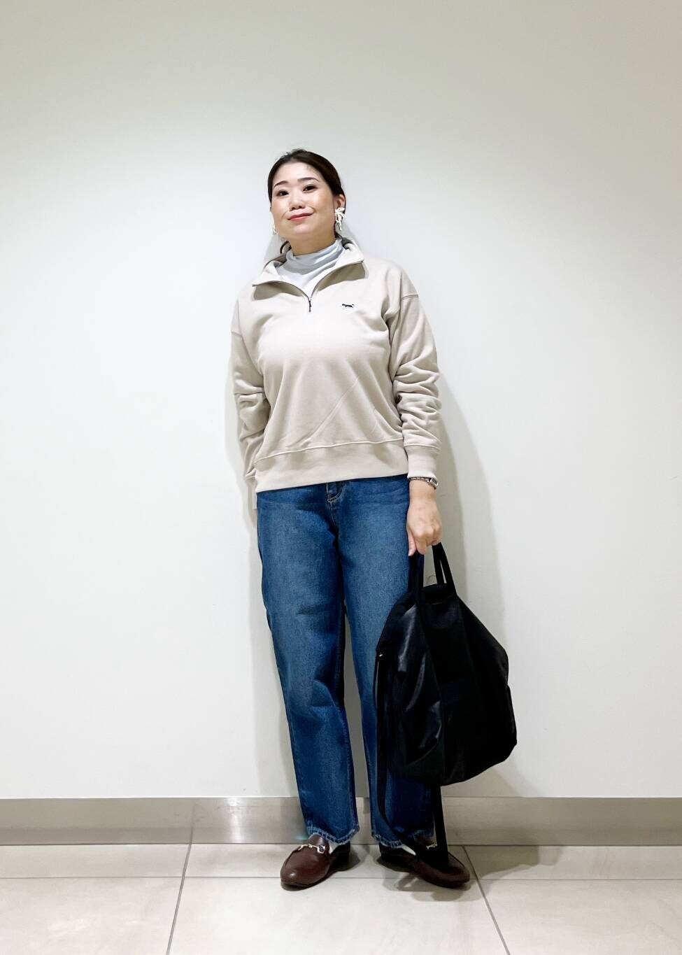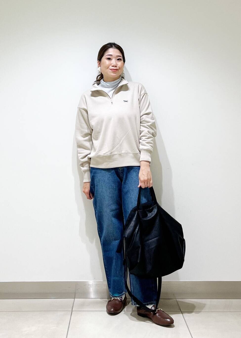 ハーフジップのスウェットは綺麗めカジュアルなスタイリングにピッタリの一枚です!