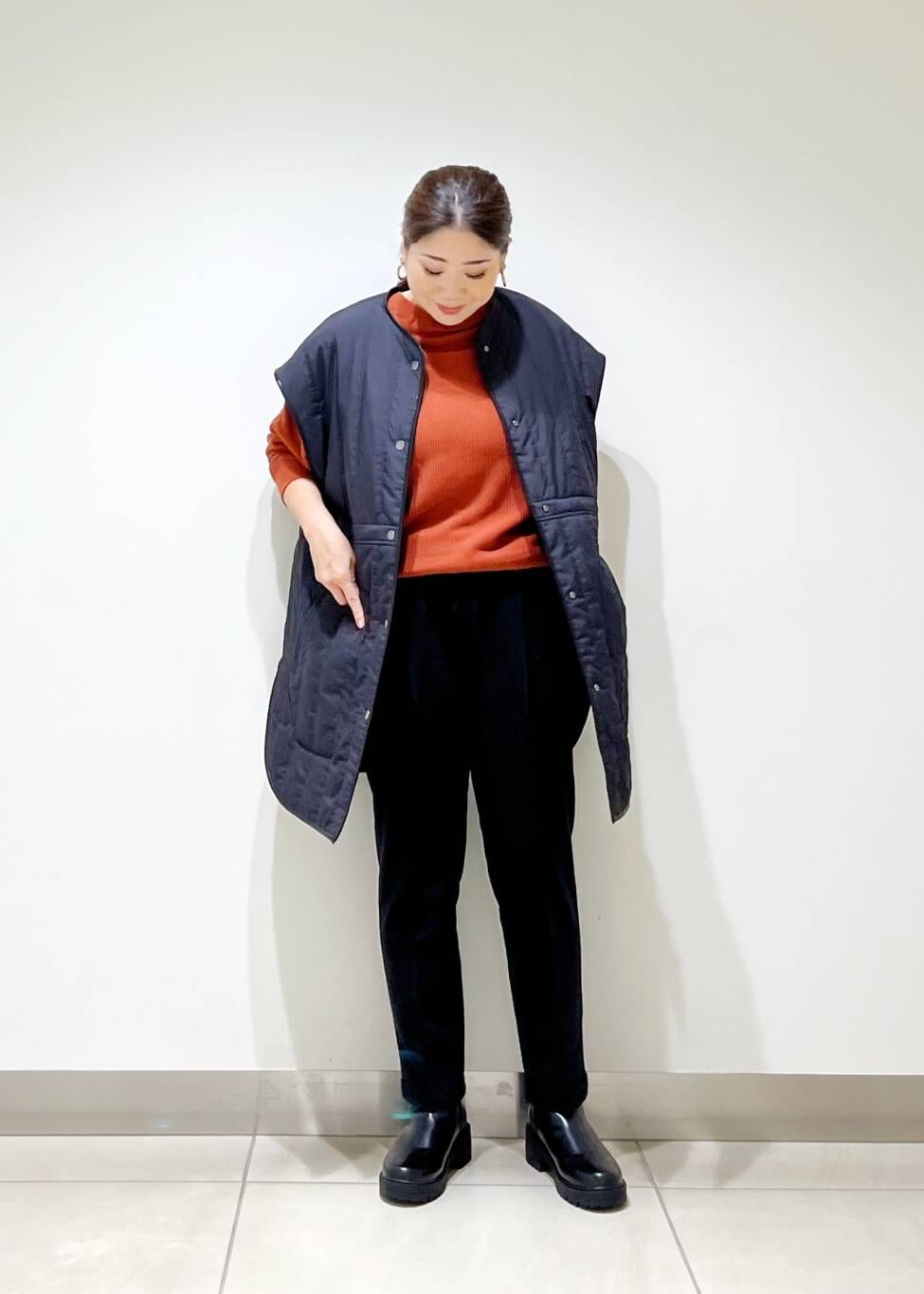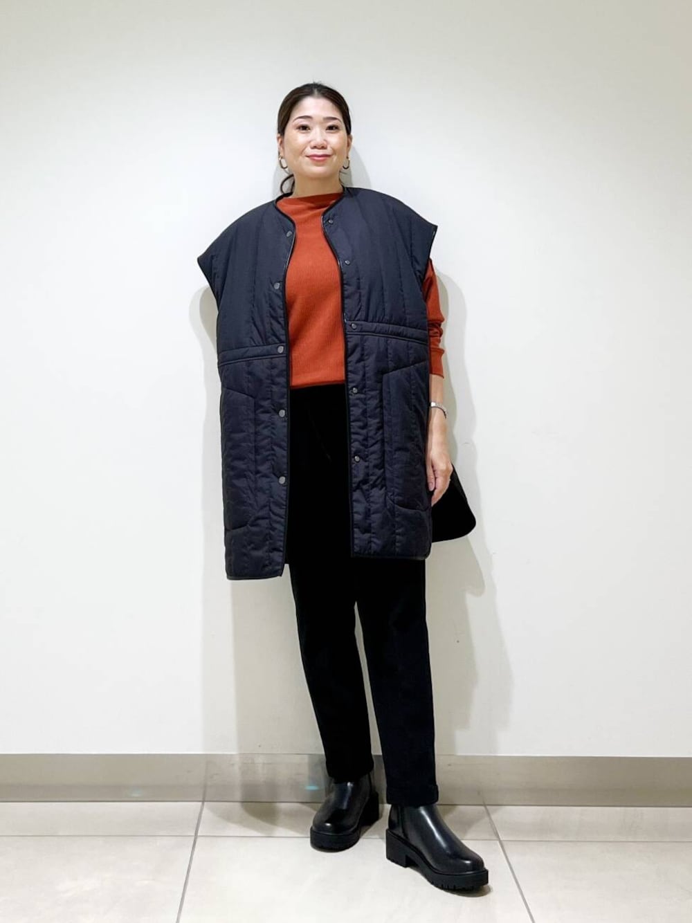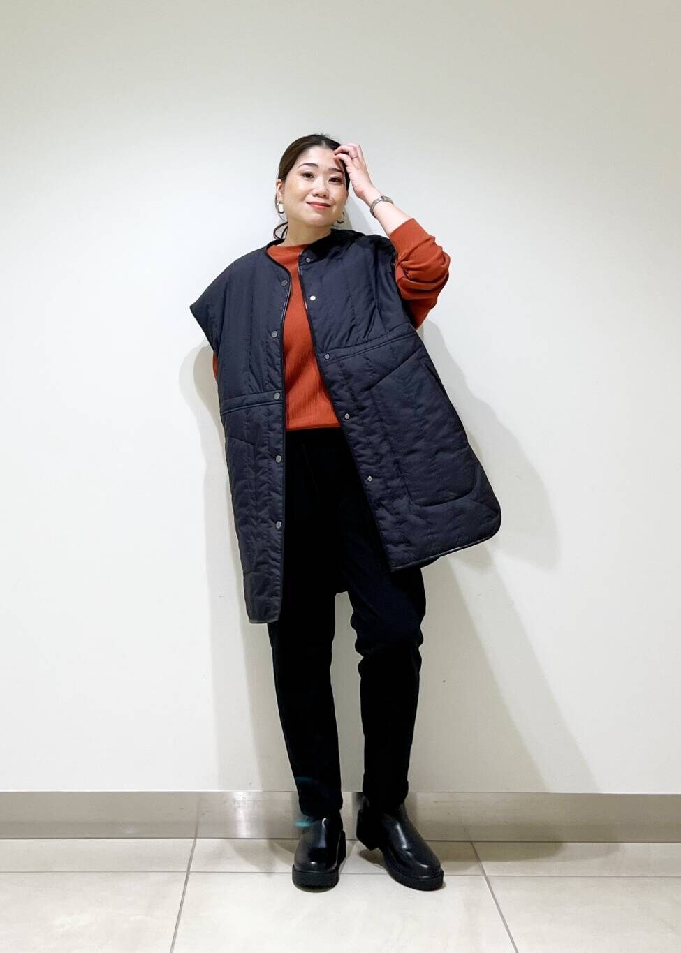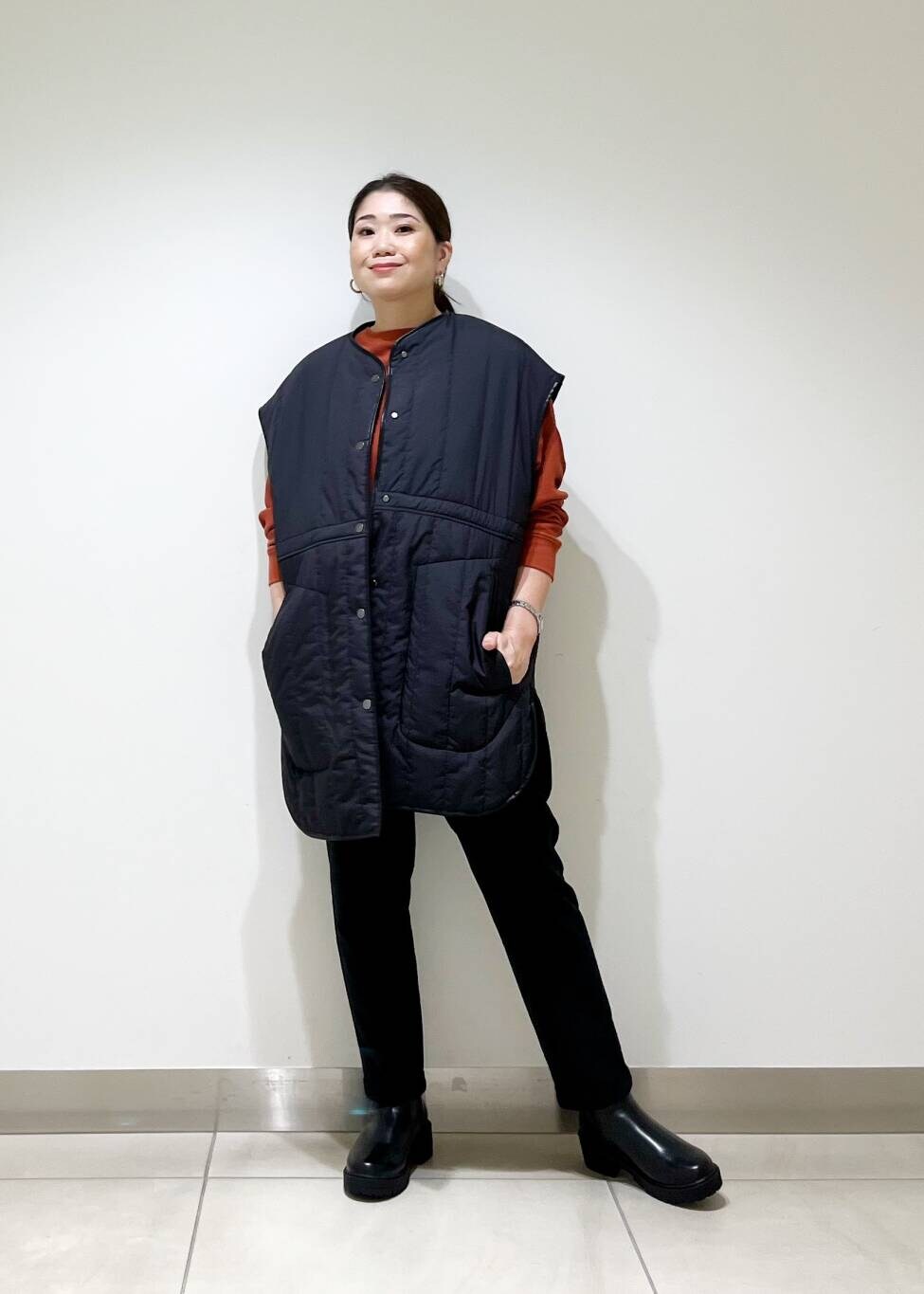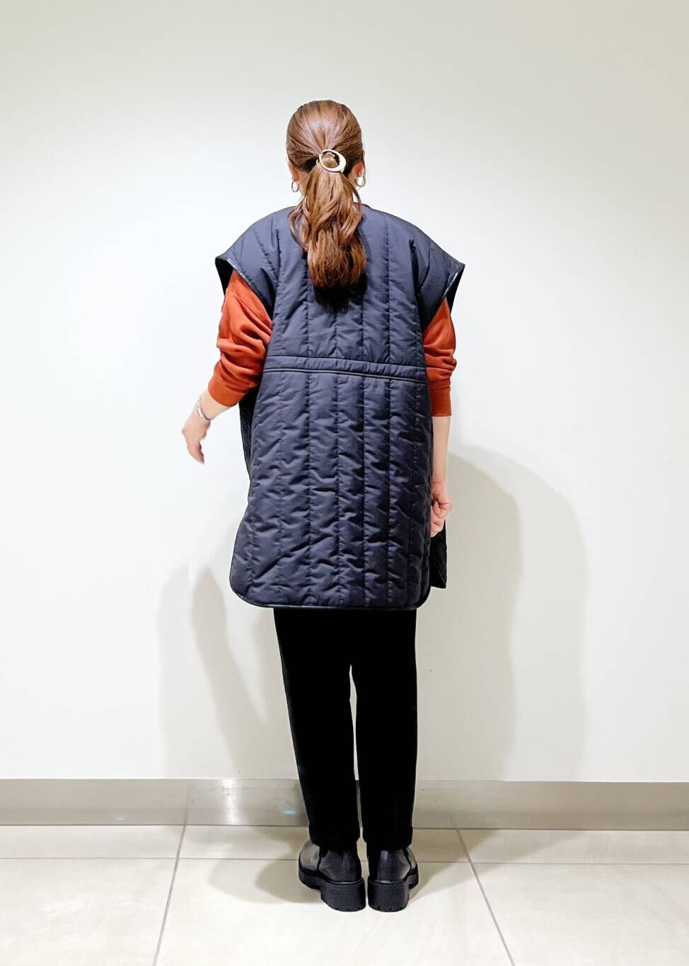 URのキルティングジレは程よいオーバー感が可愛いですね!秋先取りコーデです☆