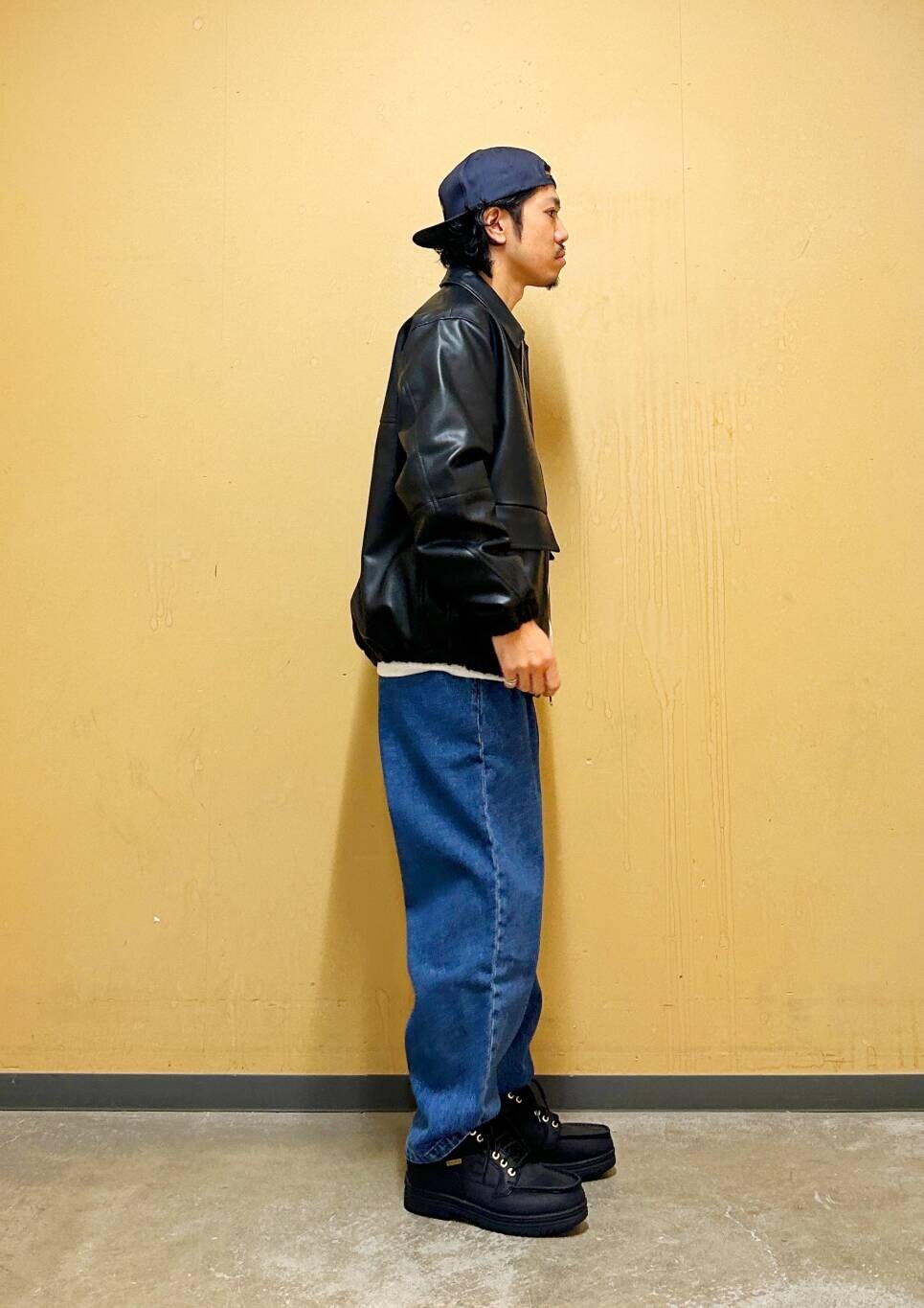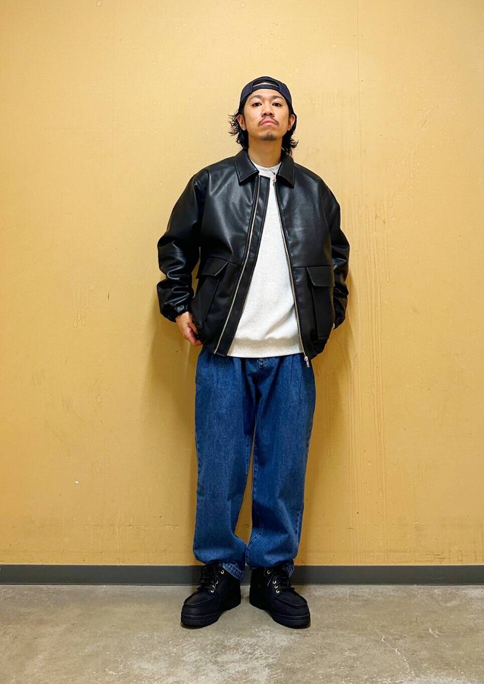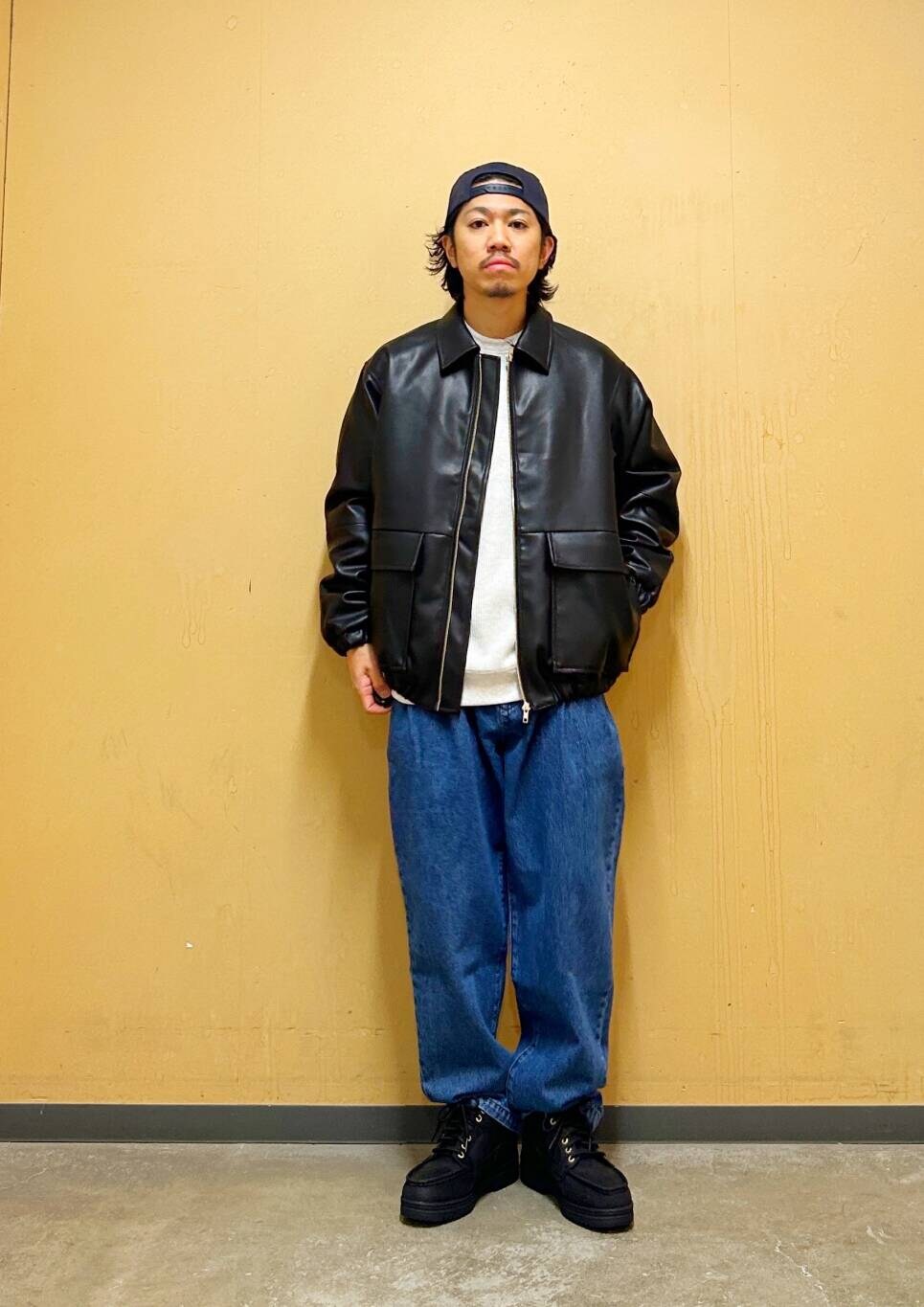 今回はフライトジャケットとデニムトラウザーを使用したコーディネート。